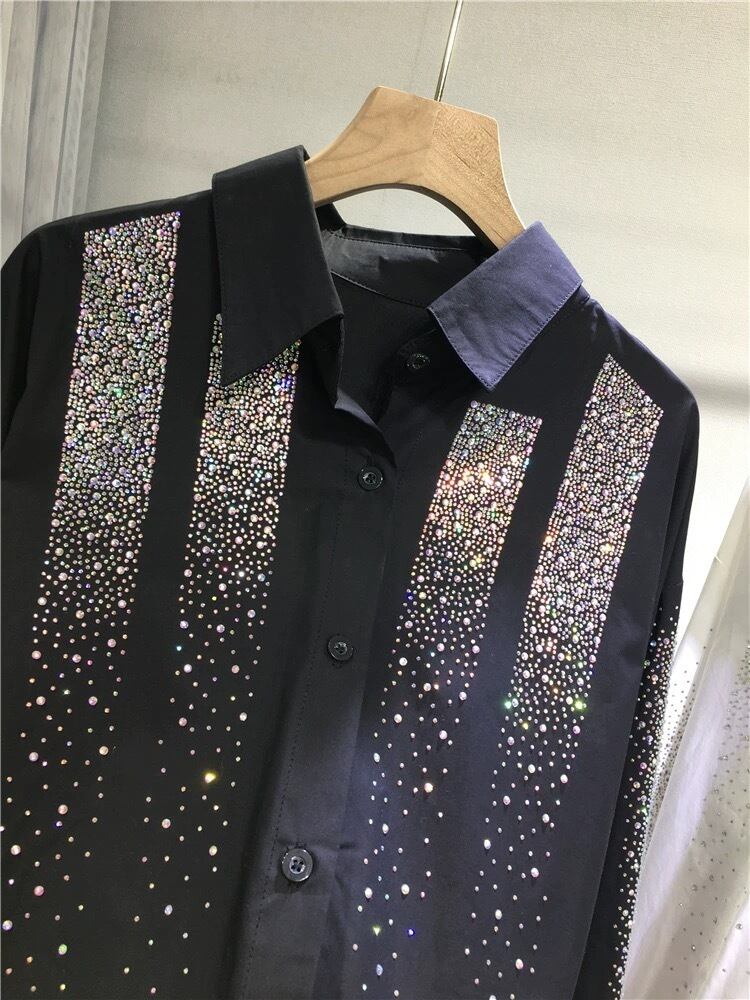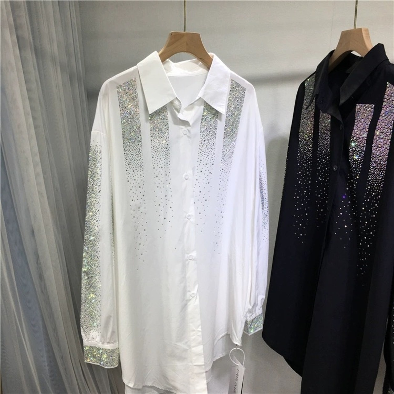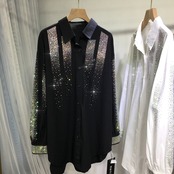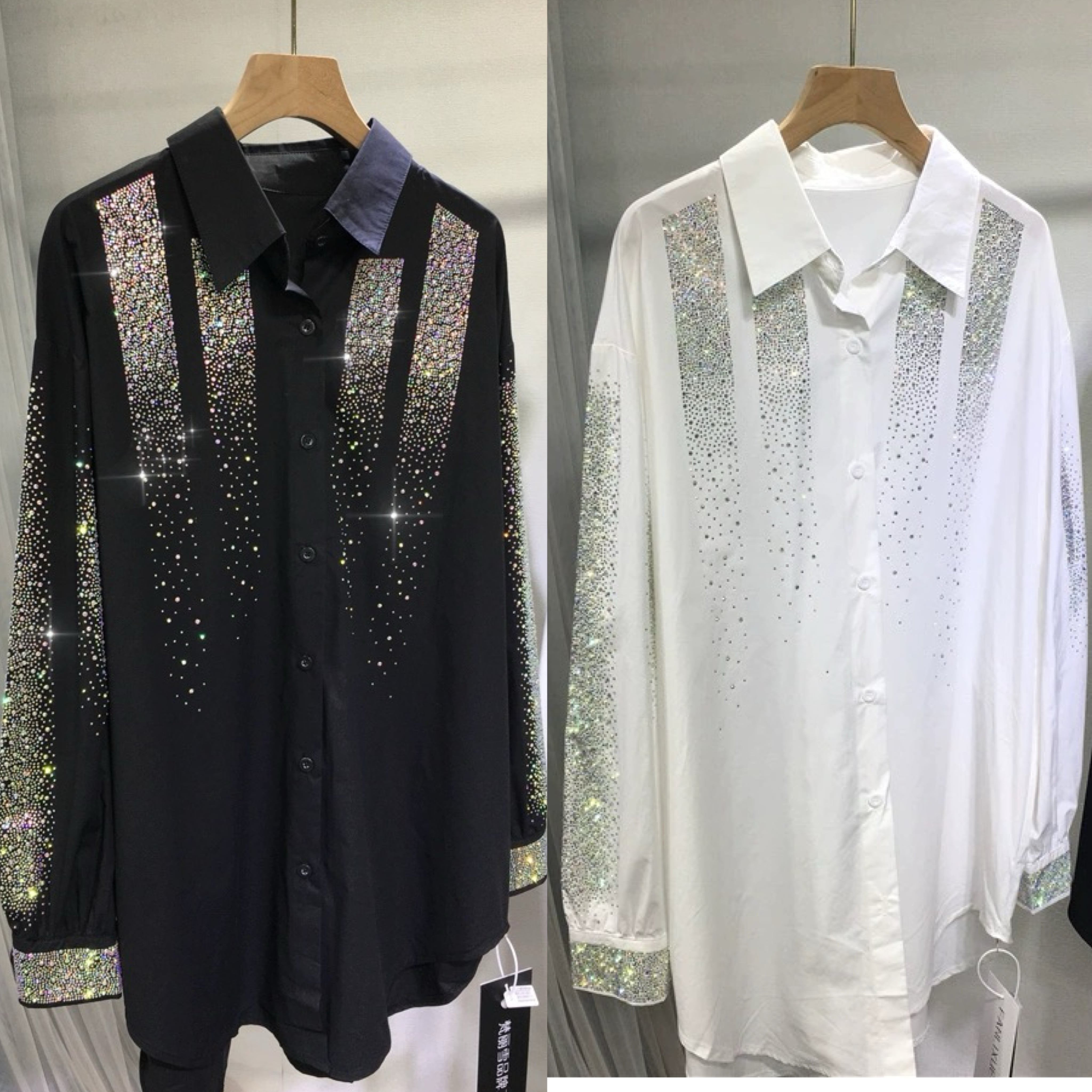 キラキラ ラインストーン デコレーション カジュアル ゴージャス トップス ストリート 原宿 渋谷 アウター カーディガン シャツ ブラウス 黒 白