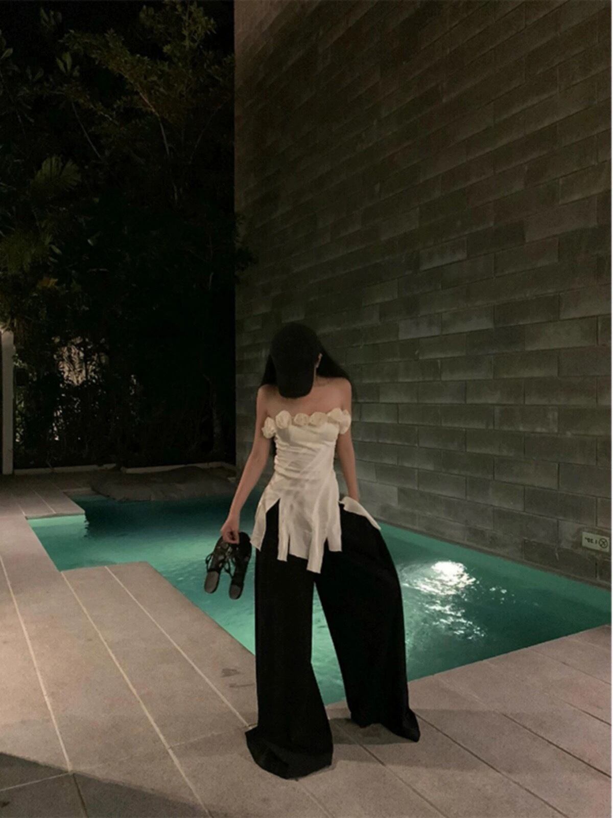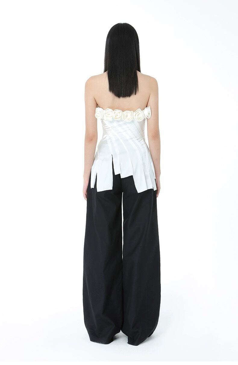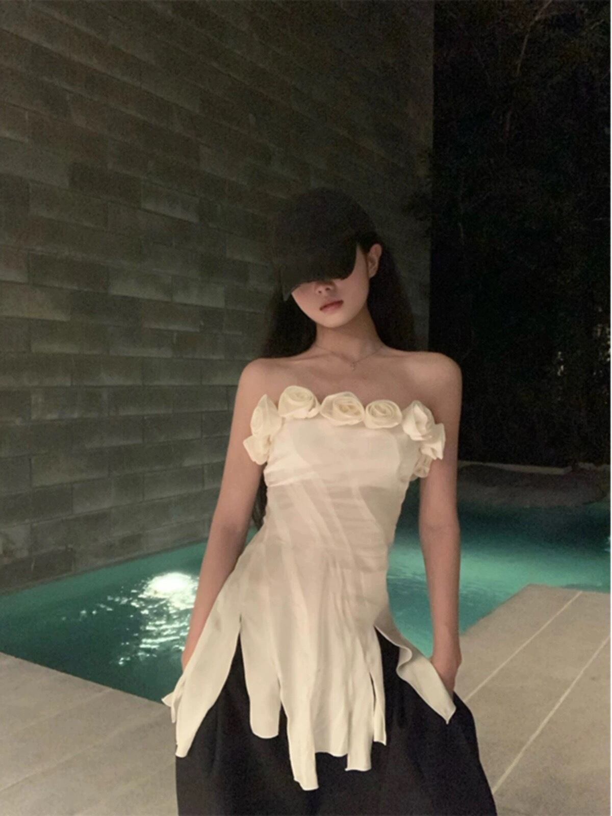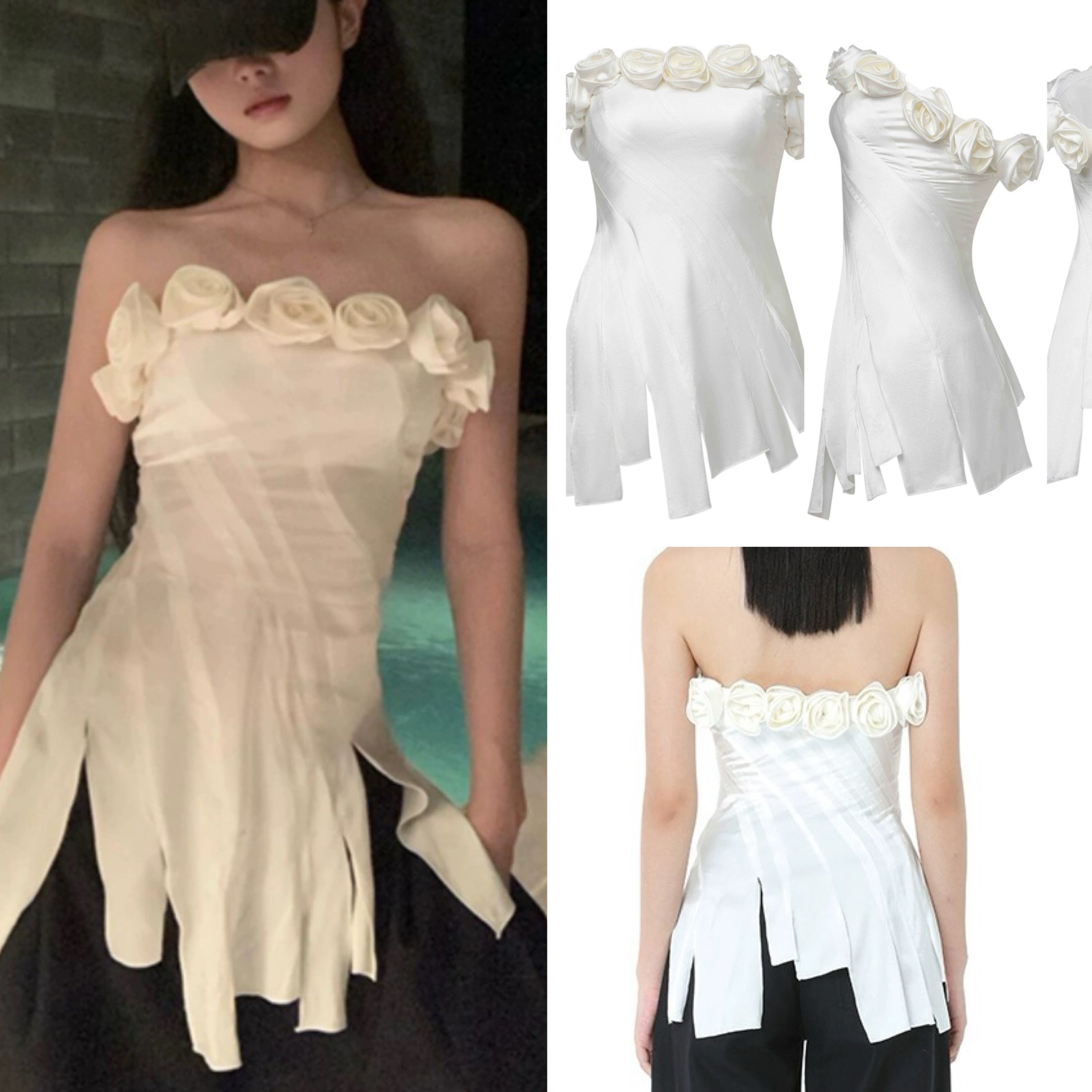 カメリア 薔薇 フラワー ベアトップス ブラウス ワンピース ホワイト