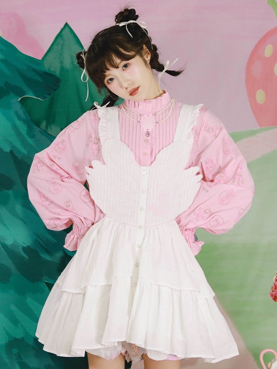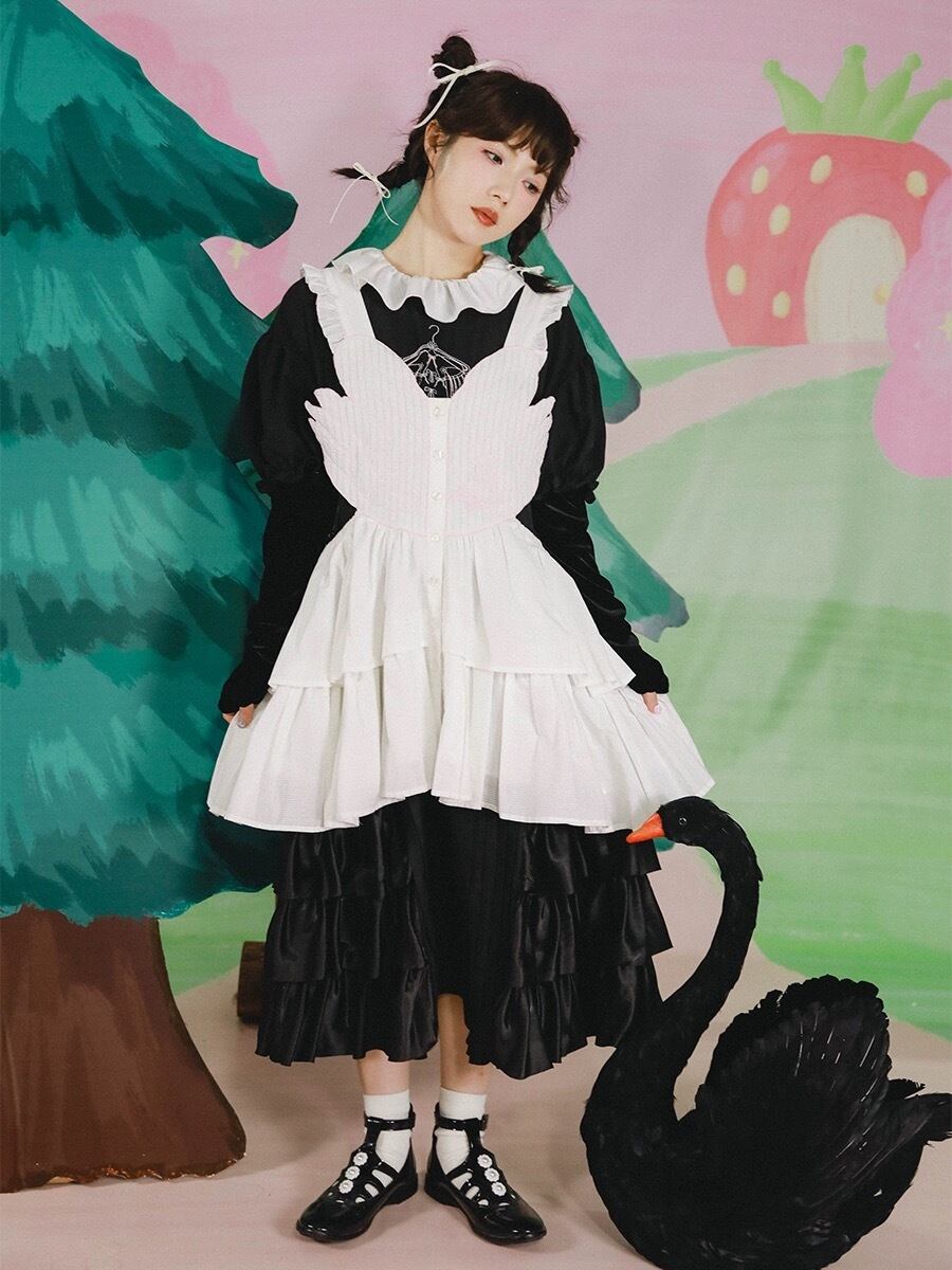 ブラウス リボン ガーリー ワンピース 白鳥 白 ホワイト