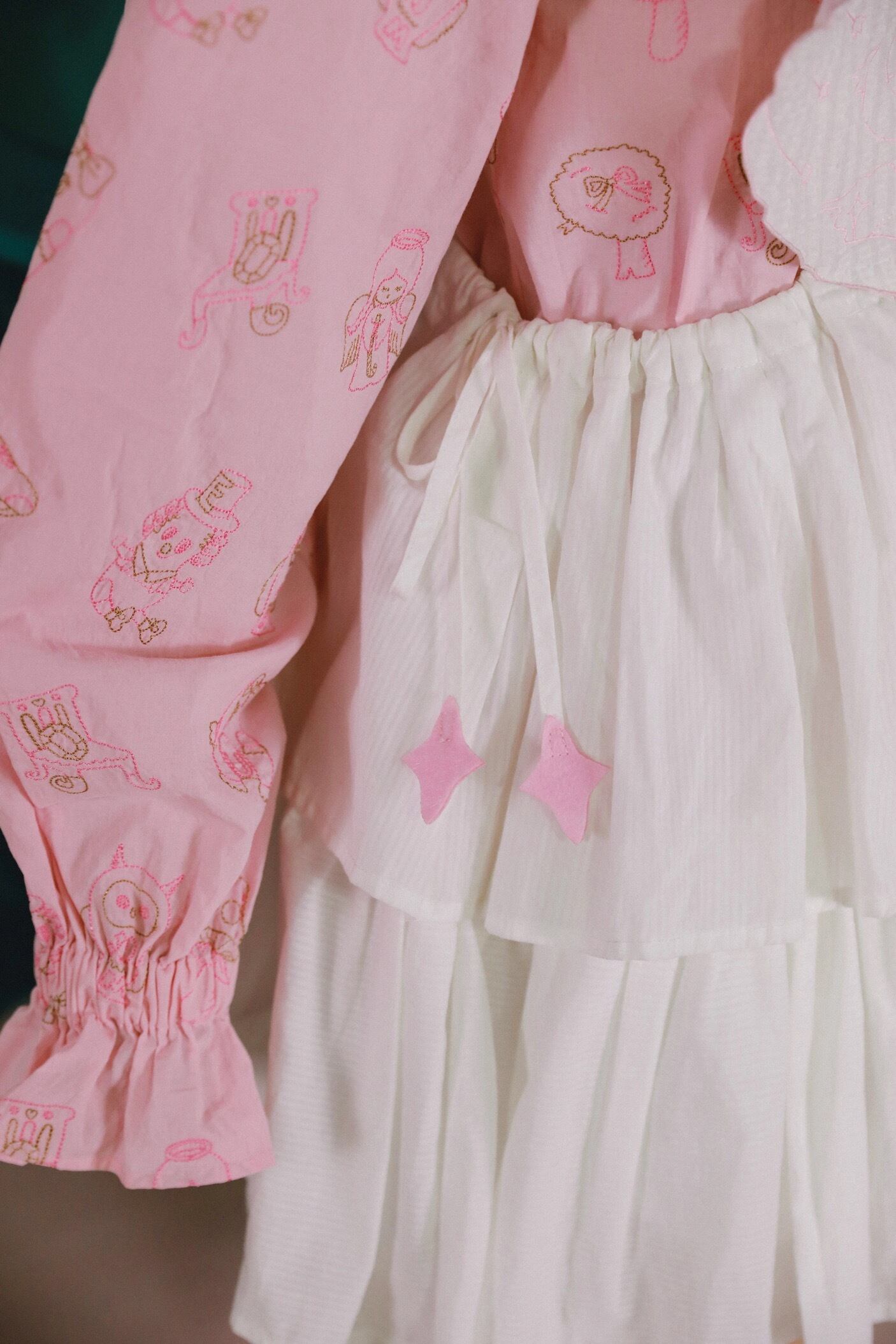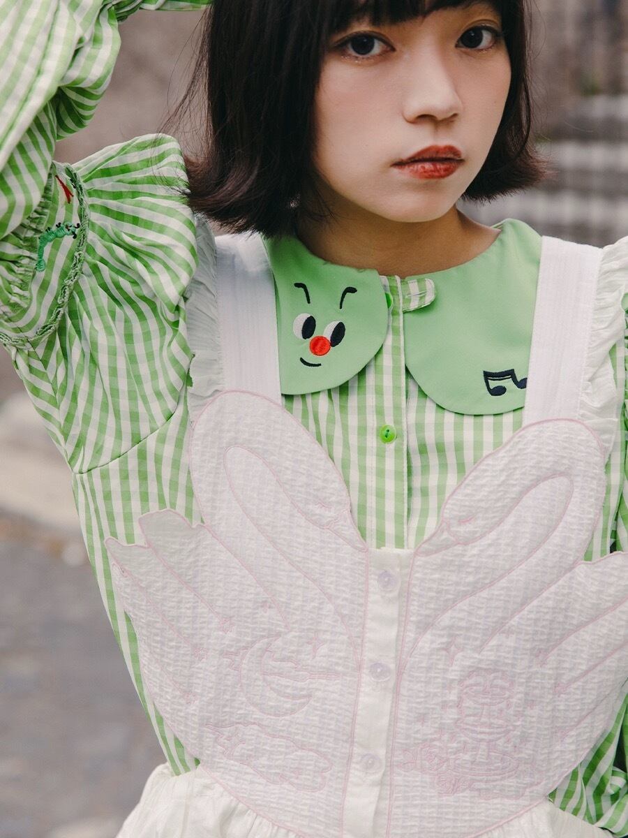 重ね着をしてブラウスにワンピースに