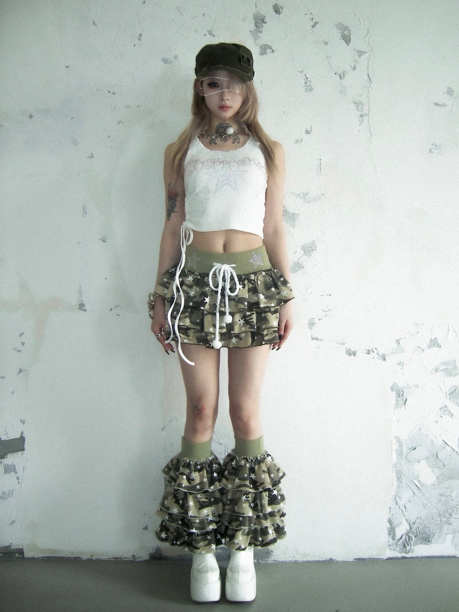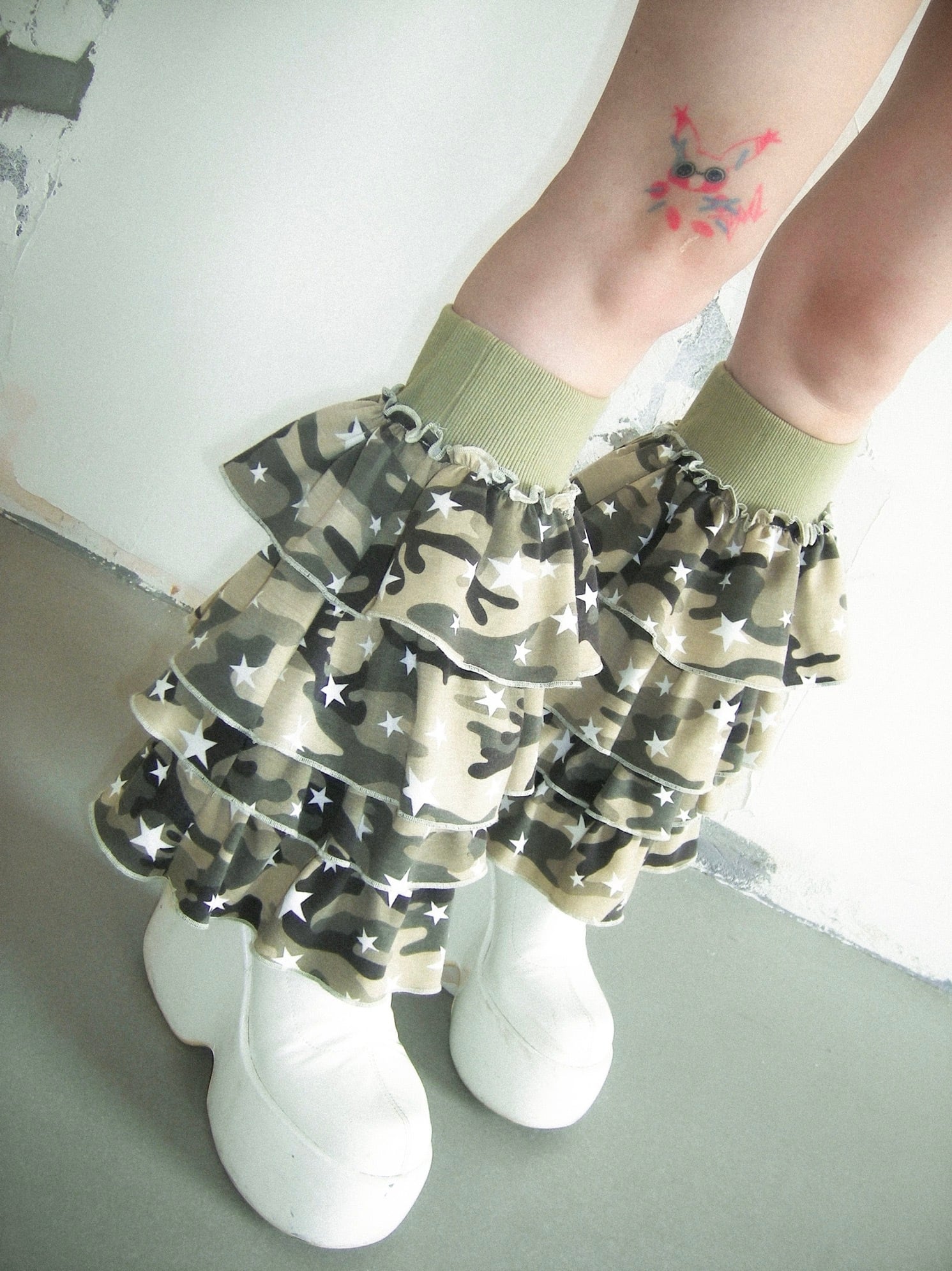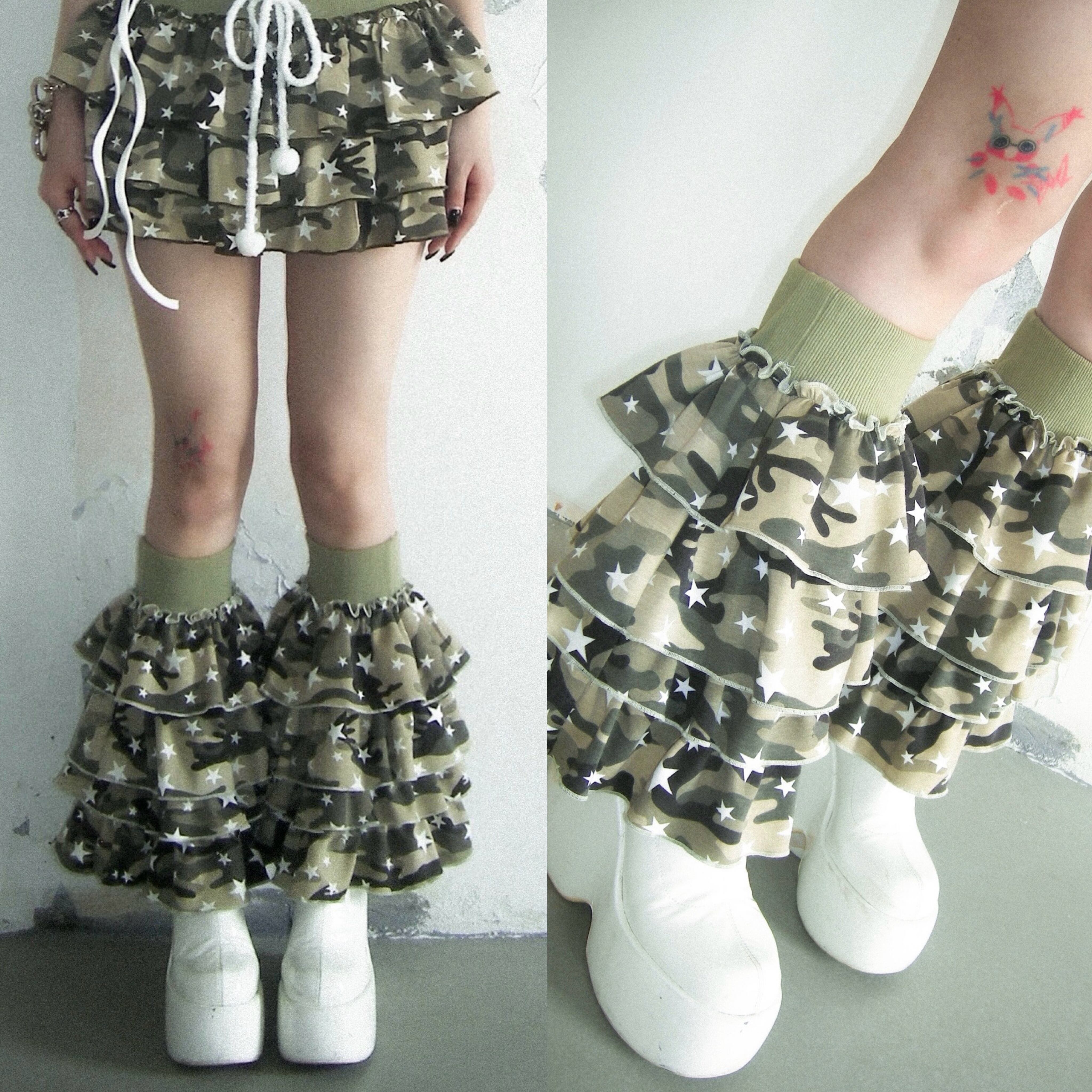 レッグウォーマー 迷彩 レオパード 緑 靴下