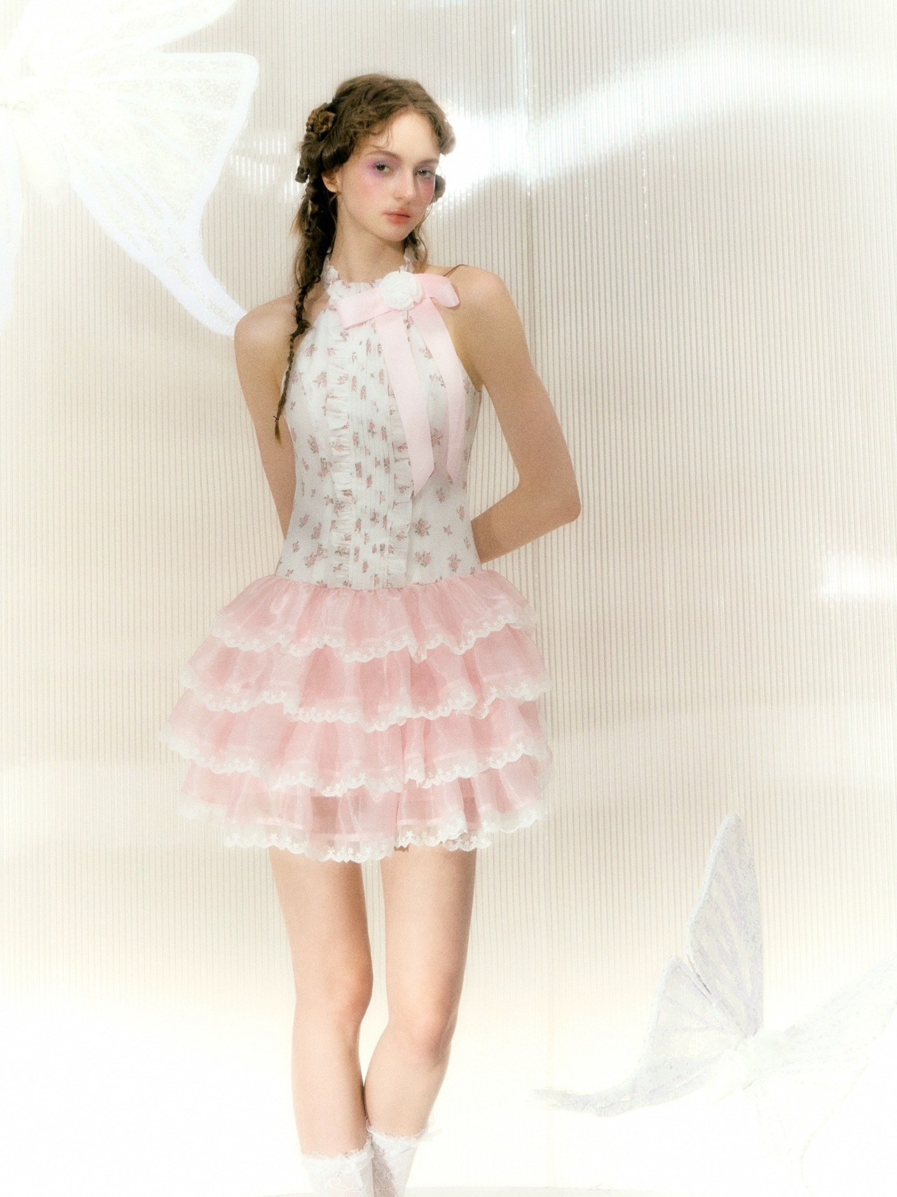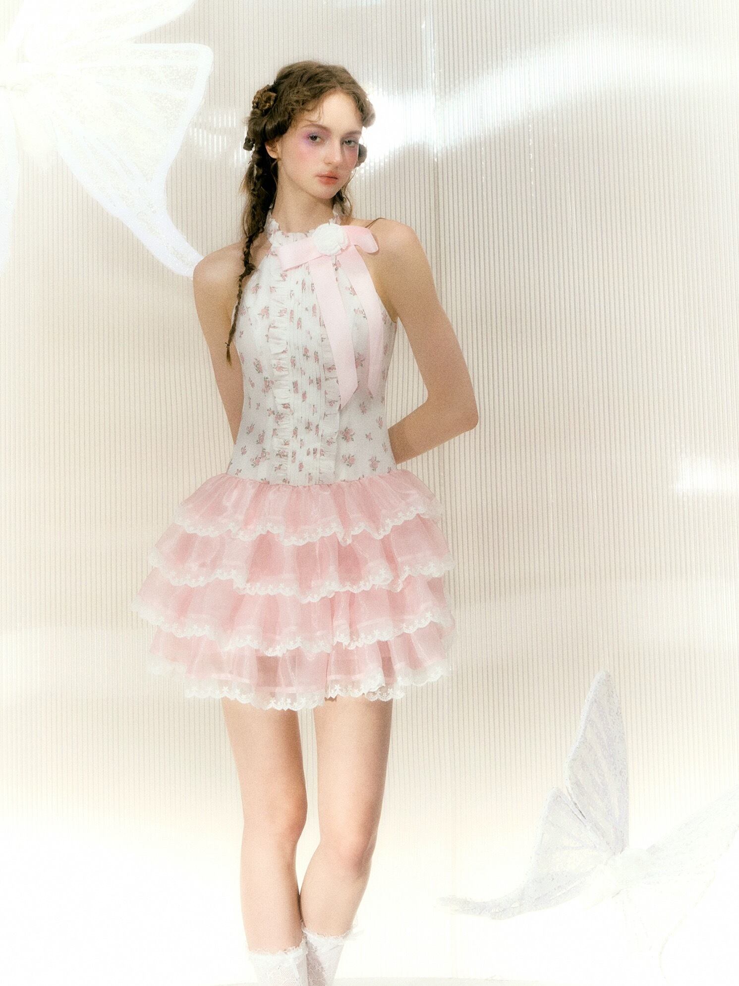ピンク 花柄 フラワー ワンピース ドレス