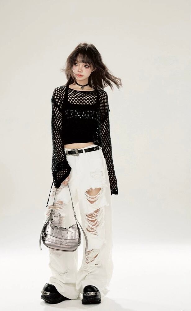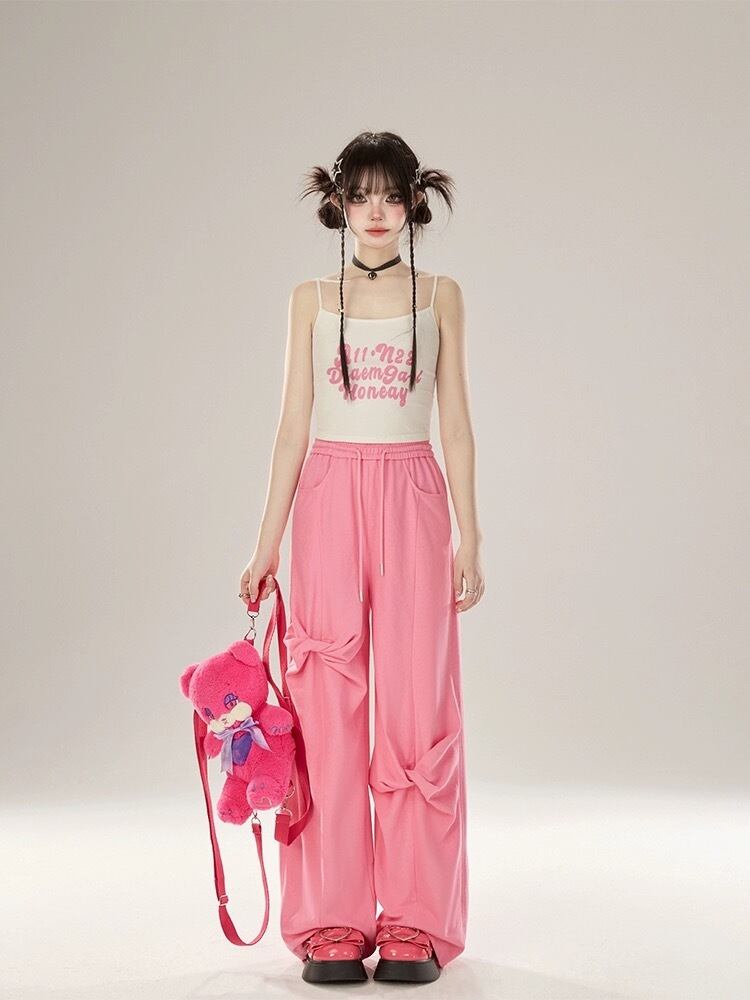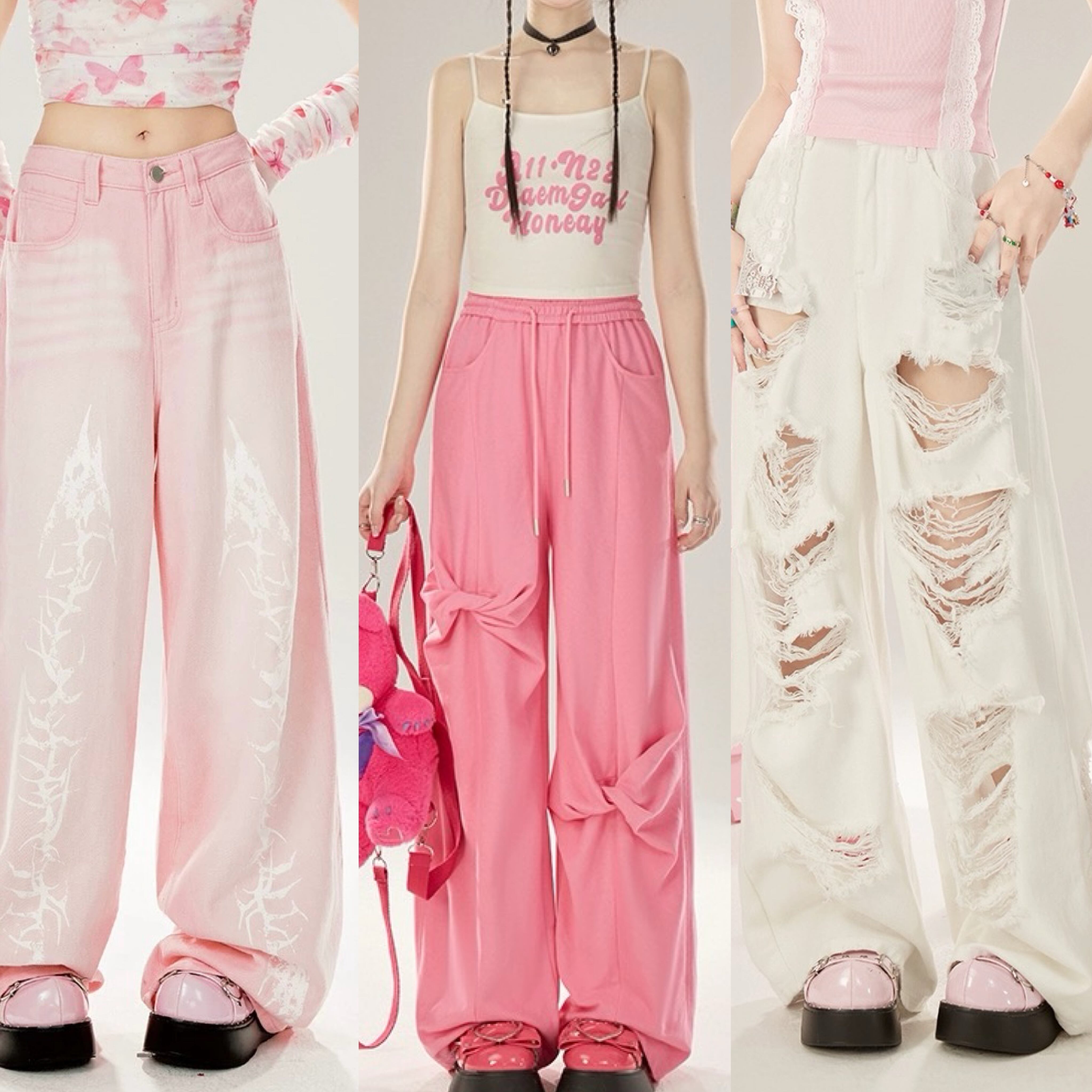 ボトムス パンツ 白 ピンク ダメージ カジュアル スウェット