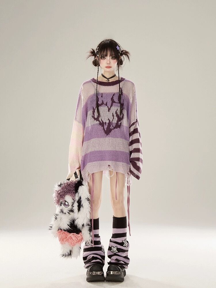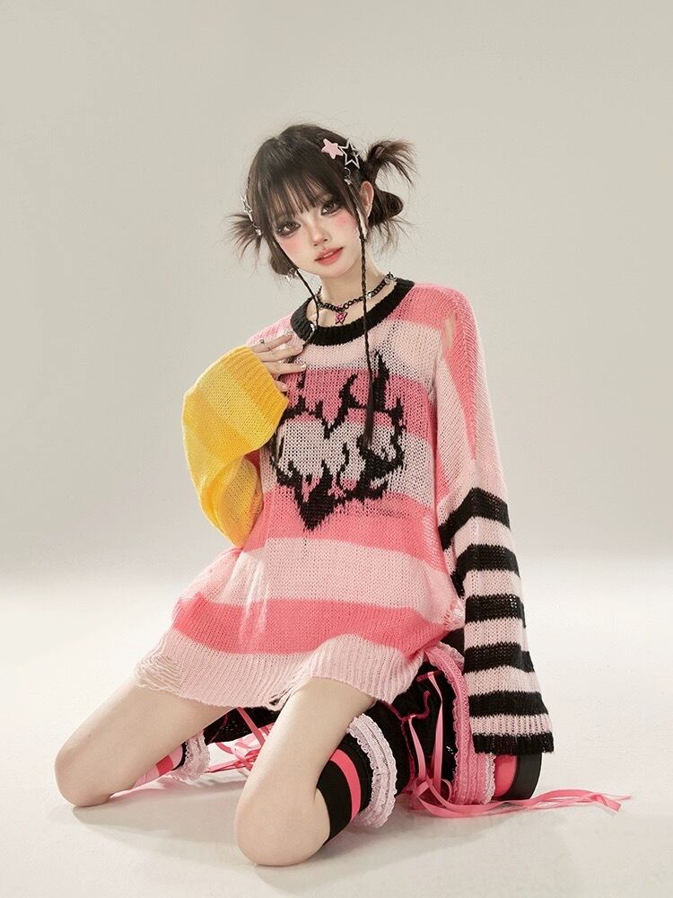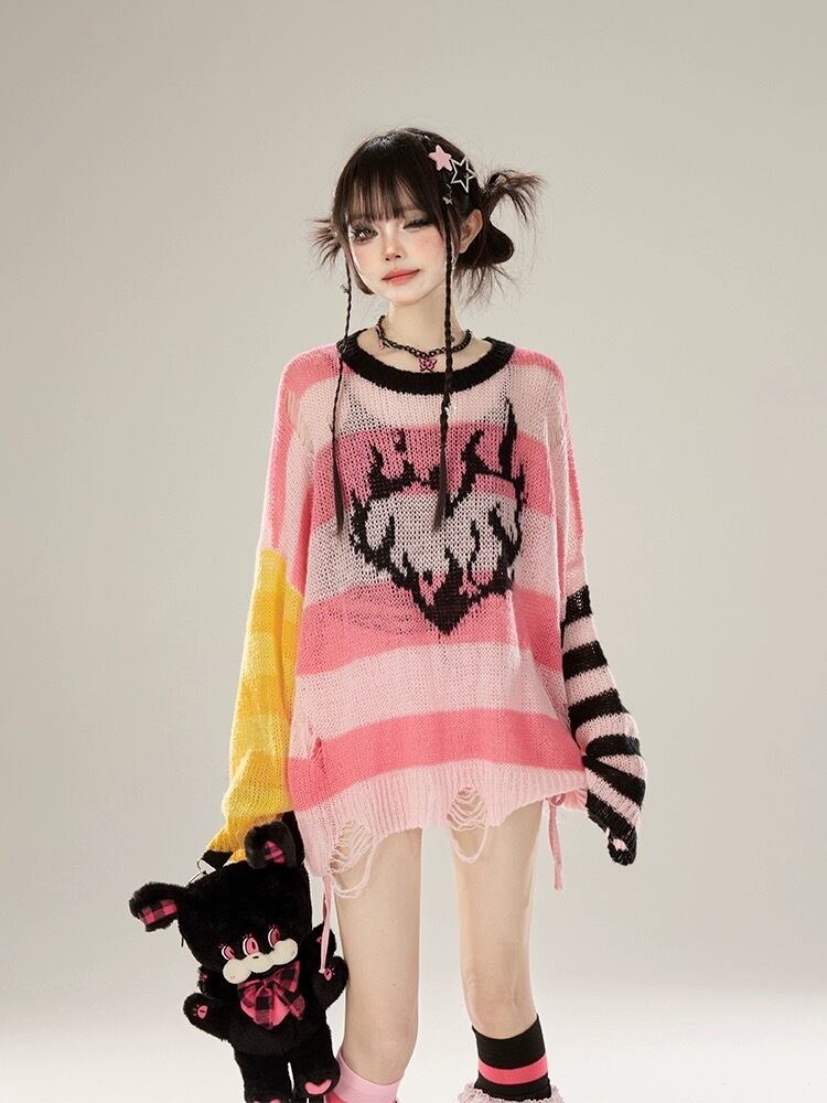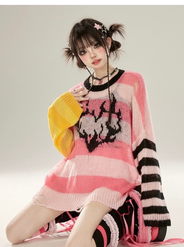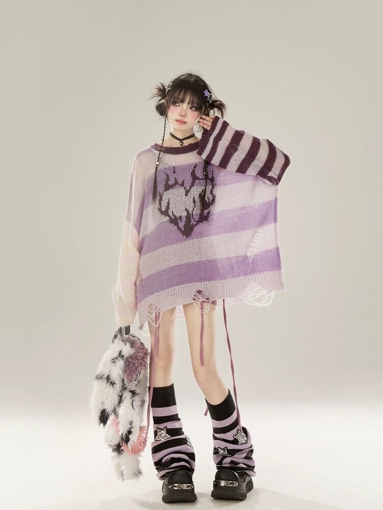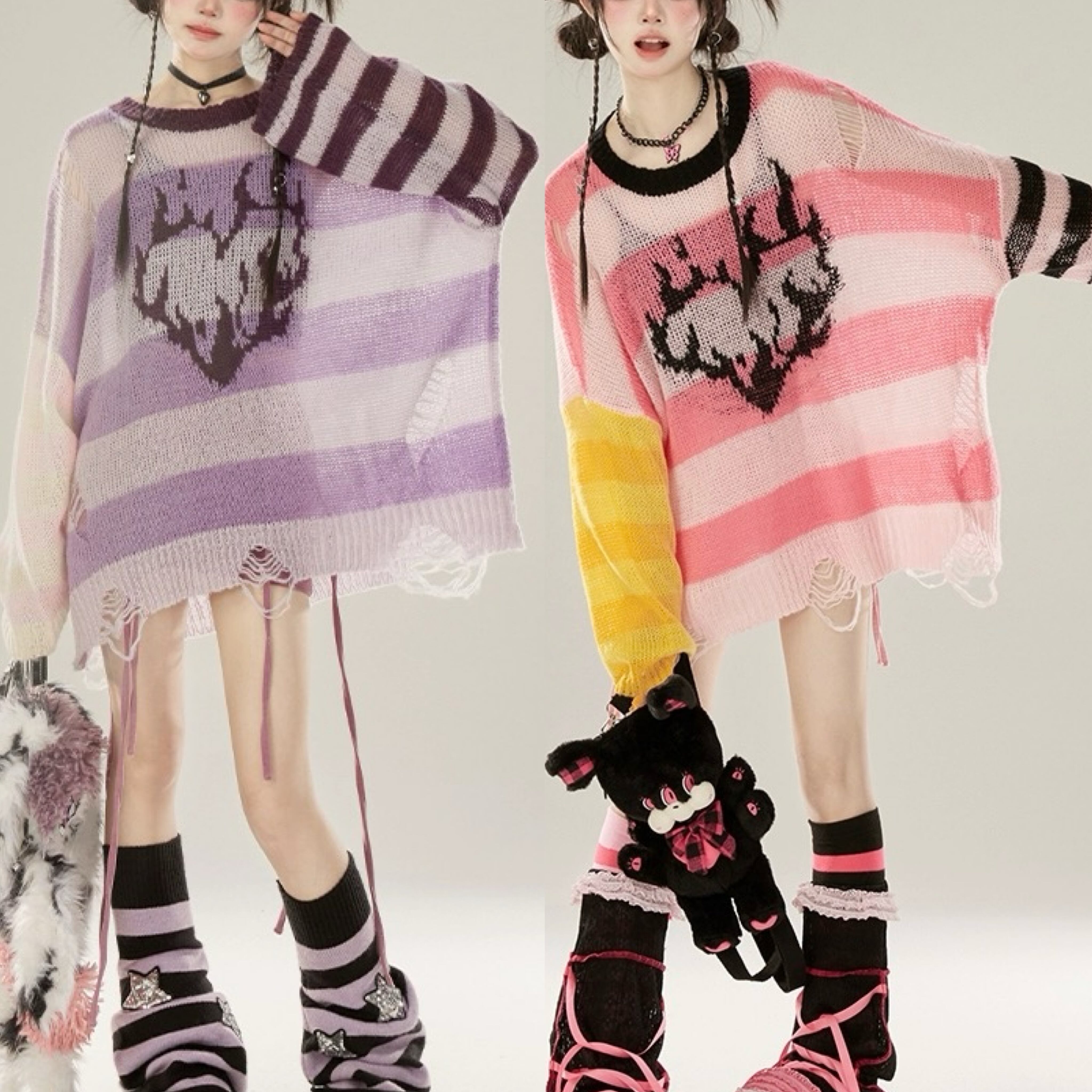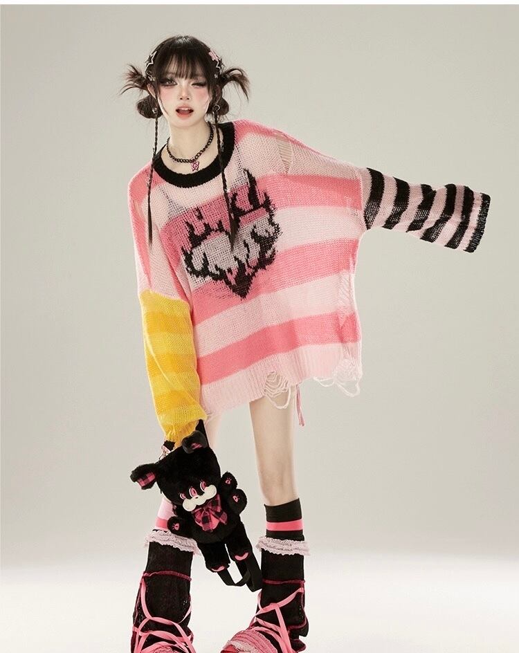 【ピンク即納❣️】ボーダー ダメージ ピンク 紫 チェック トップス