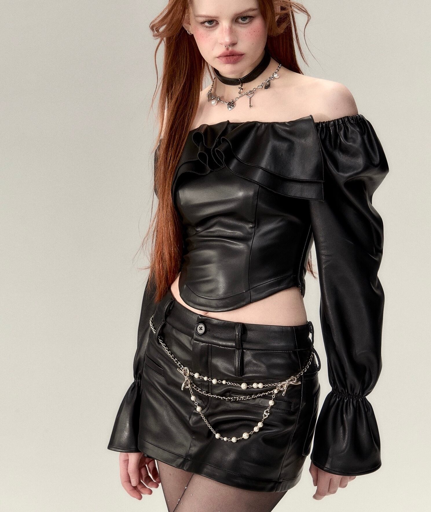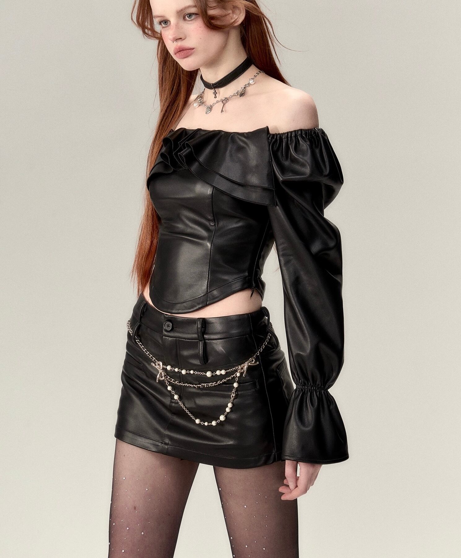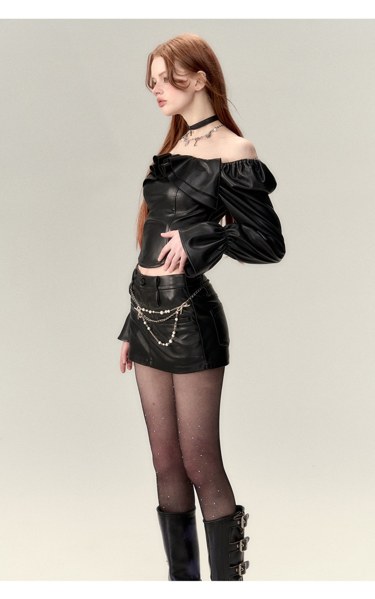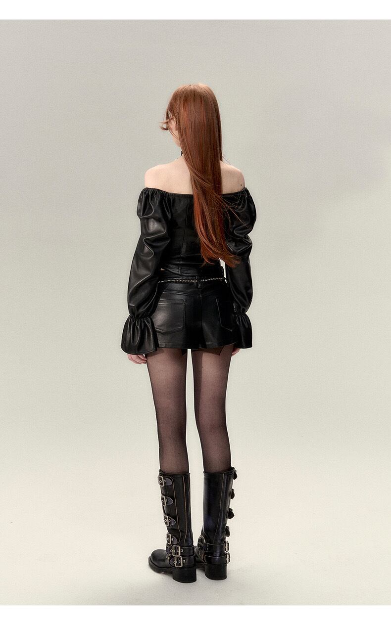 【スカート】黒 レザー ミニスカート ボトムス かっこいい