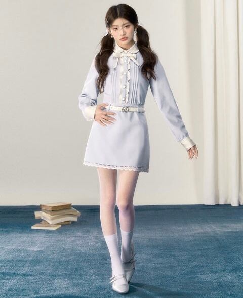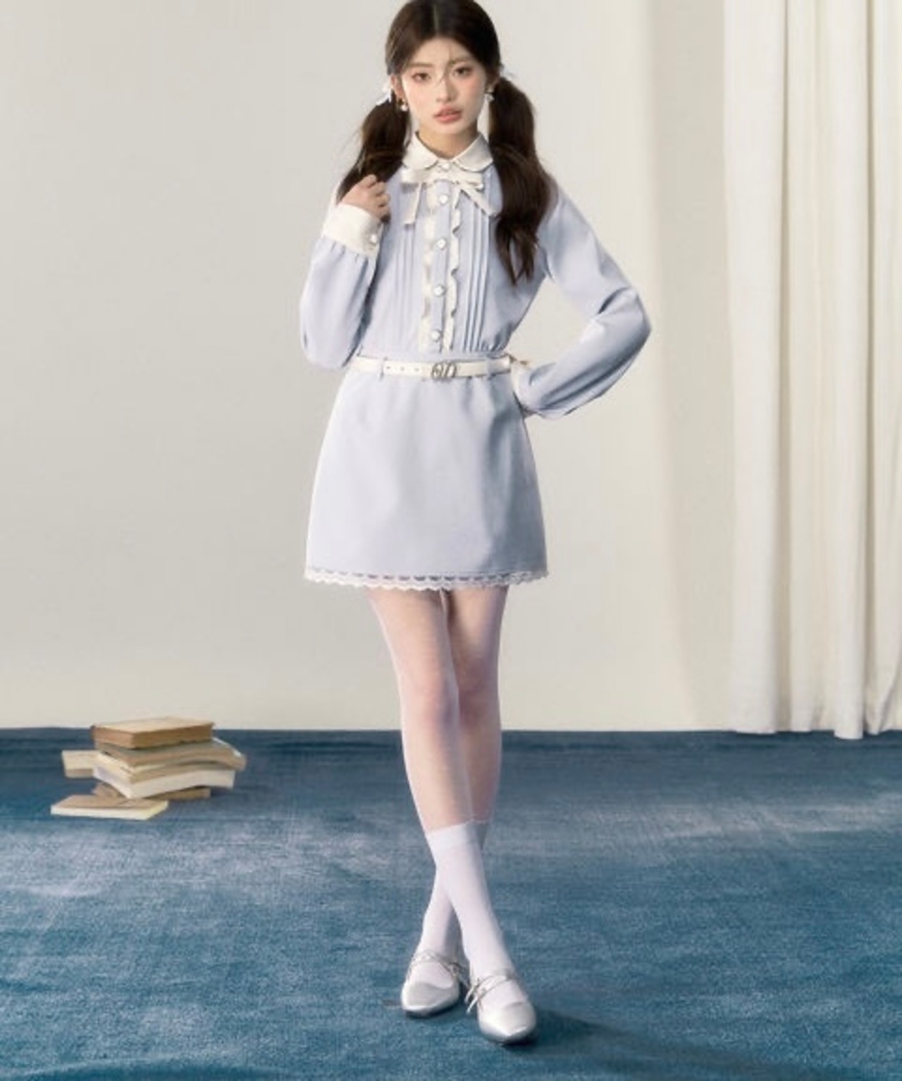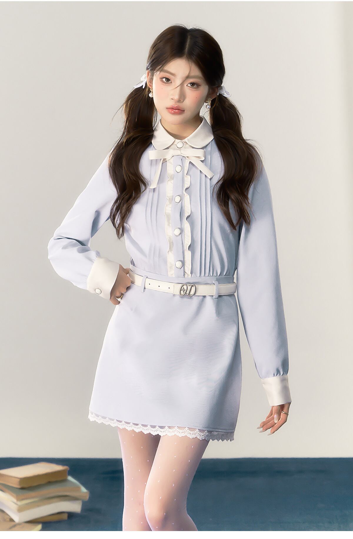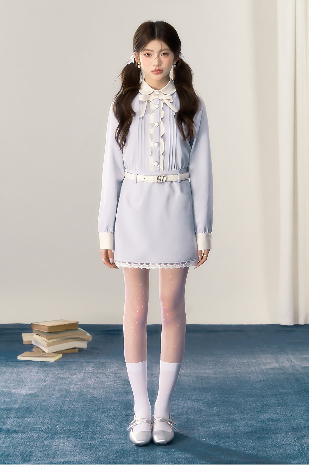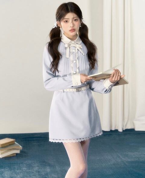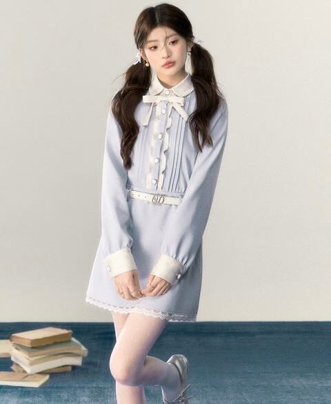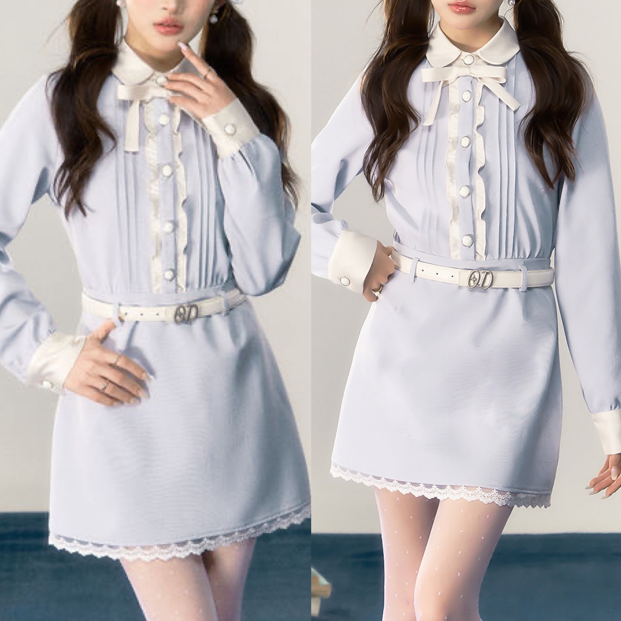 白 水色 ガーリー お嬢様 ワンピース リボン