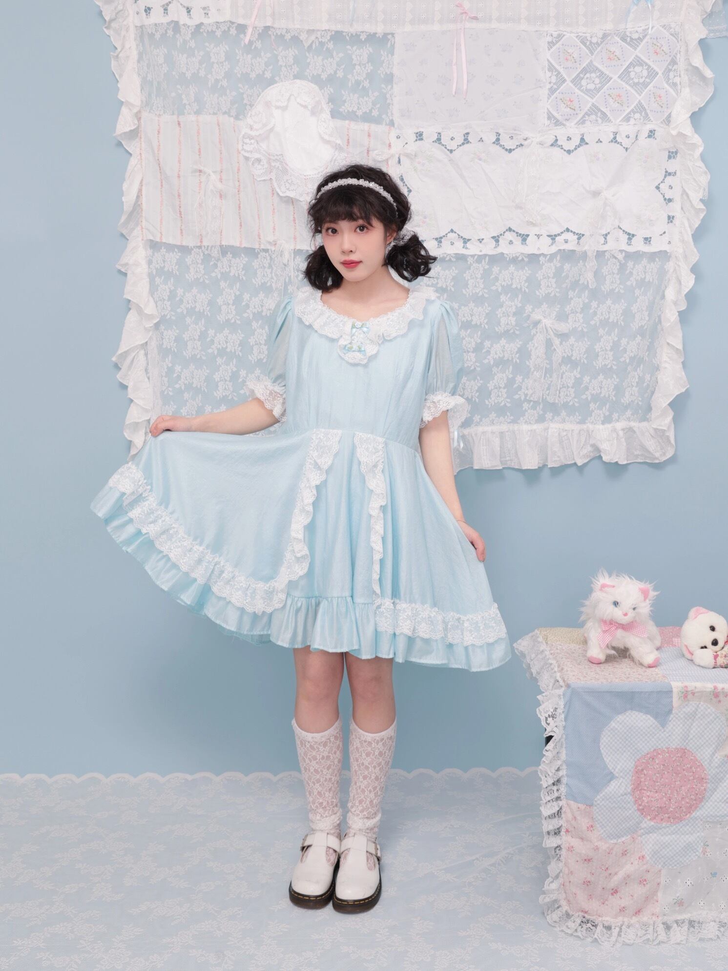 水色 ワンピース チュニック ガーリー ブラウス