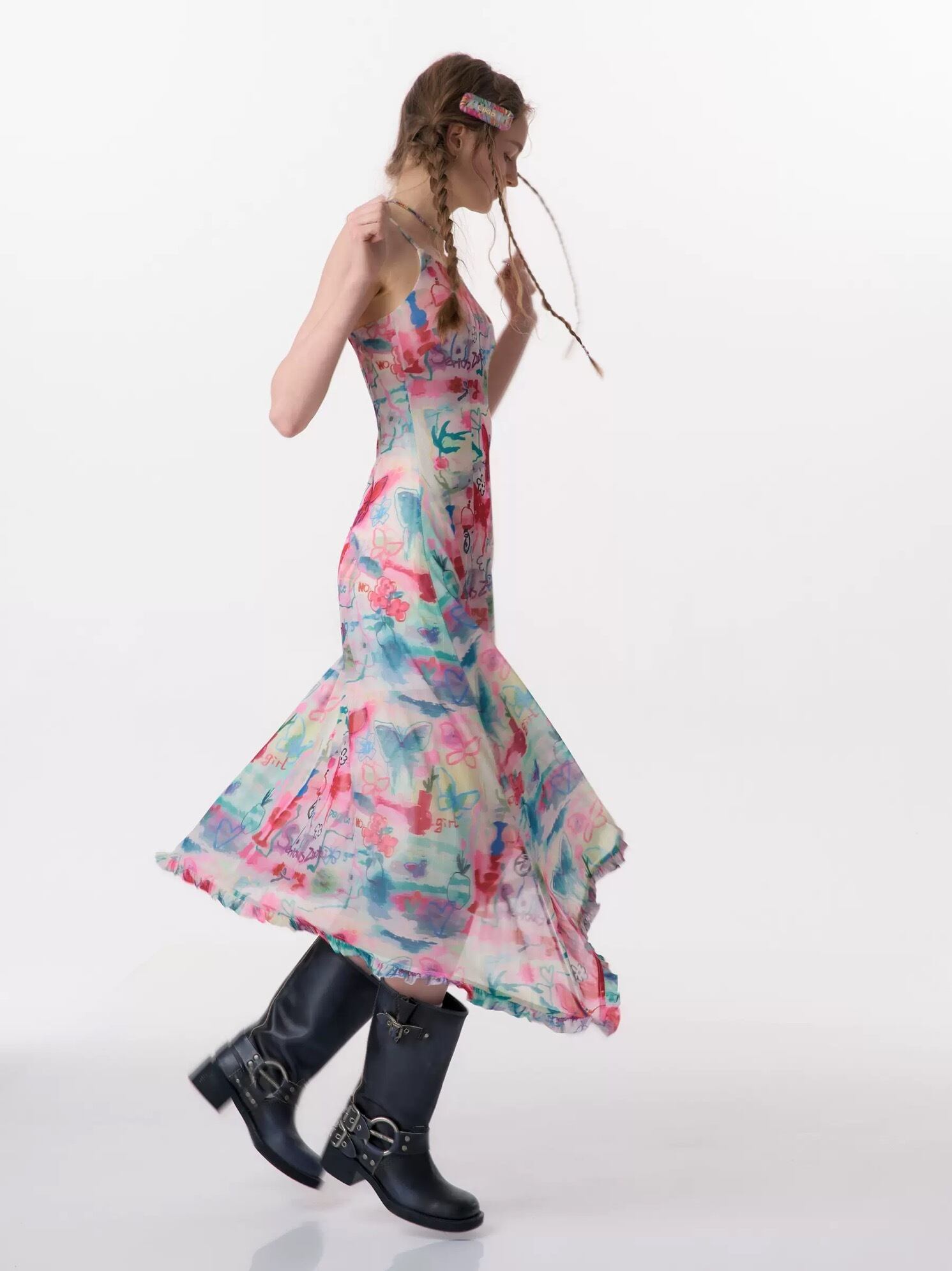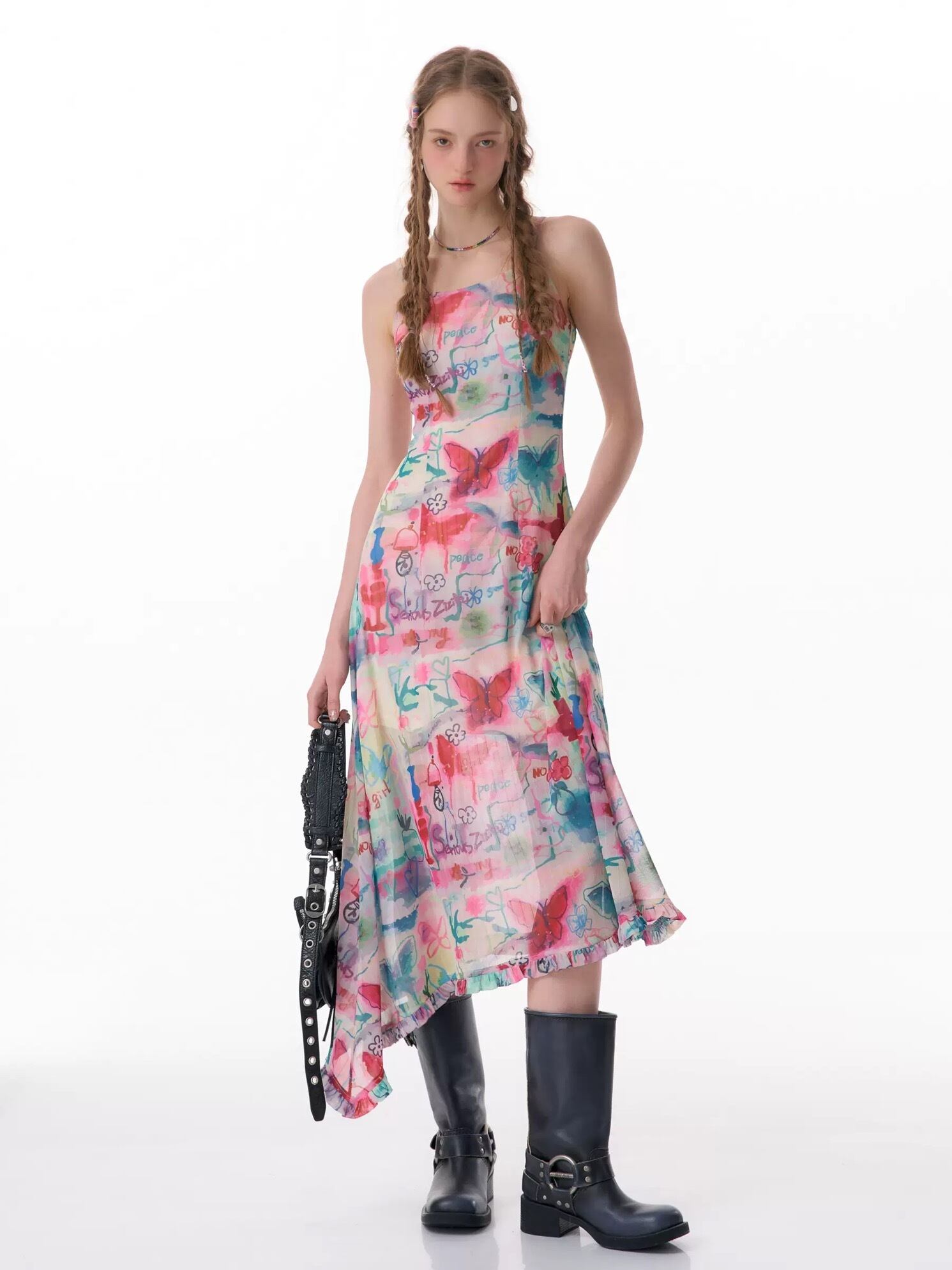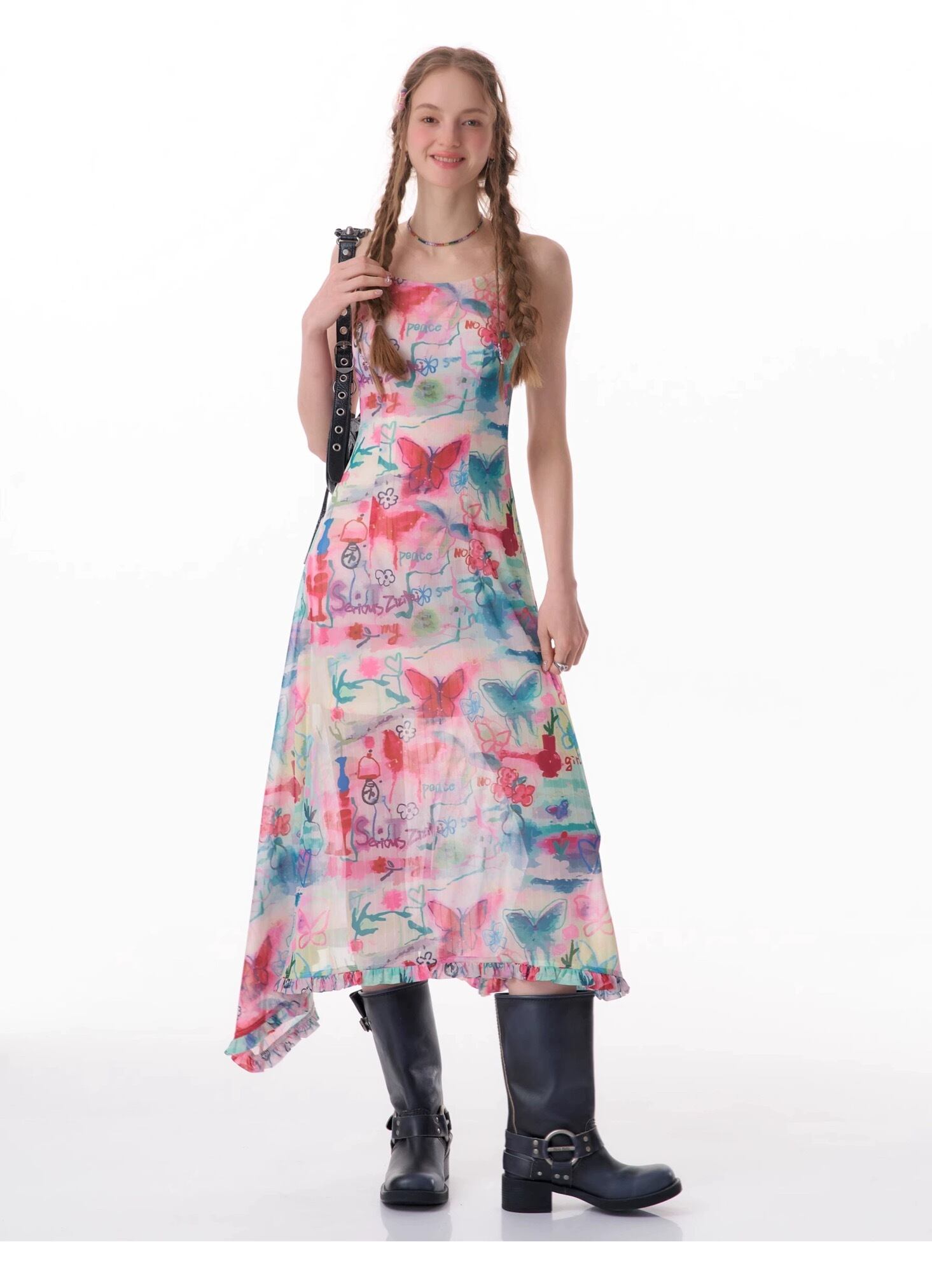 カラフル ワンピース バタフライ 水色 ピンク キャミソール