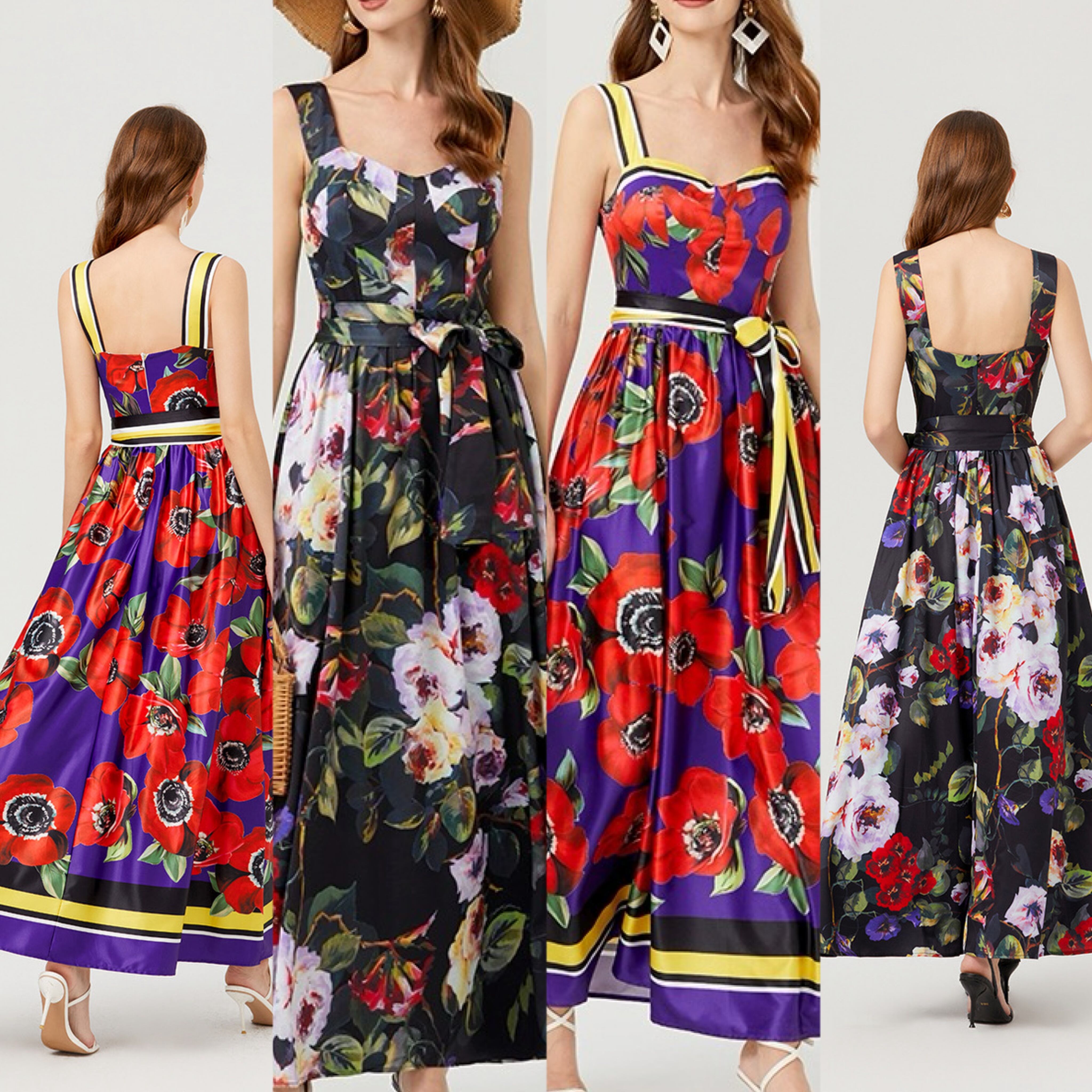 花柄 ワンピース 赤 黒 ネイビー 紫