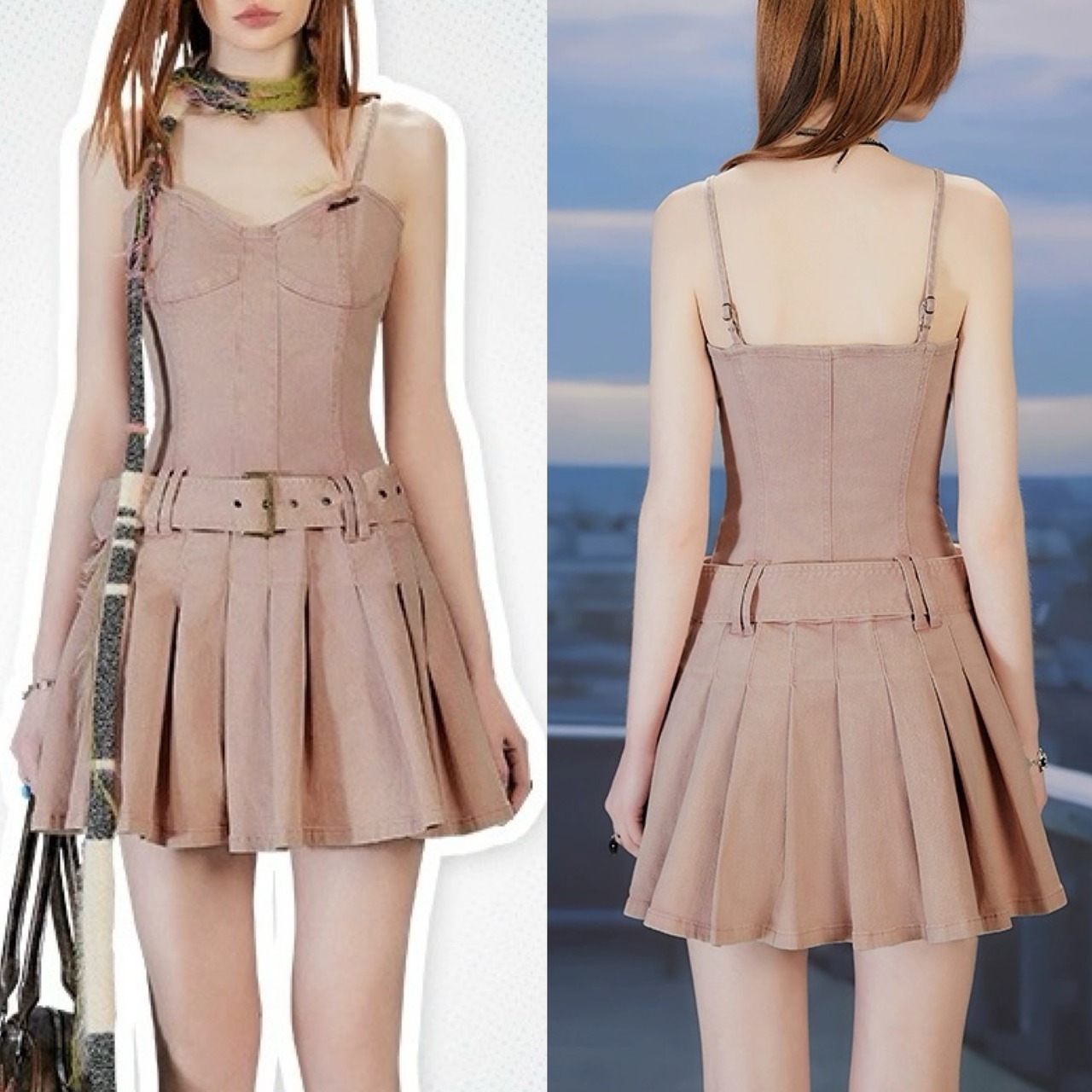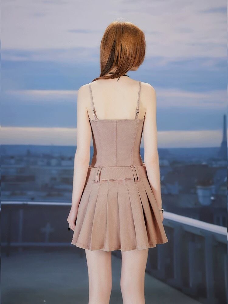 茶色 ベージュ キャミソール ワンピース
