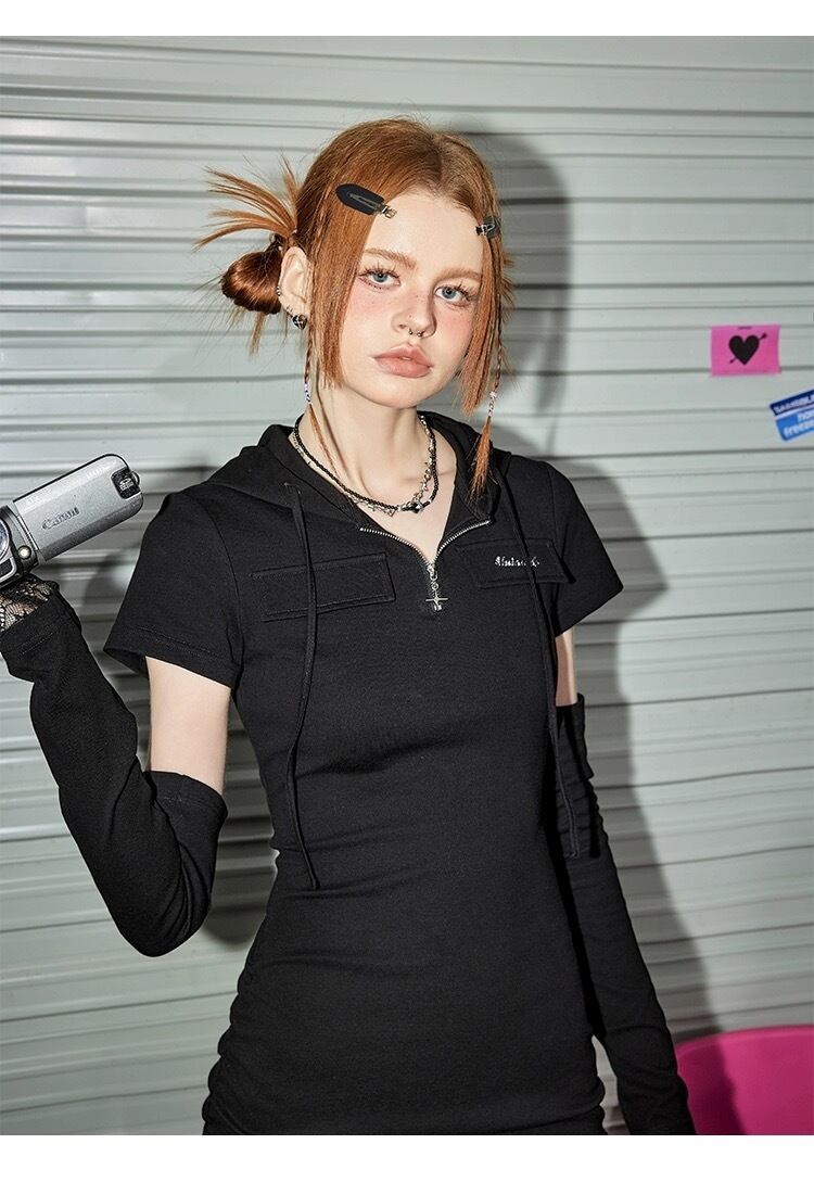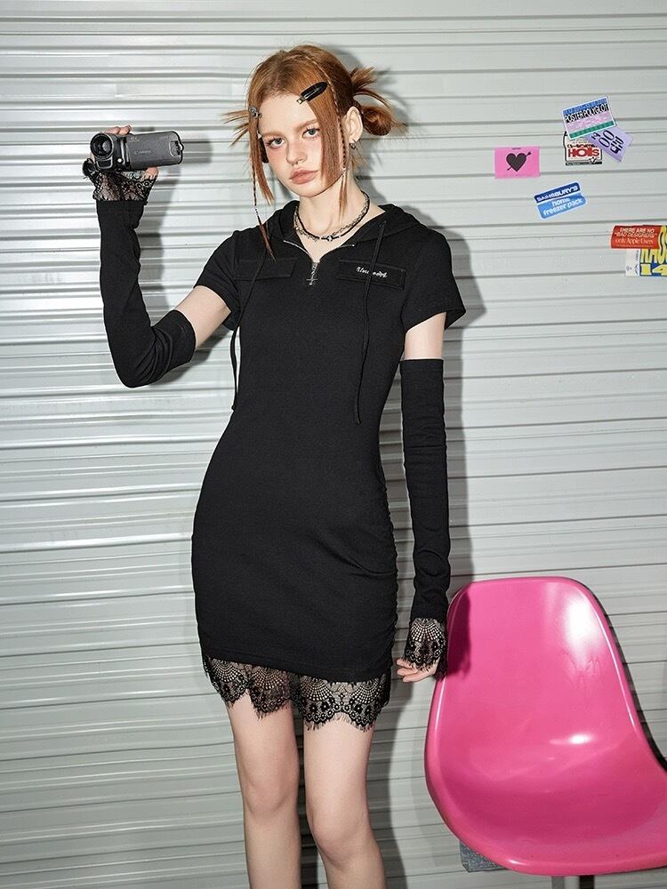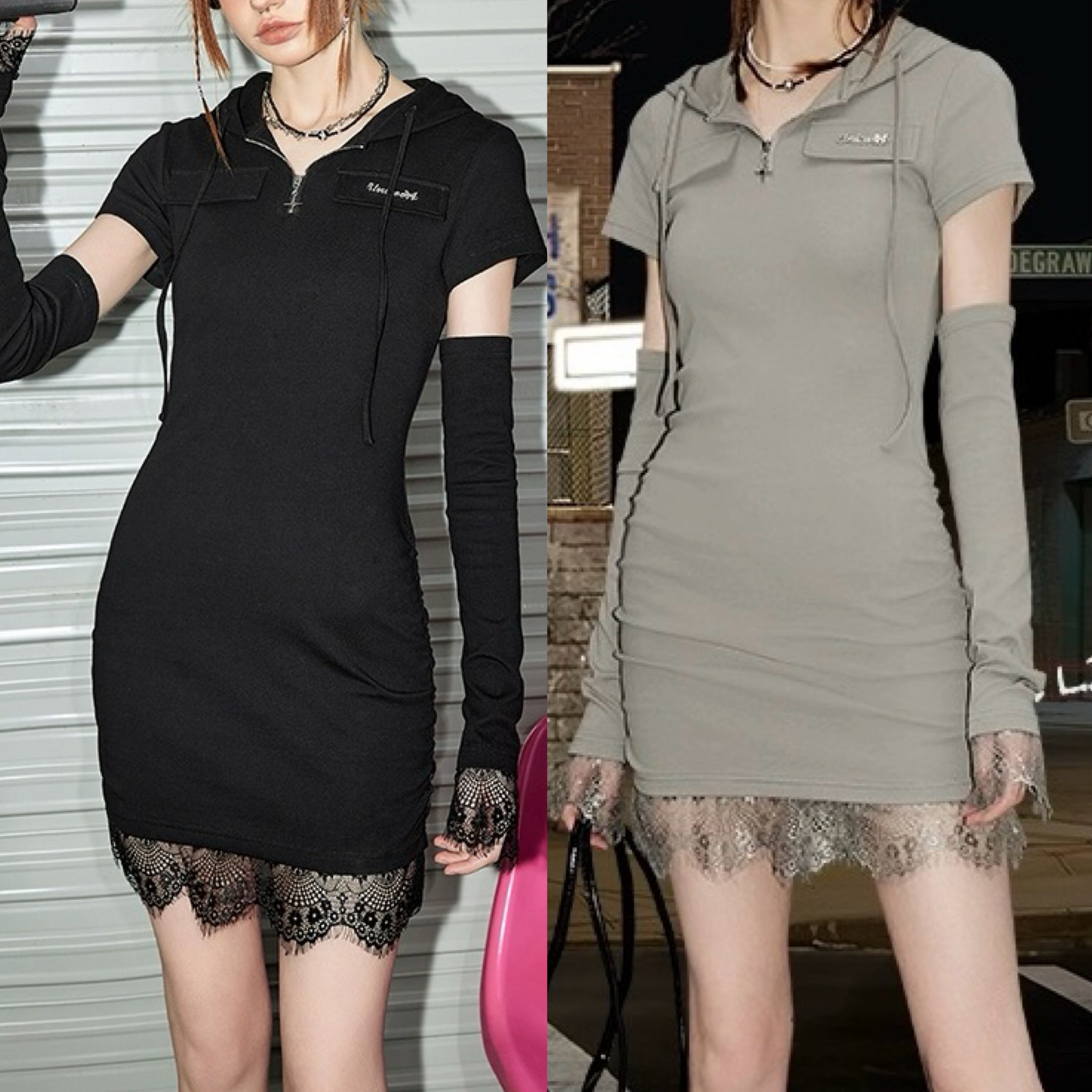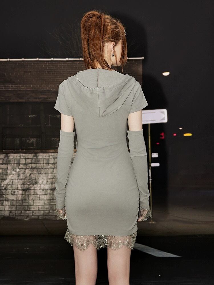 【アームウォーマーつき】グレー 黒 ワンピース カジュアル