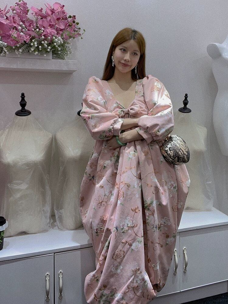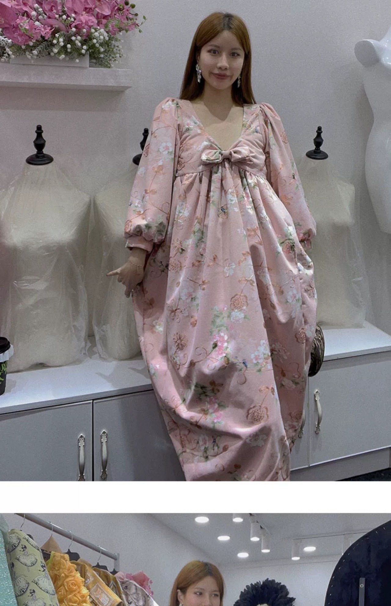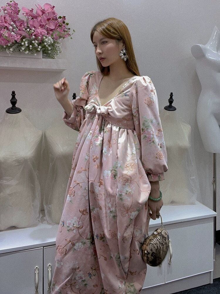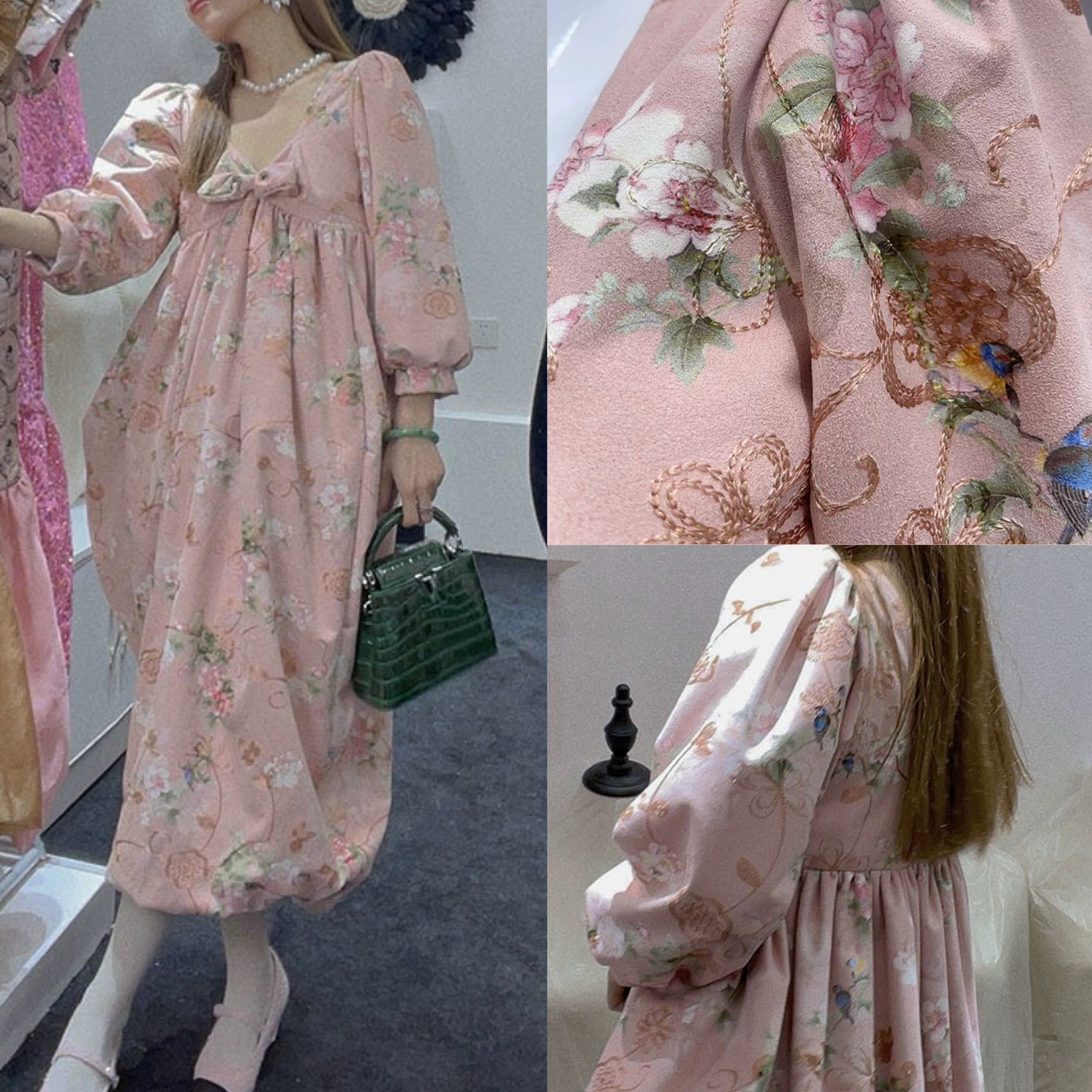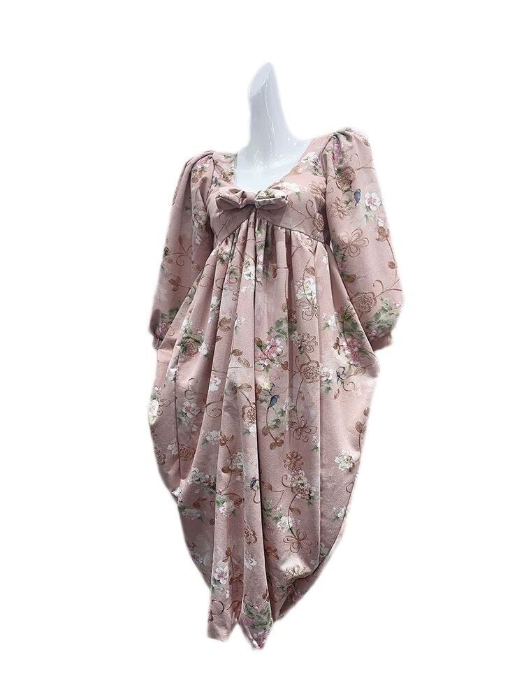 ピンク リボン ガーリー ワンピース 花柄
