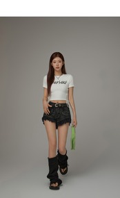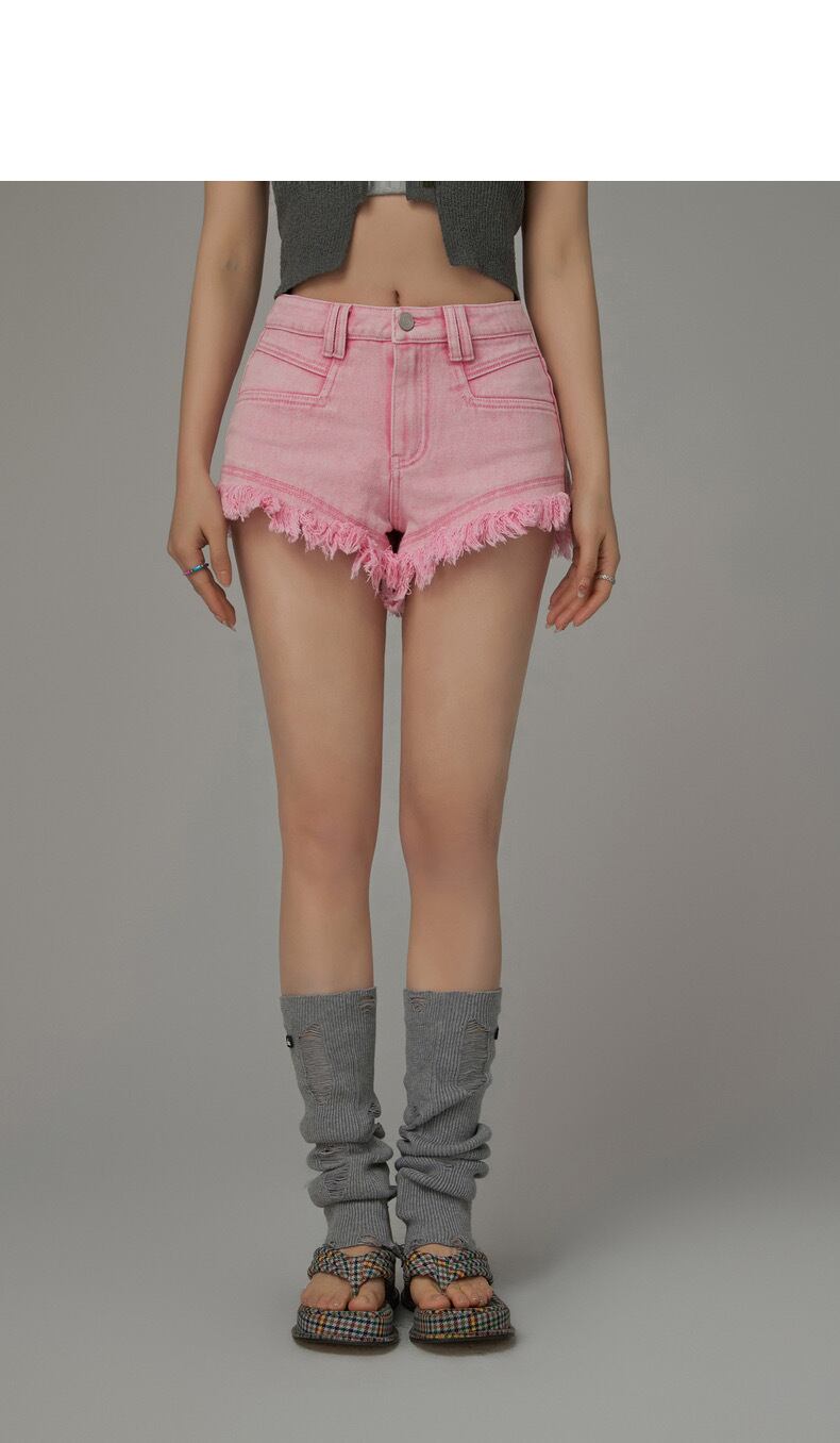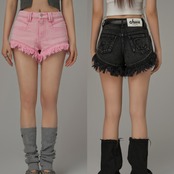 ショートパンツ 黒 ピンク ダメージ ボトムス カジュアル