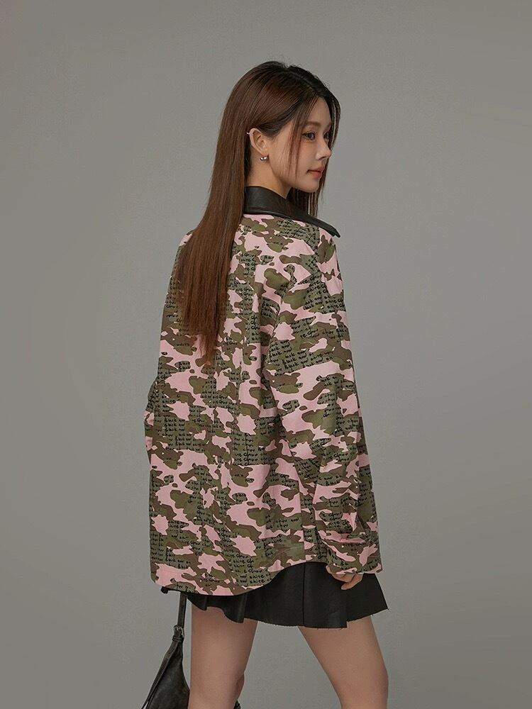 ピンク チェック シャツ 迷彩 カモフラージュ ブラウス
