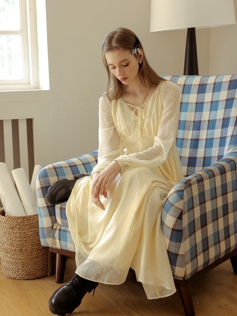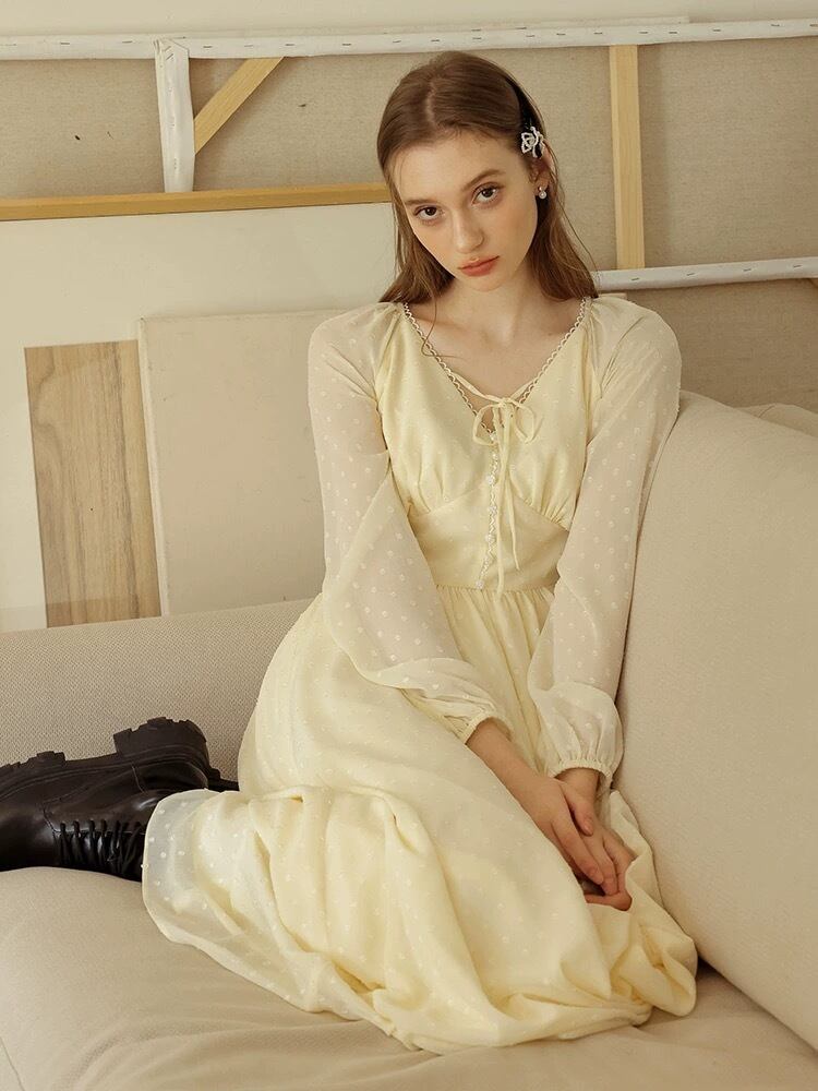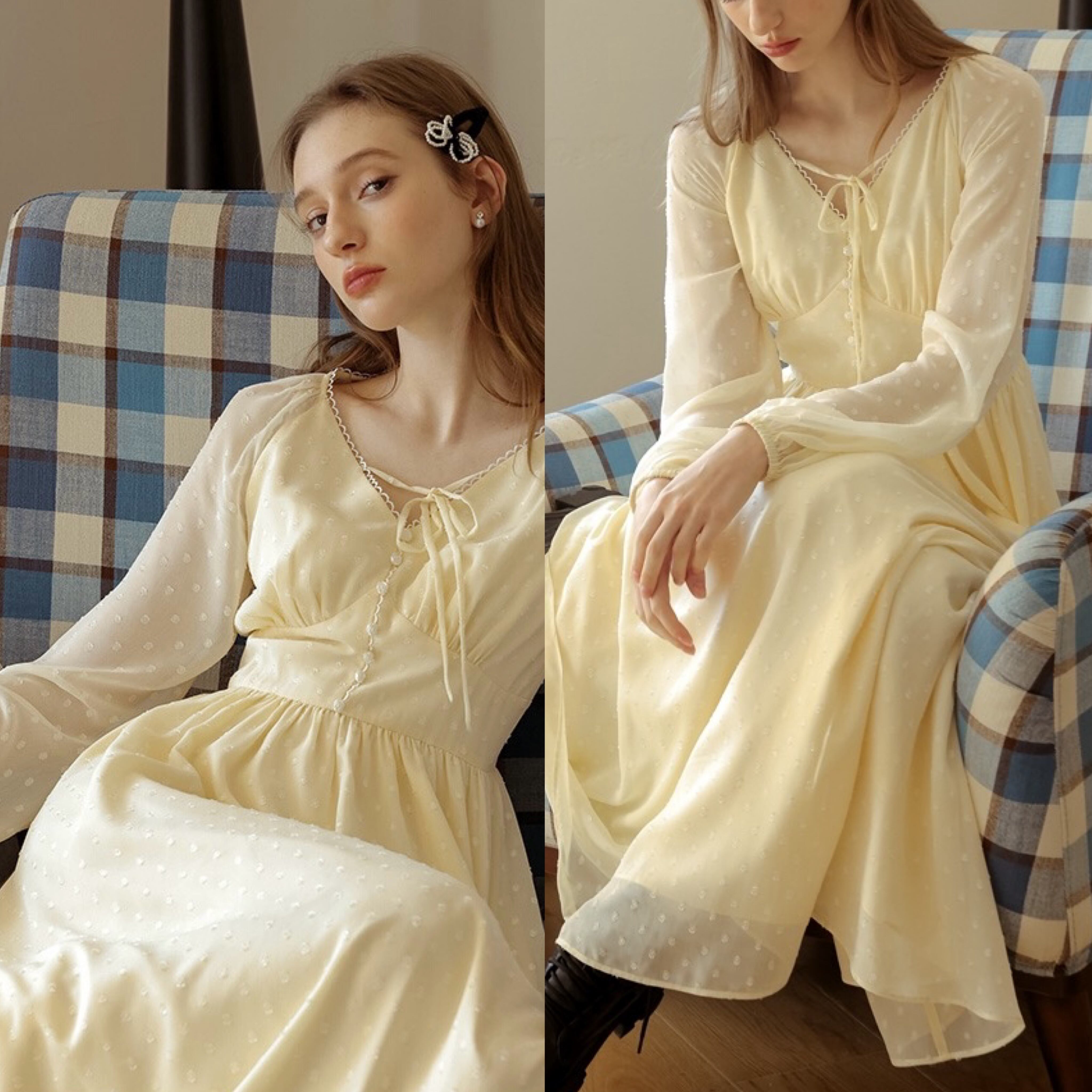 黄色 ガーリー ワンピース 可愛い ブラウス