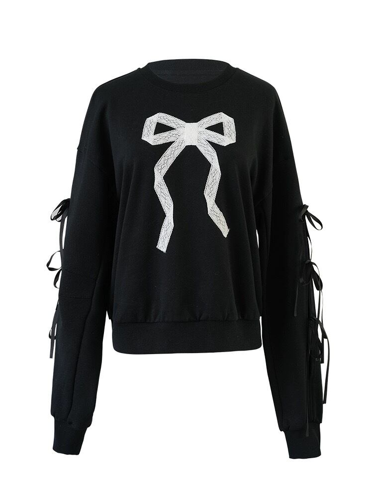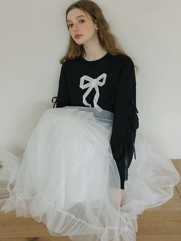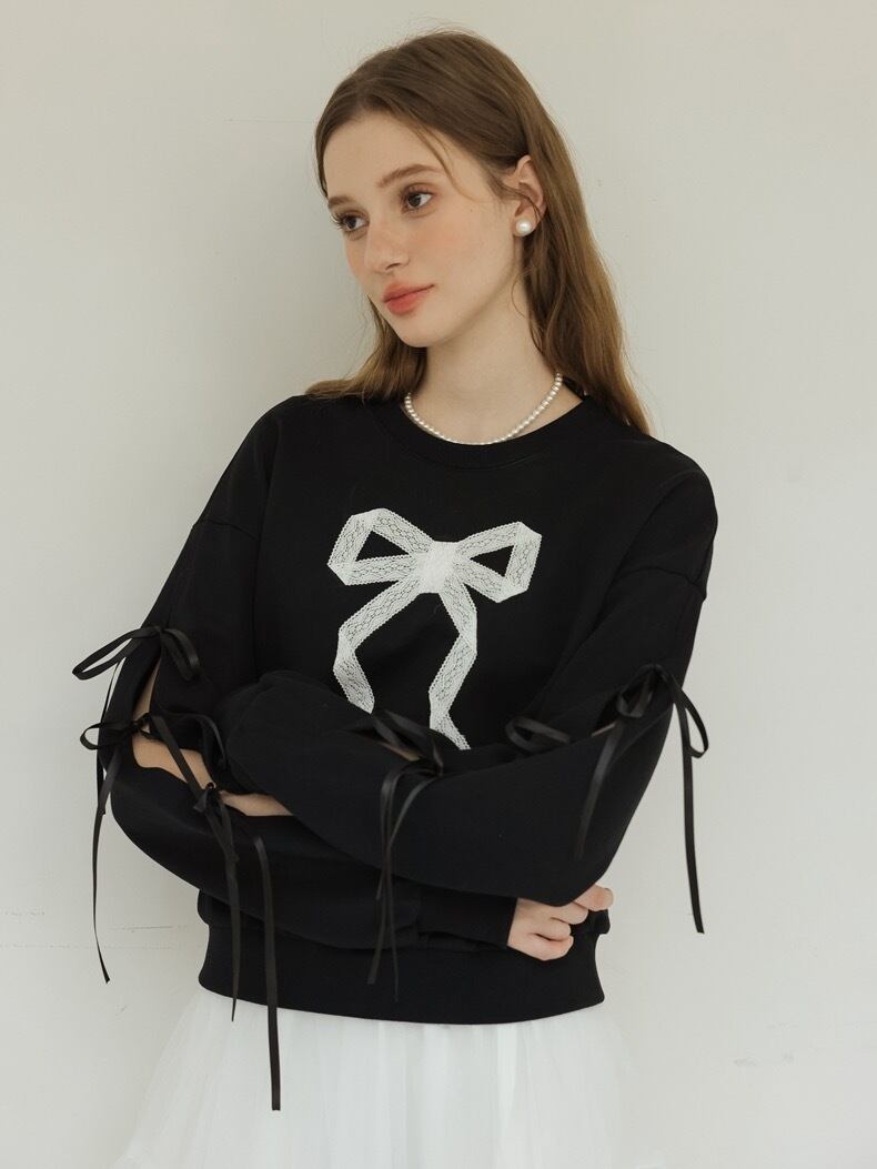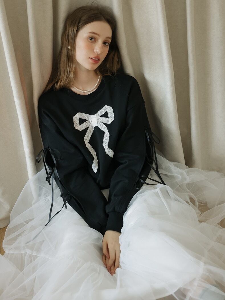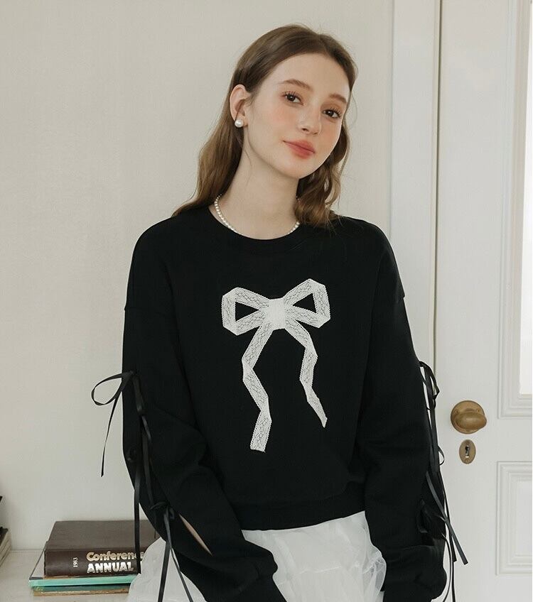 リボン トレーナー スウェット カジュアル 黒