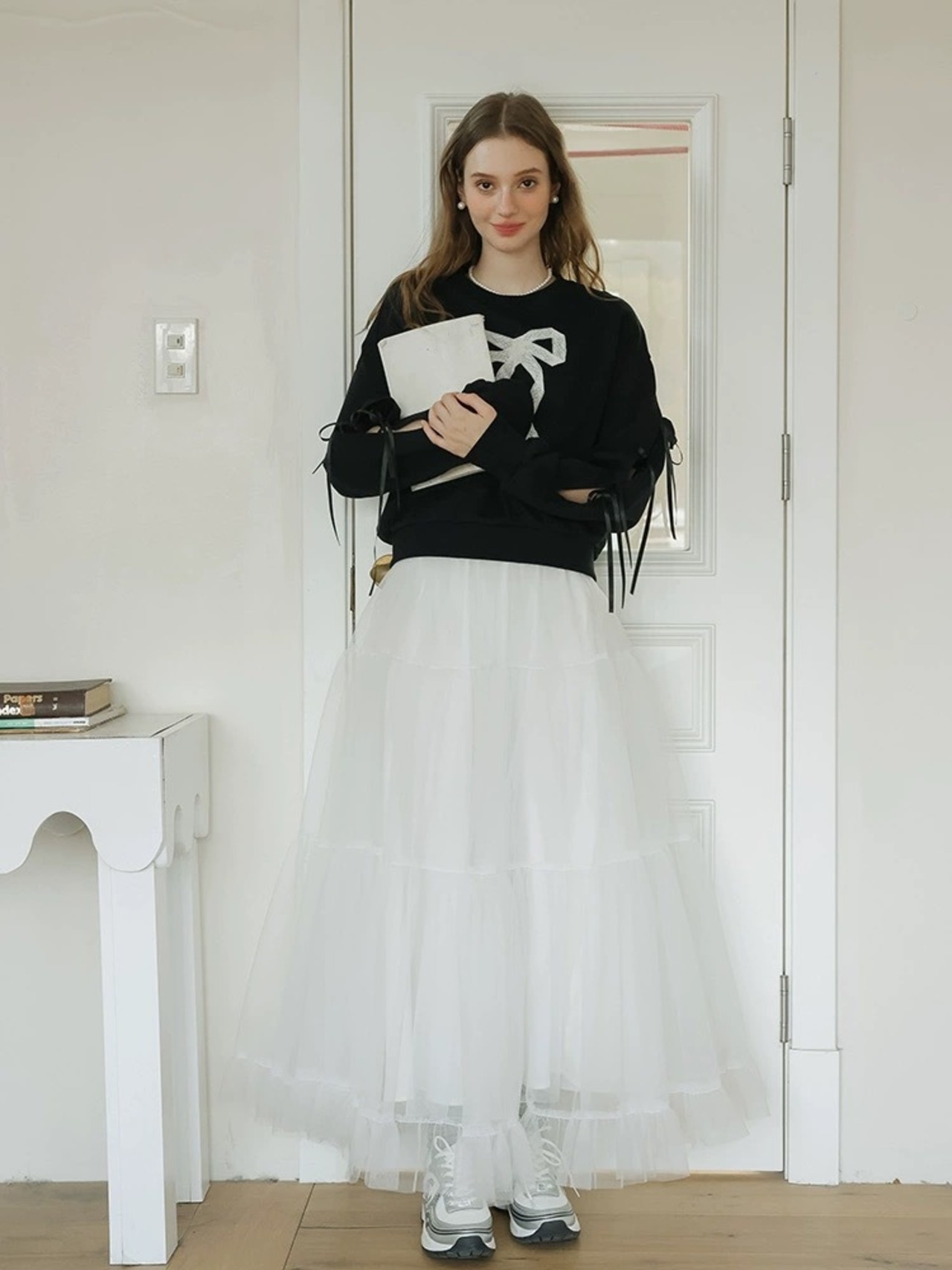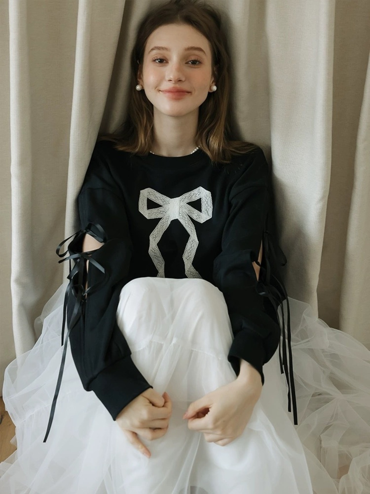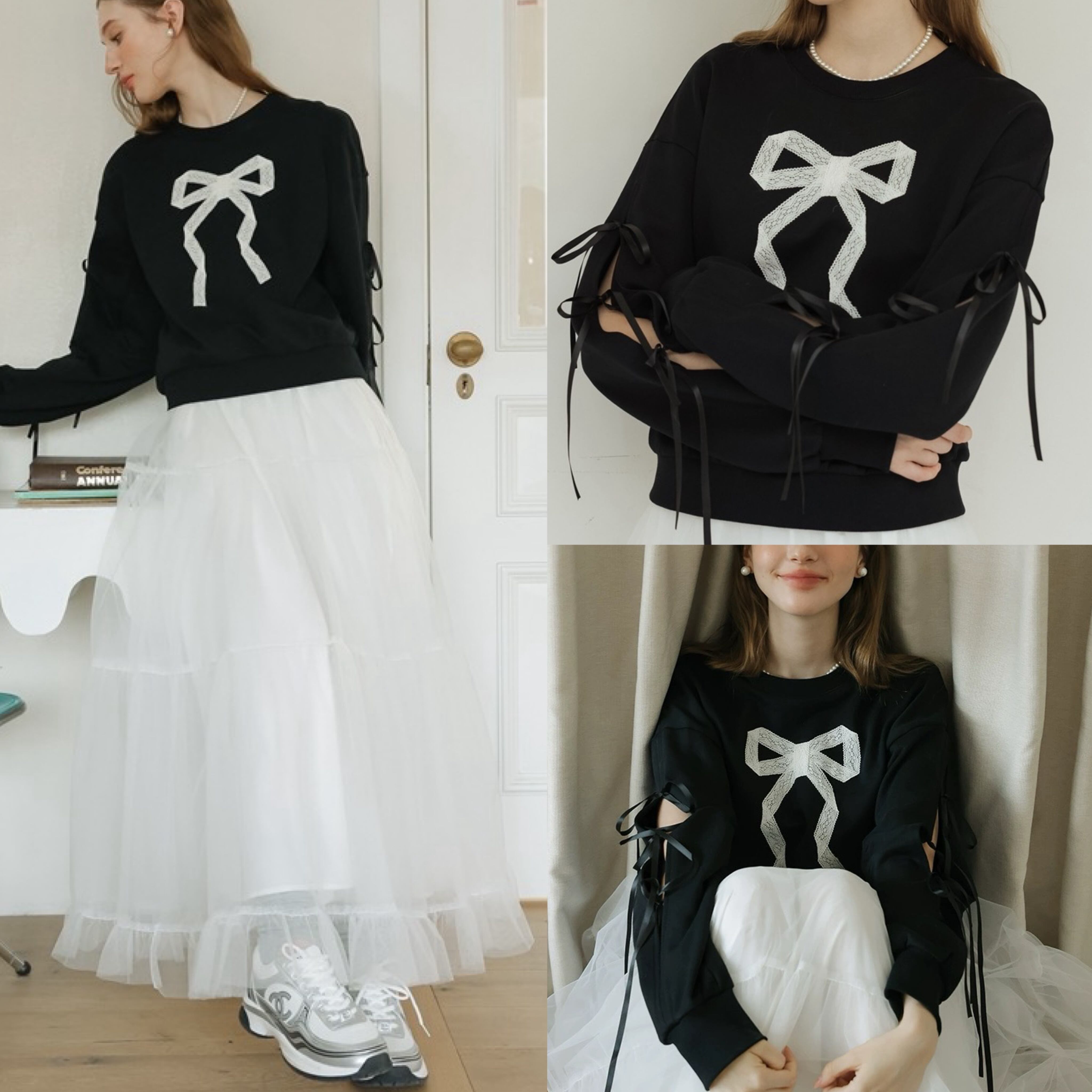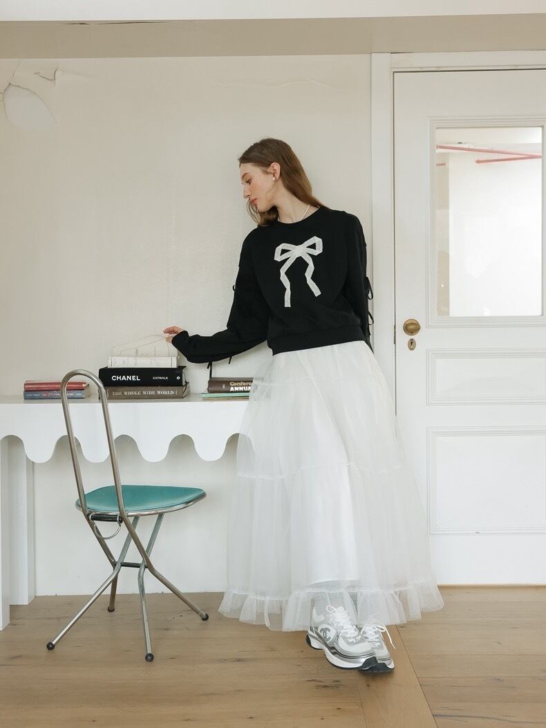 リボン トレーナー スウェット カジュアル 黒