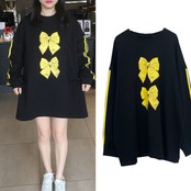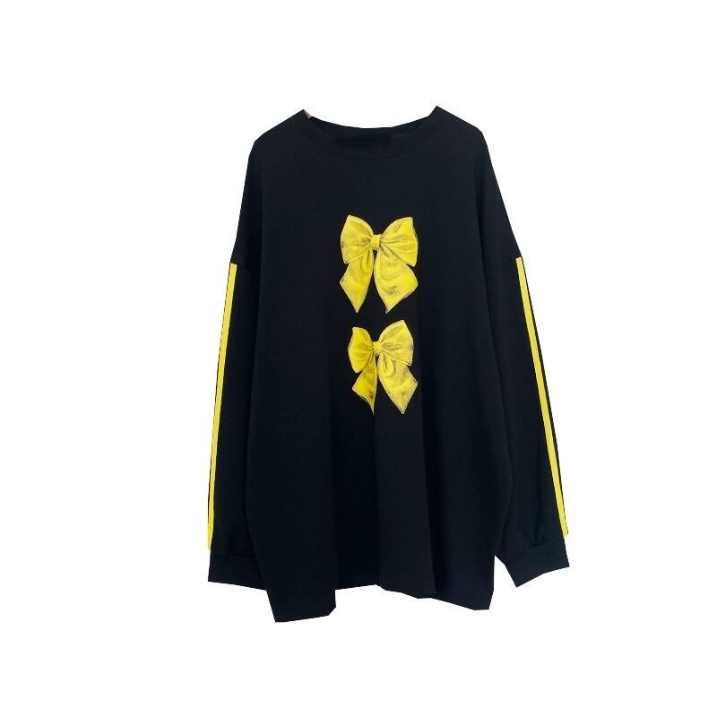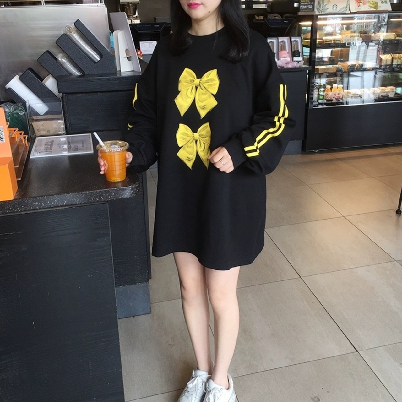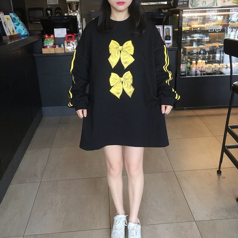 トレーナー ワンピース 黒 黄色 スウェット カジュアル