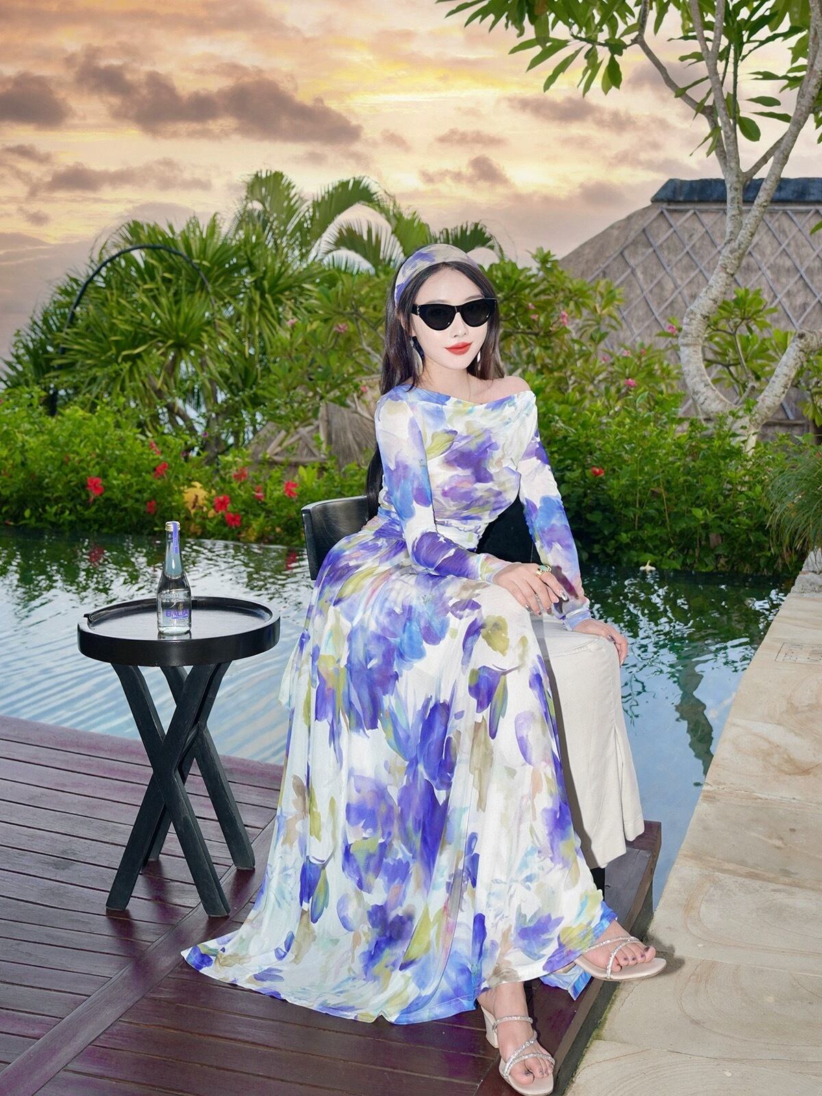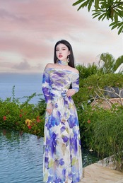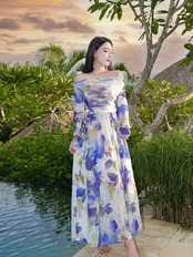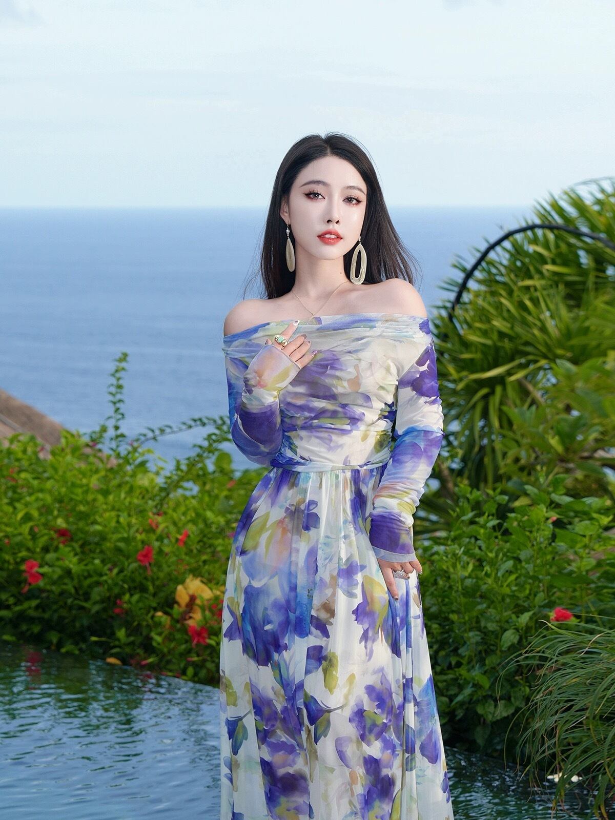 ブルー 花柄 フラワー エレガント XL ワンピース