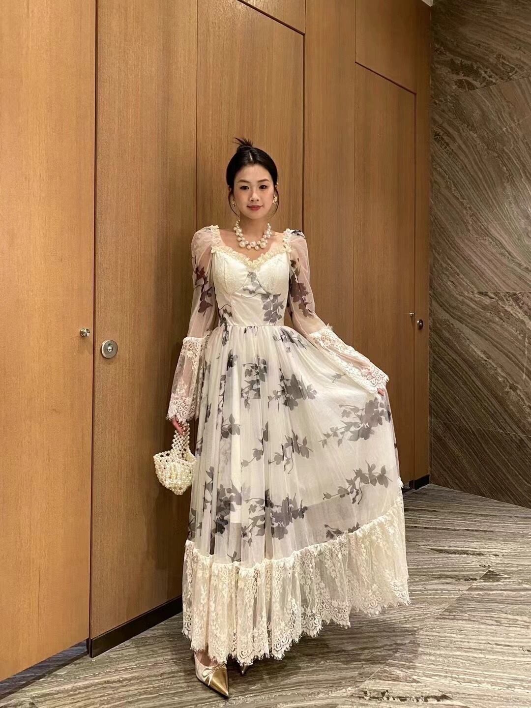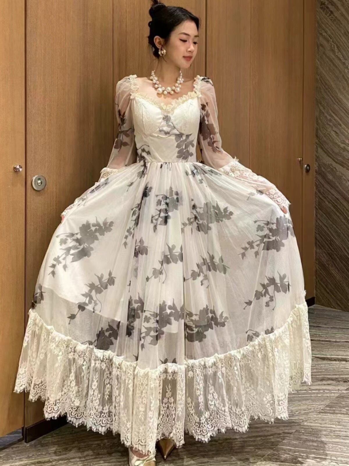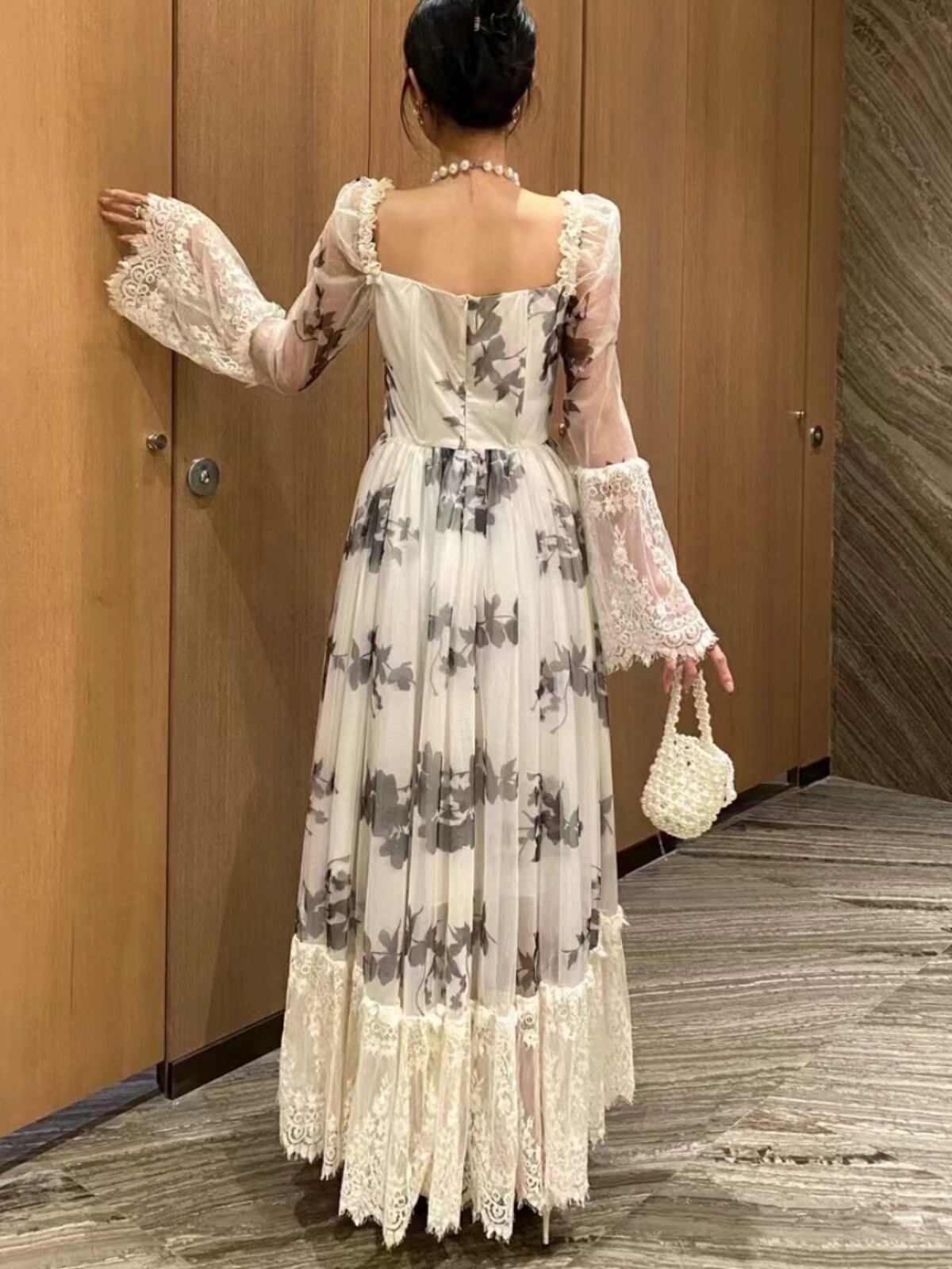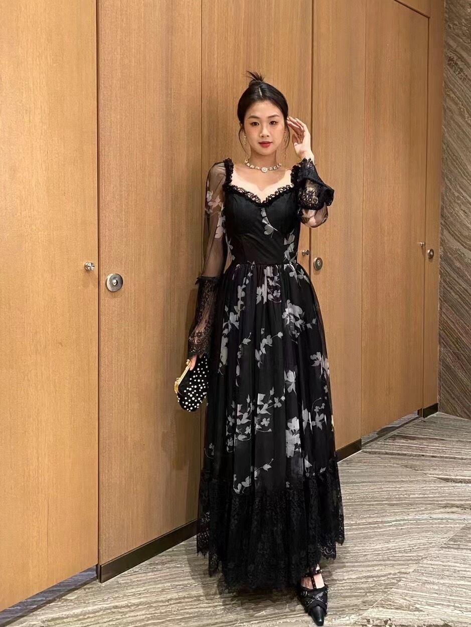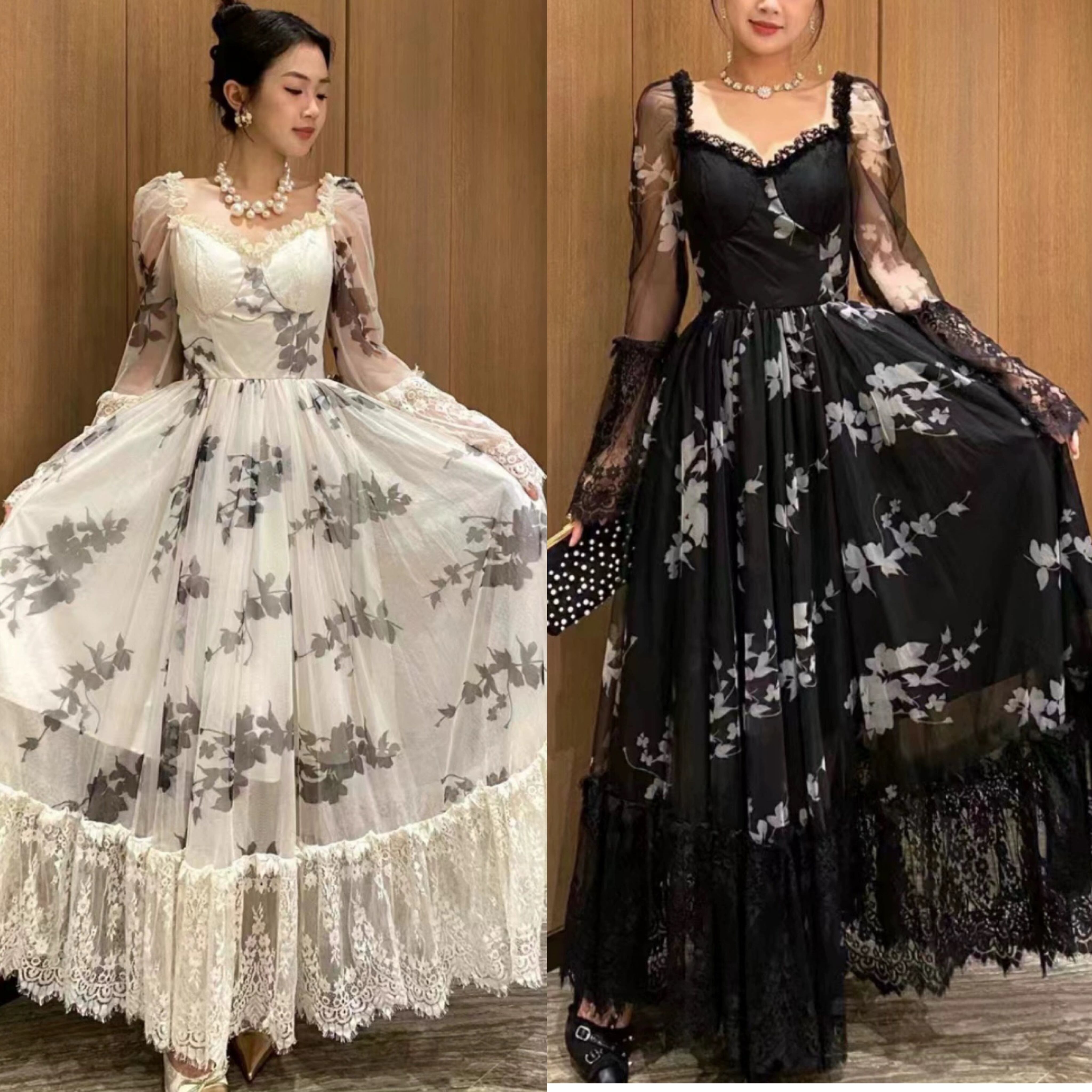 白 黒 花柄 フラワー XL エレガント ワンピース