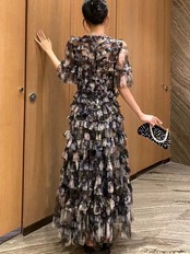 ピンク 水色 ブラウス 黒 花柄 フラワー XL
