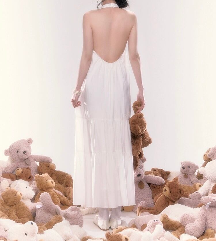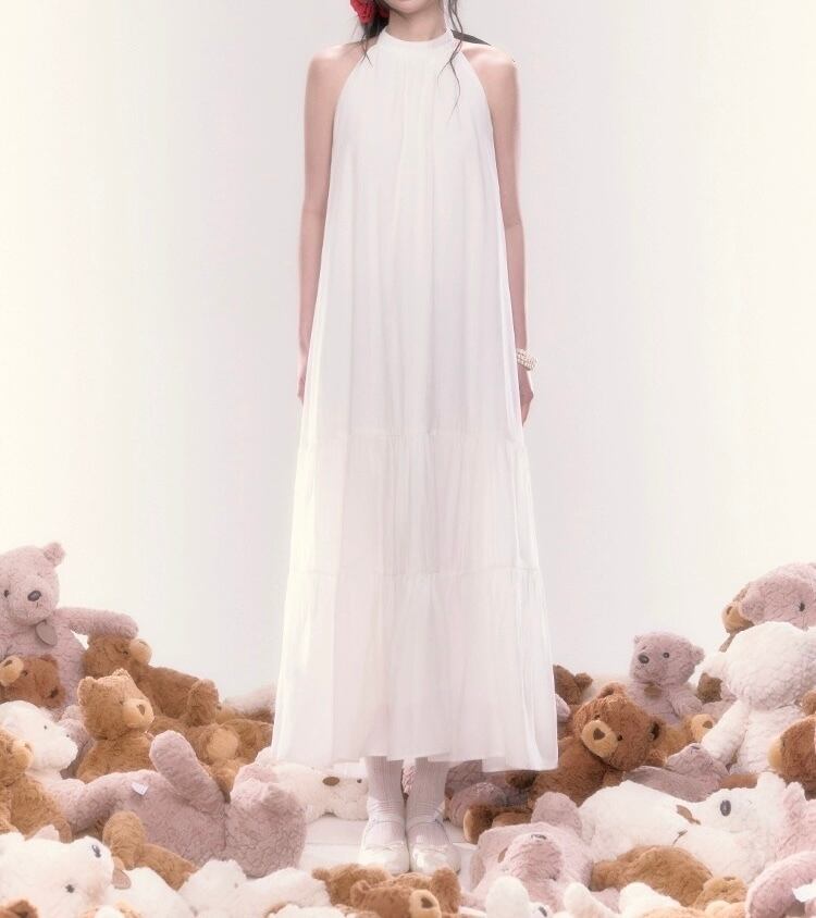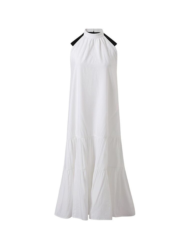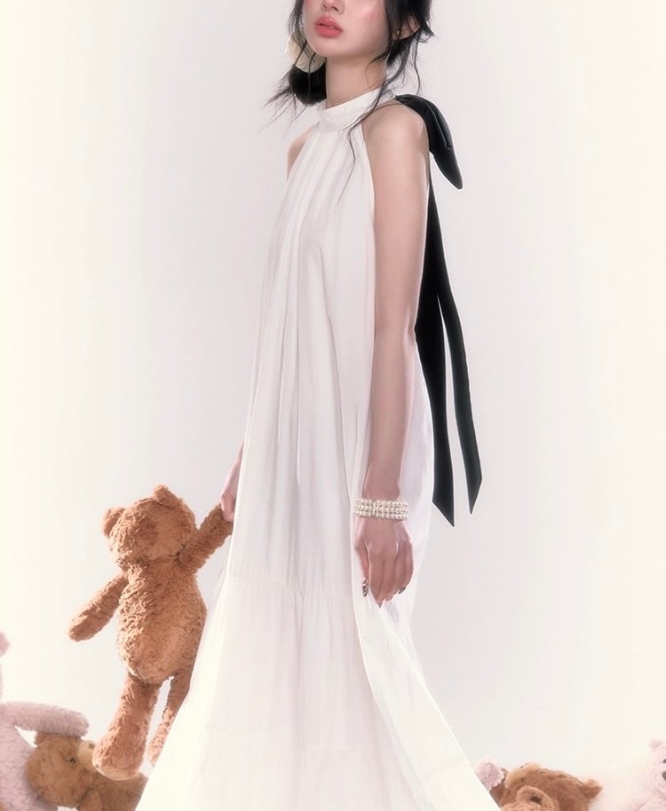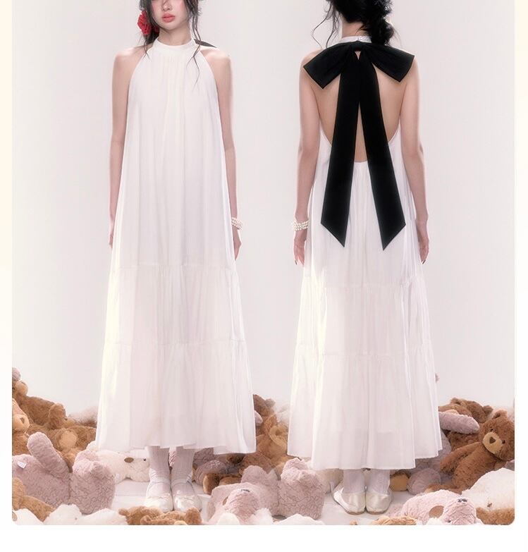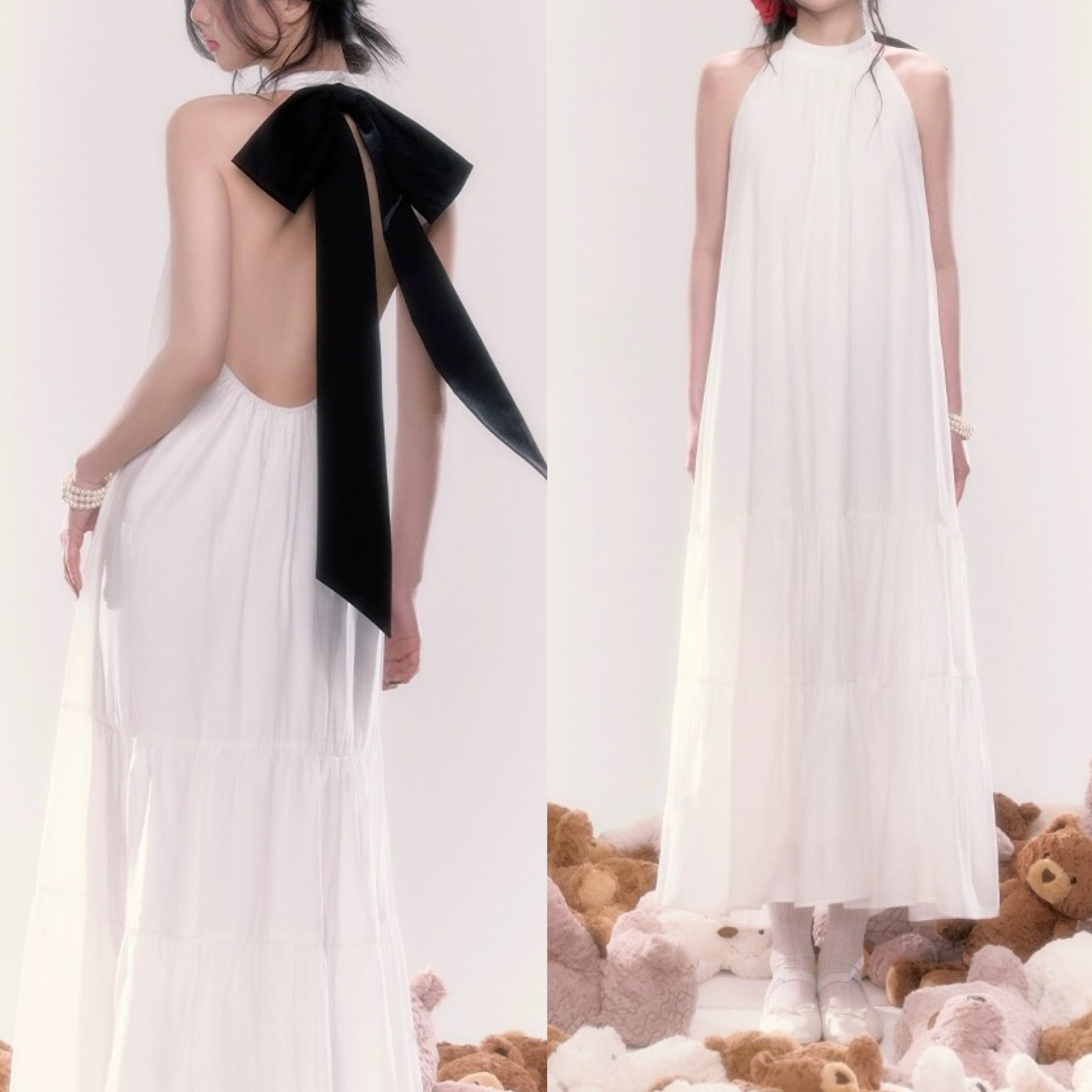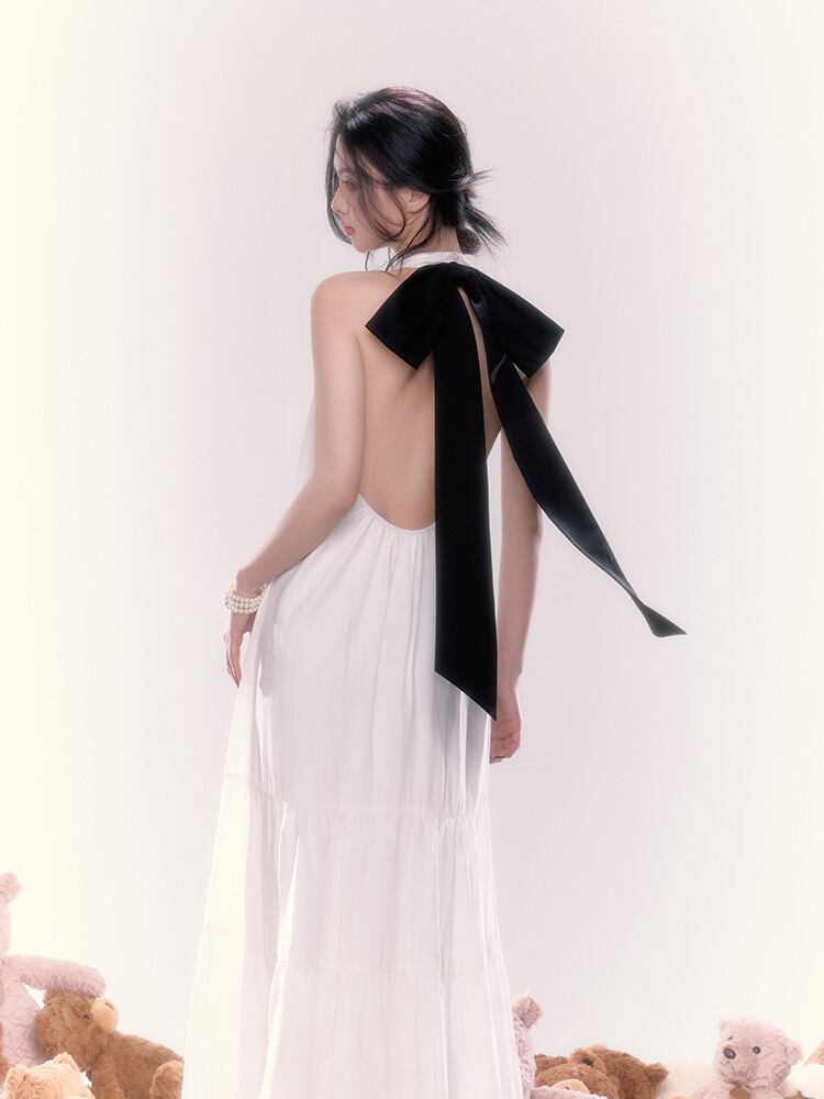 白 黒 リボン マキシ ゆったり ドレス ワンピース