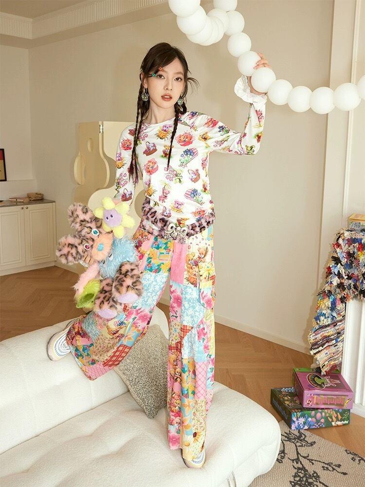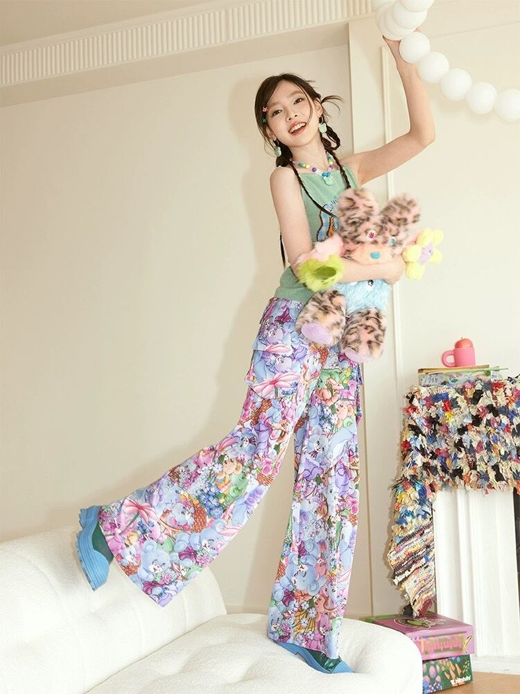 ボトムス くまさん 紫 水色 パンツ ズボン