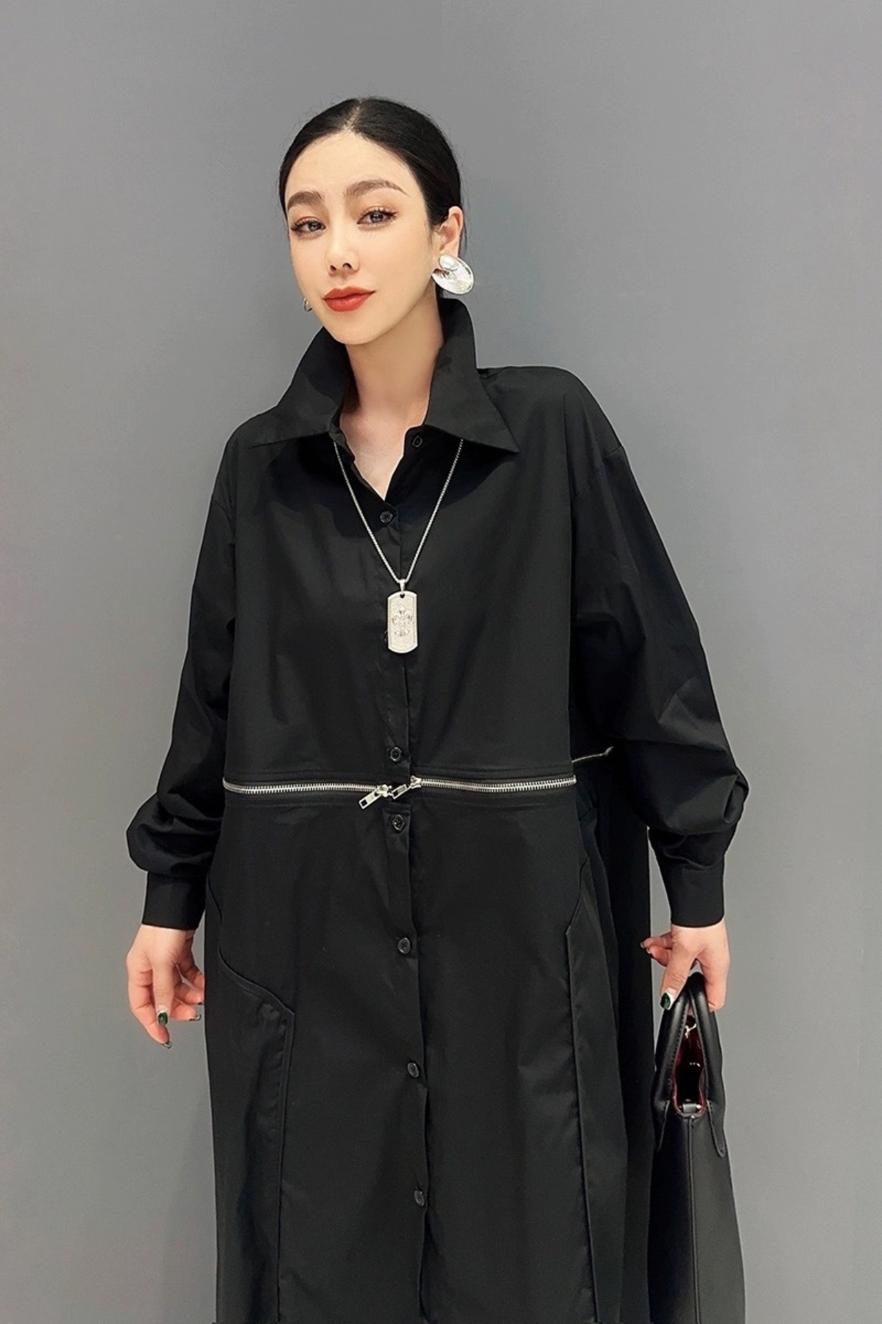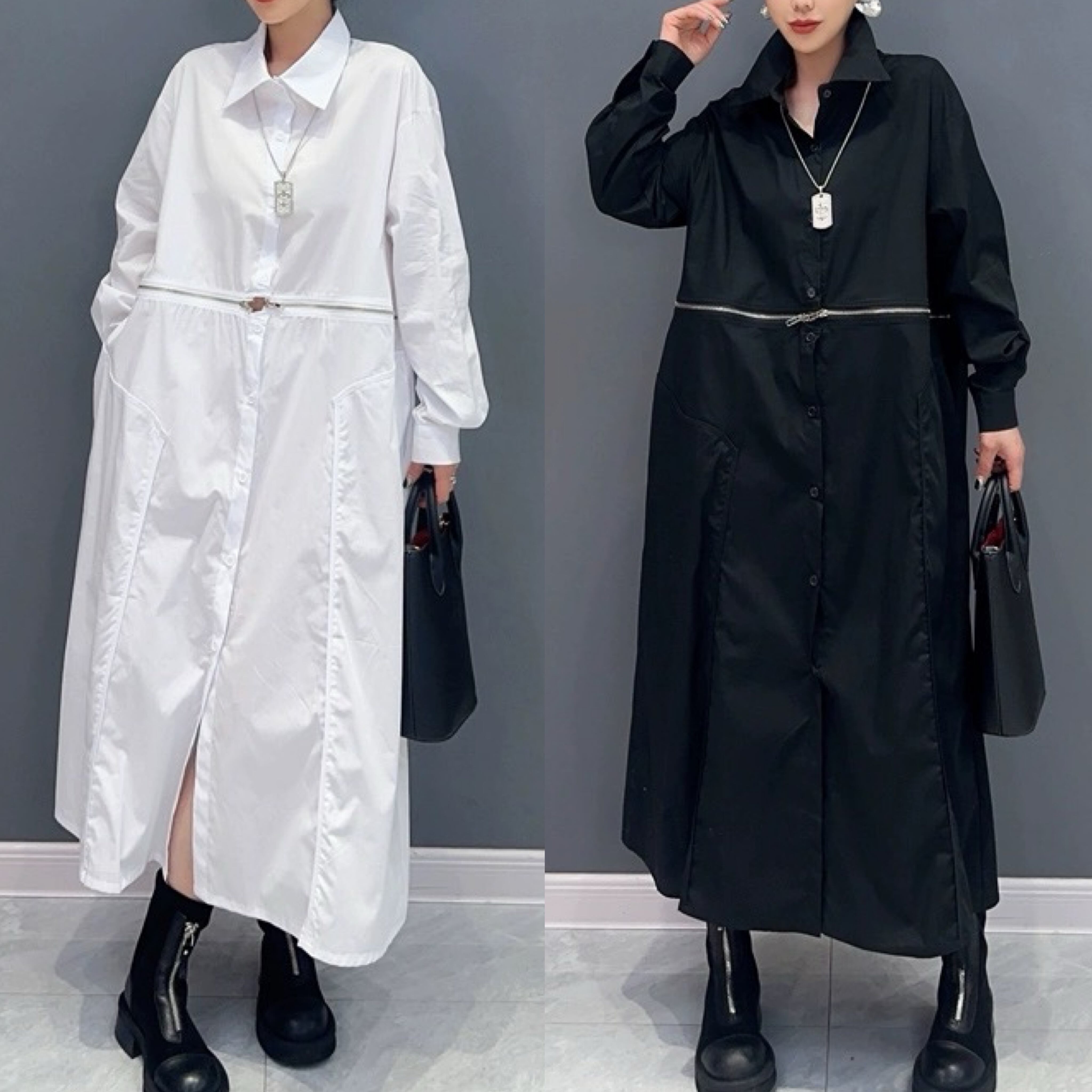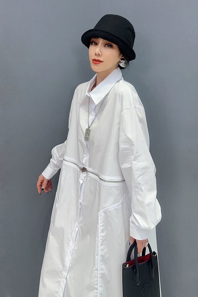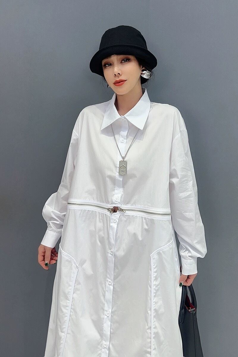 白 黒 シャツ ワンピース モード チャック