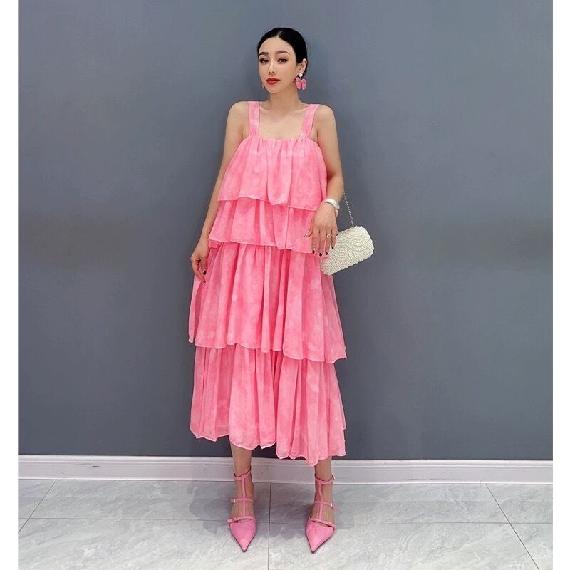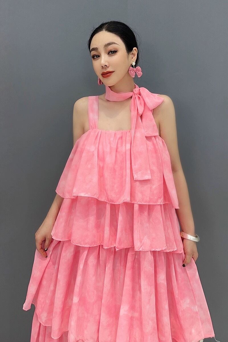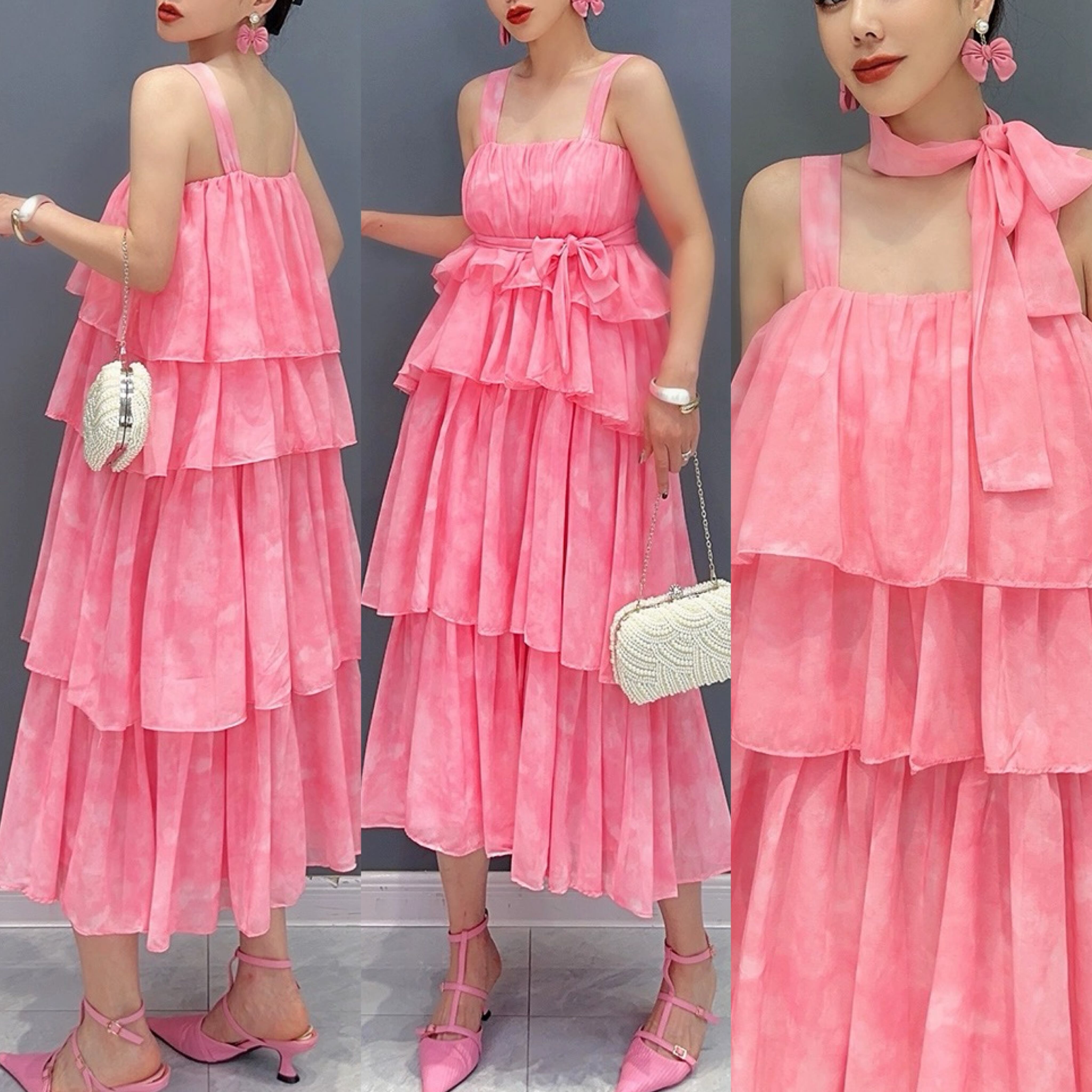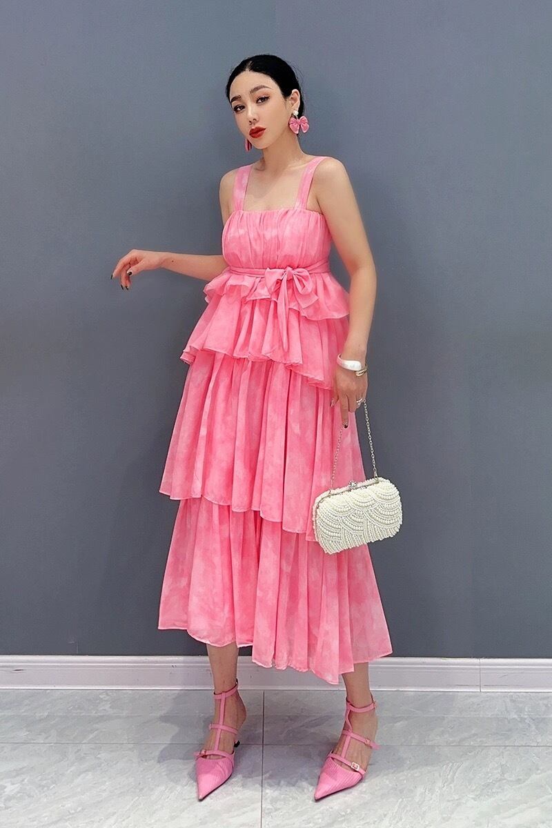 ピンク フリル エレガント ワンピース キャミソール