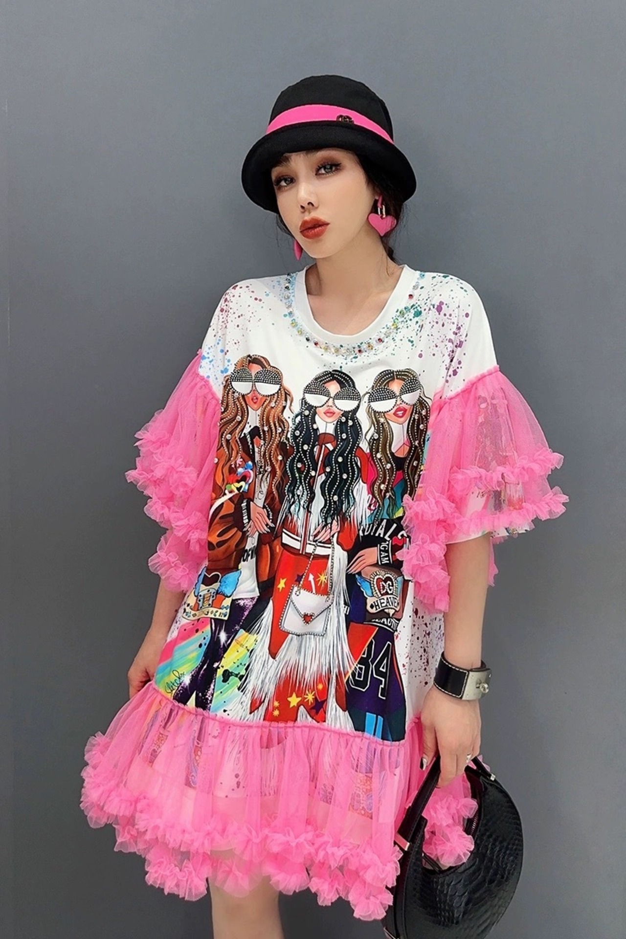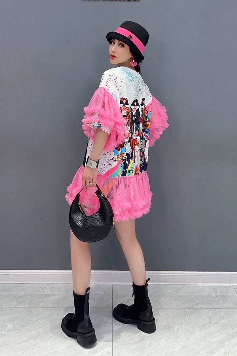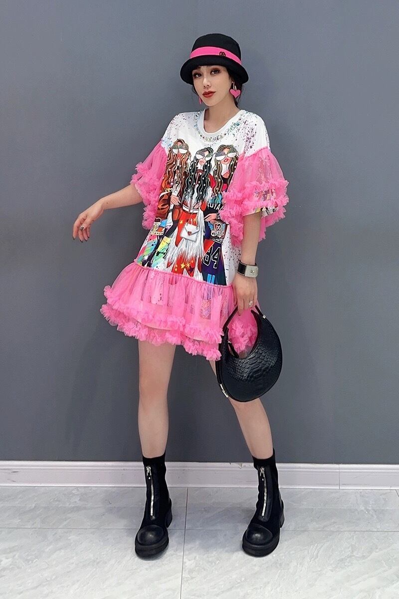 白 ピンク オーバーサイズ カジュアル ワンピース