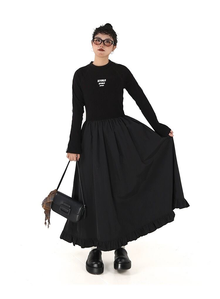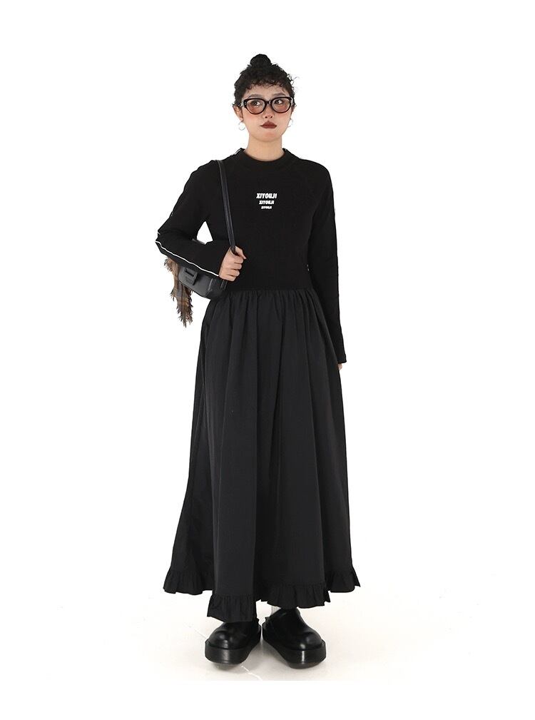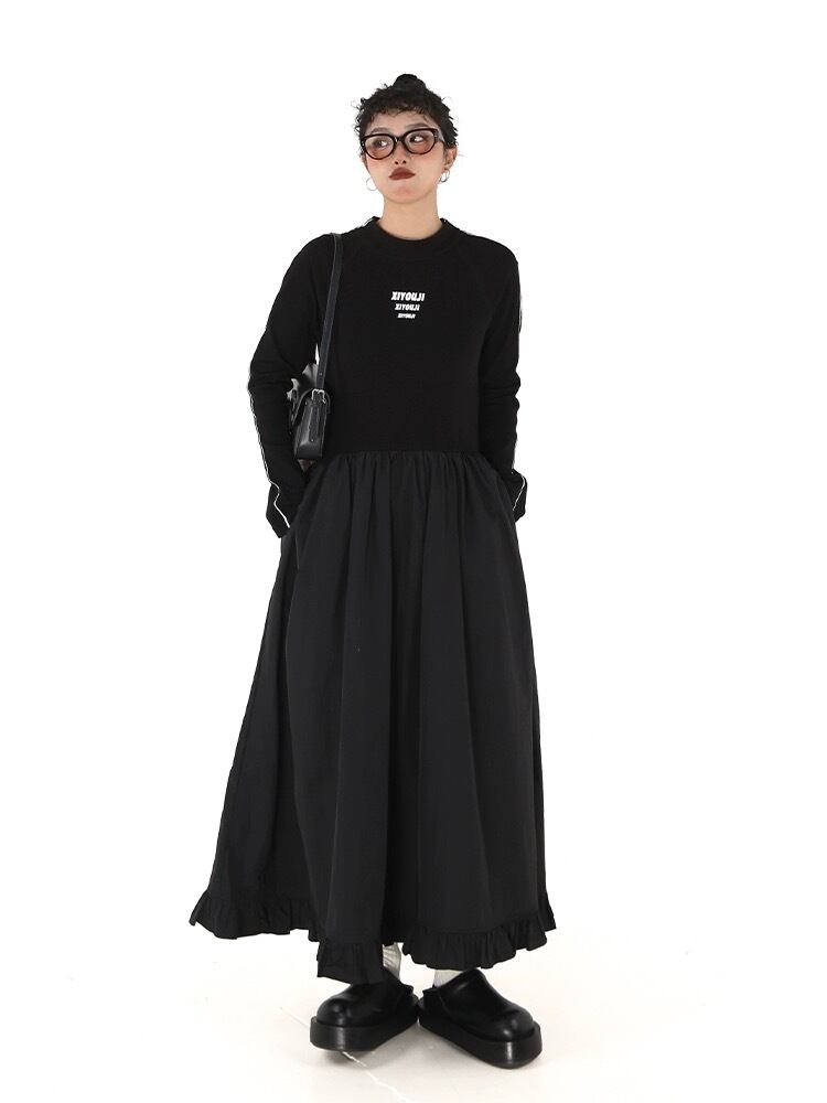 黒 ブラック ゆったり カサジュア スウェット ワンピース