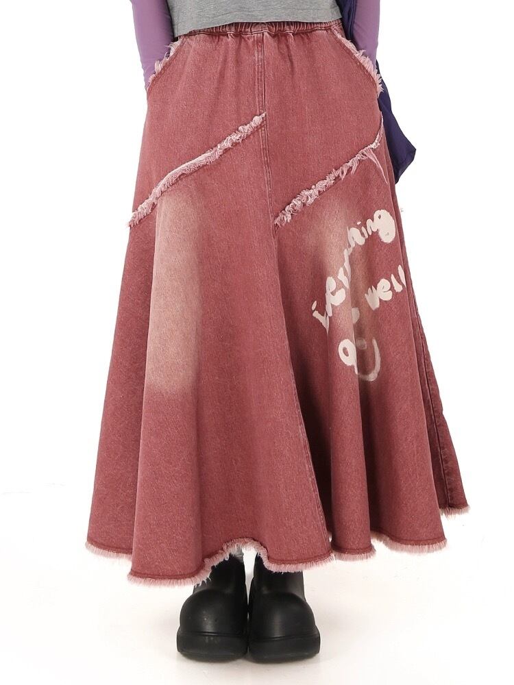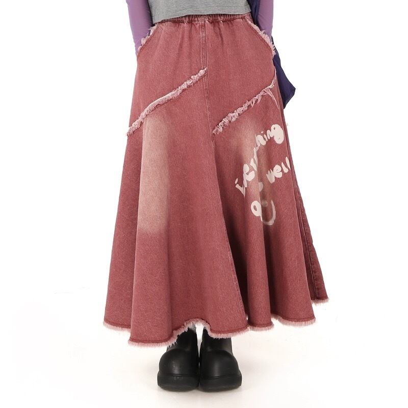 赤 スウェット スカート カジュアル XL マキシ ボトムス