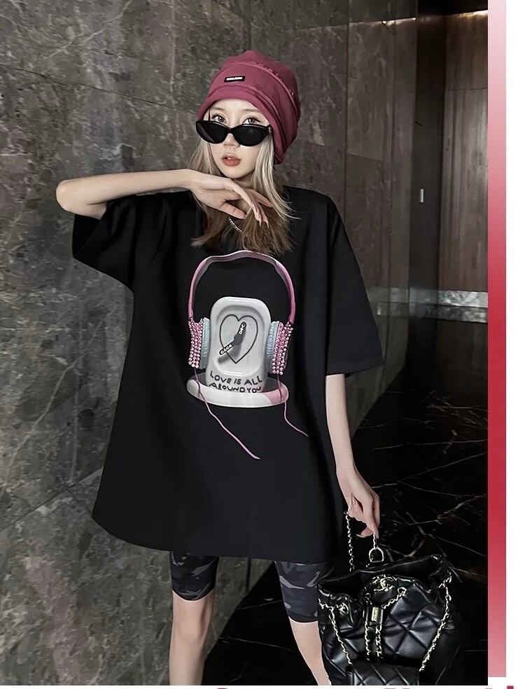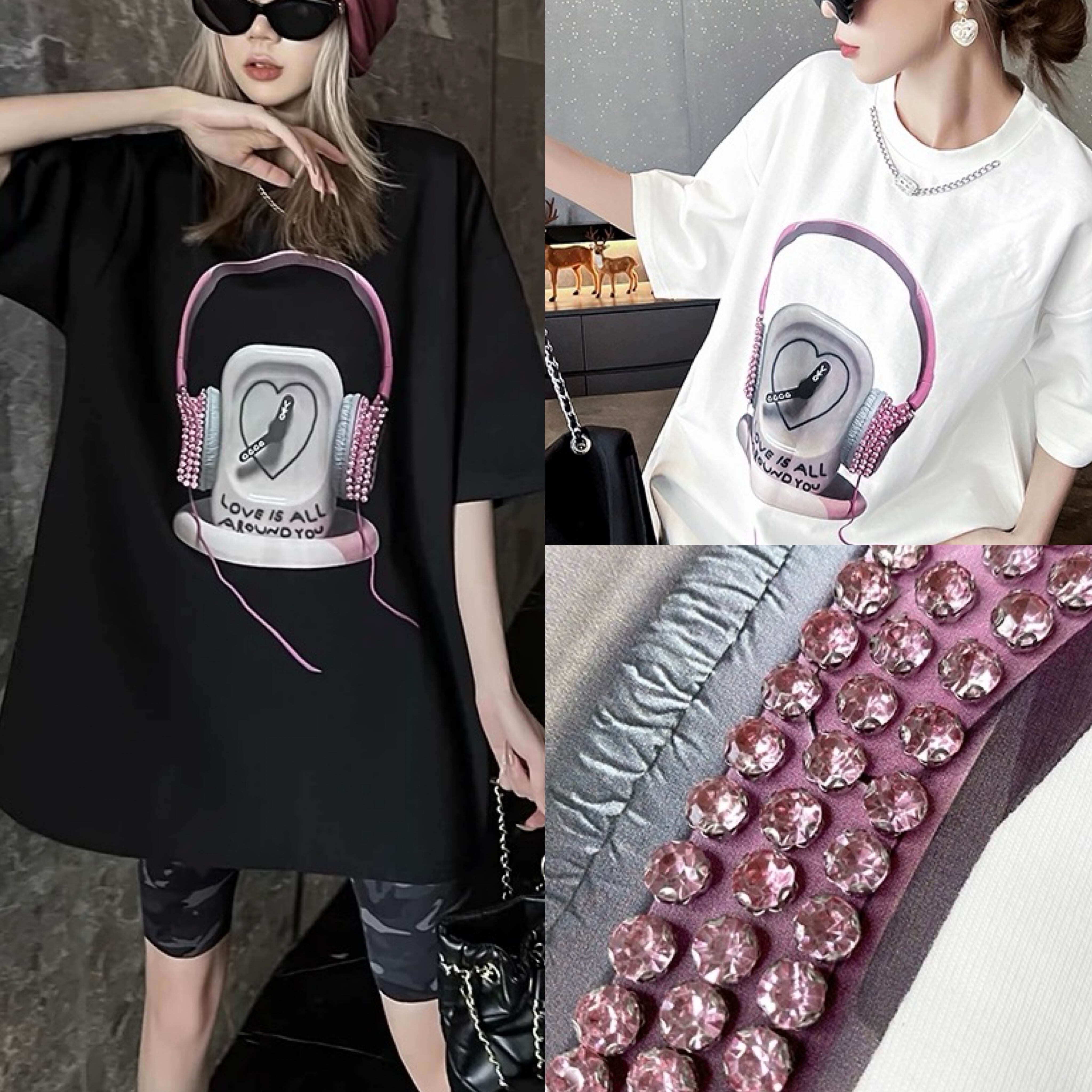 白 ラインストーン キラキラ ピンク トップス カジュアル