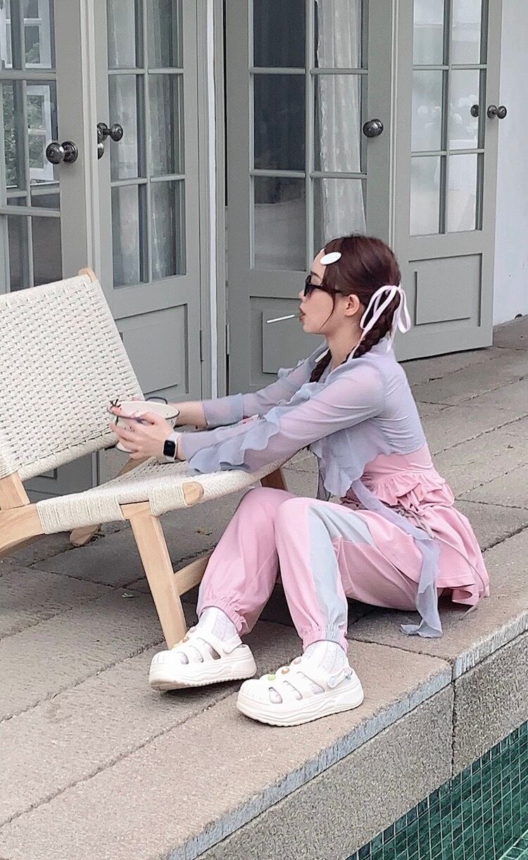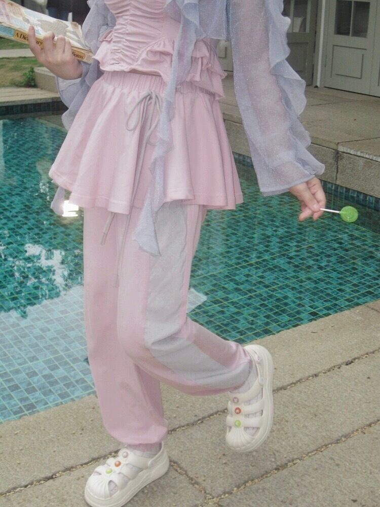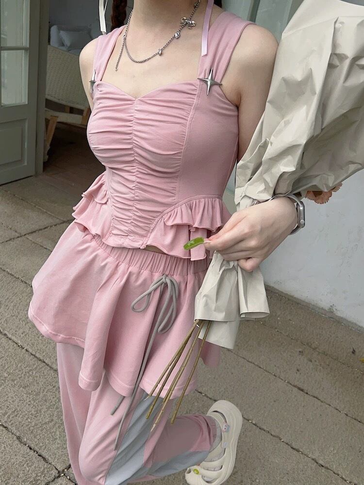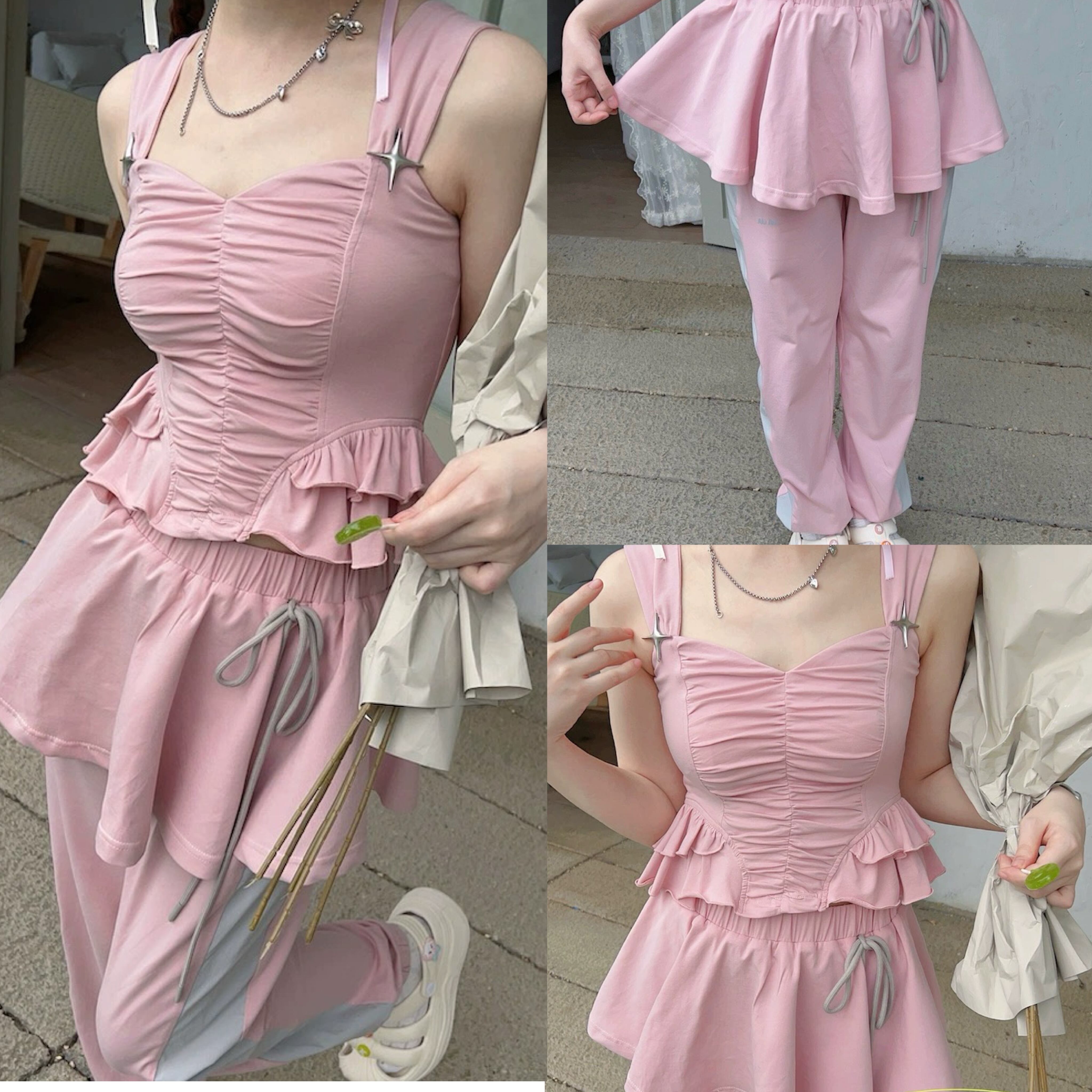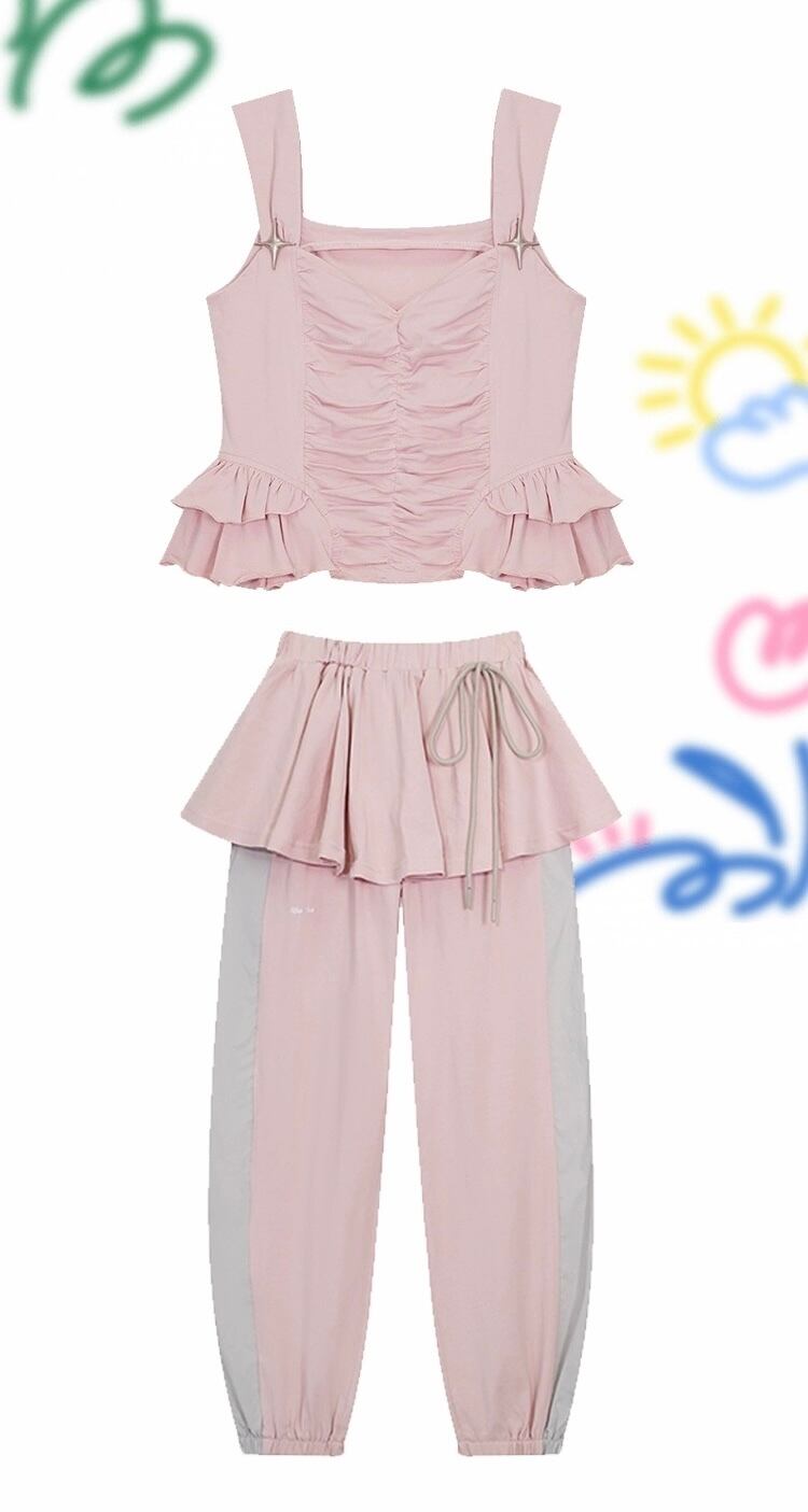 【セットアップ】ピンク キャミソール パンツ スウェット ルームウェア リボン ジム レッスン