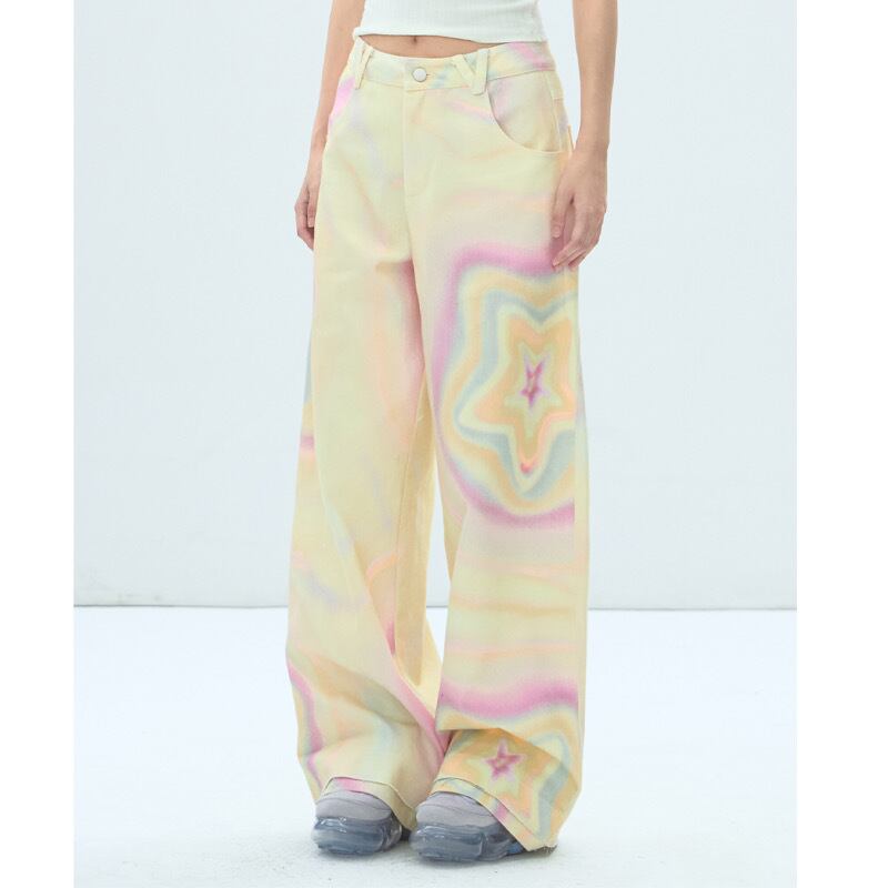 黄色 星 グラデーション スウェット カジュアル グレー ピンク パンツ XL