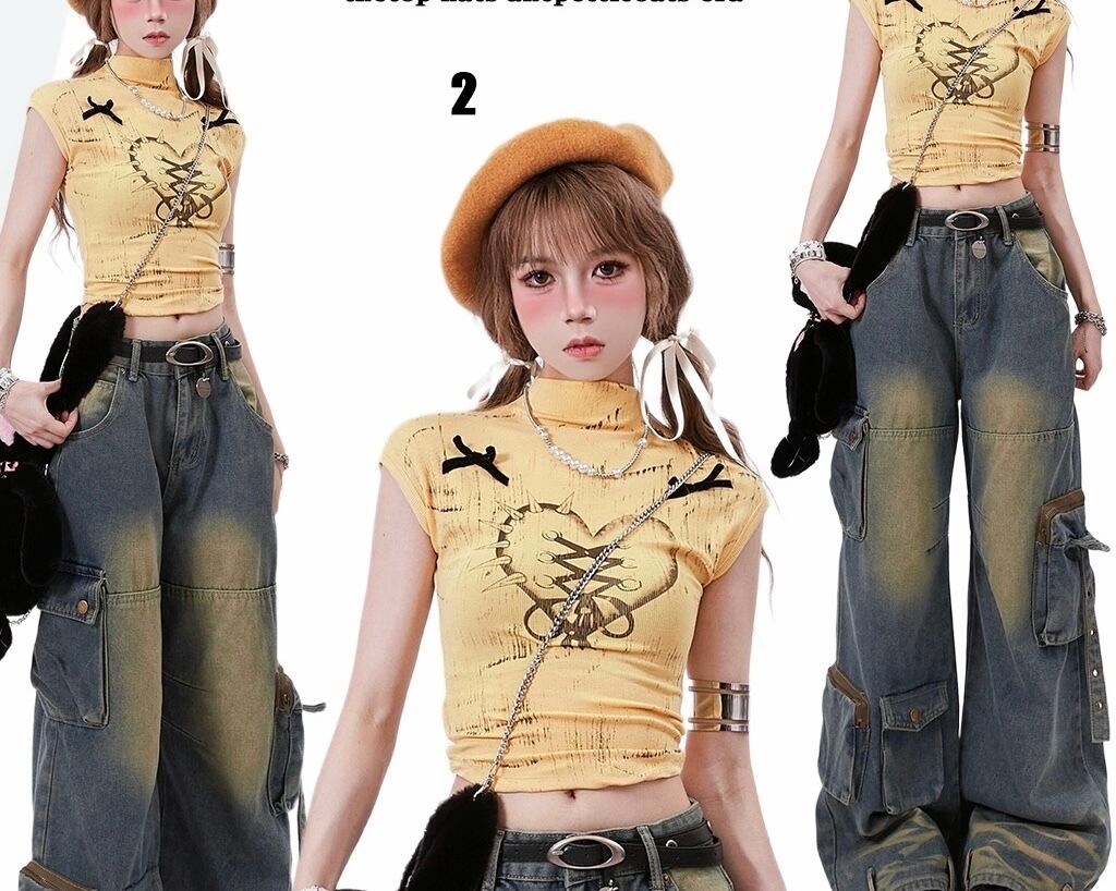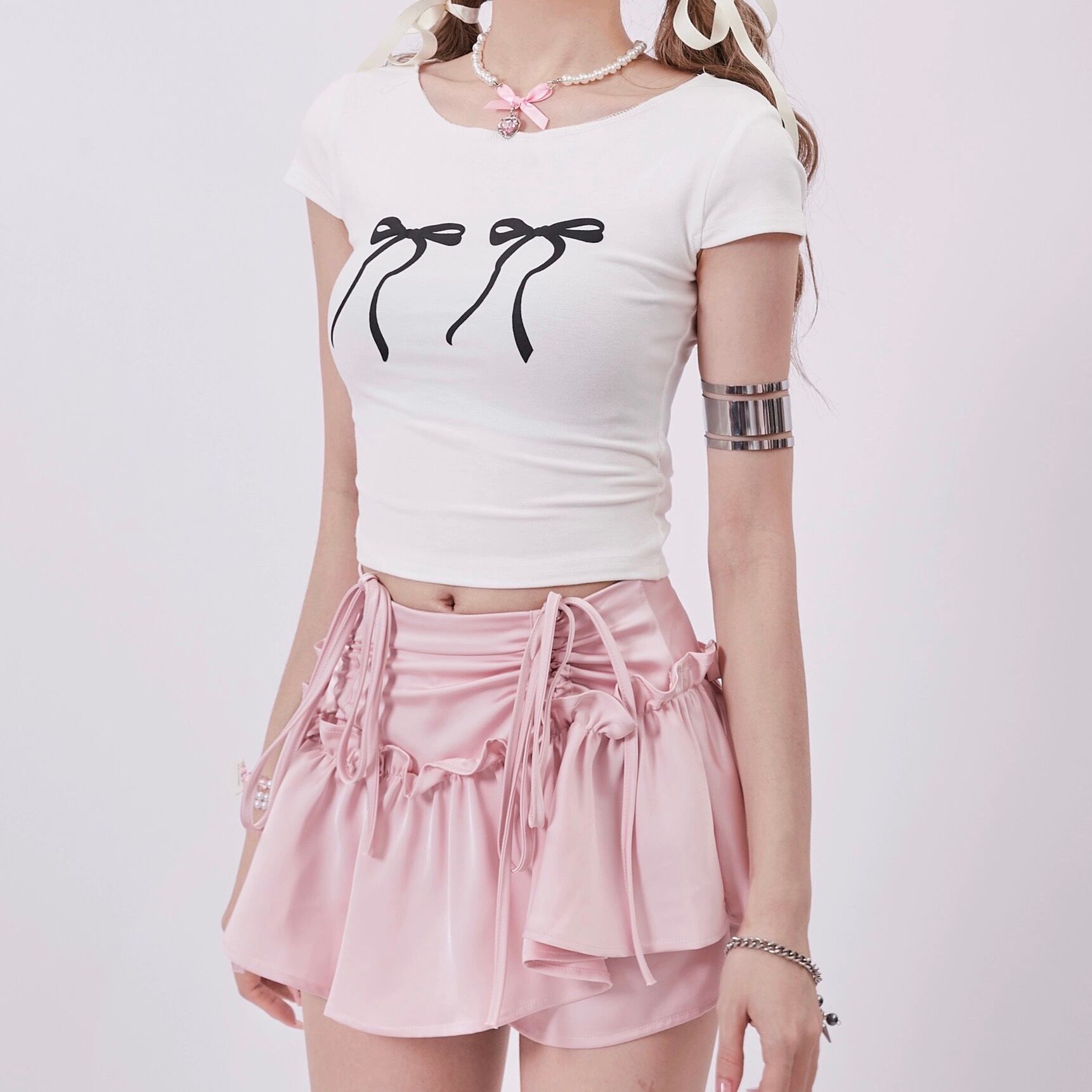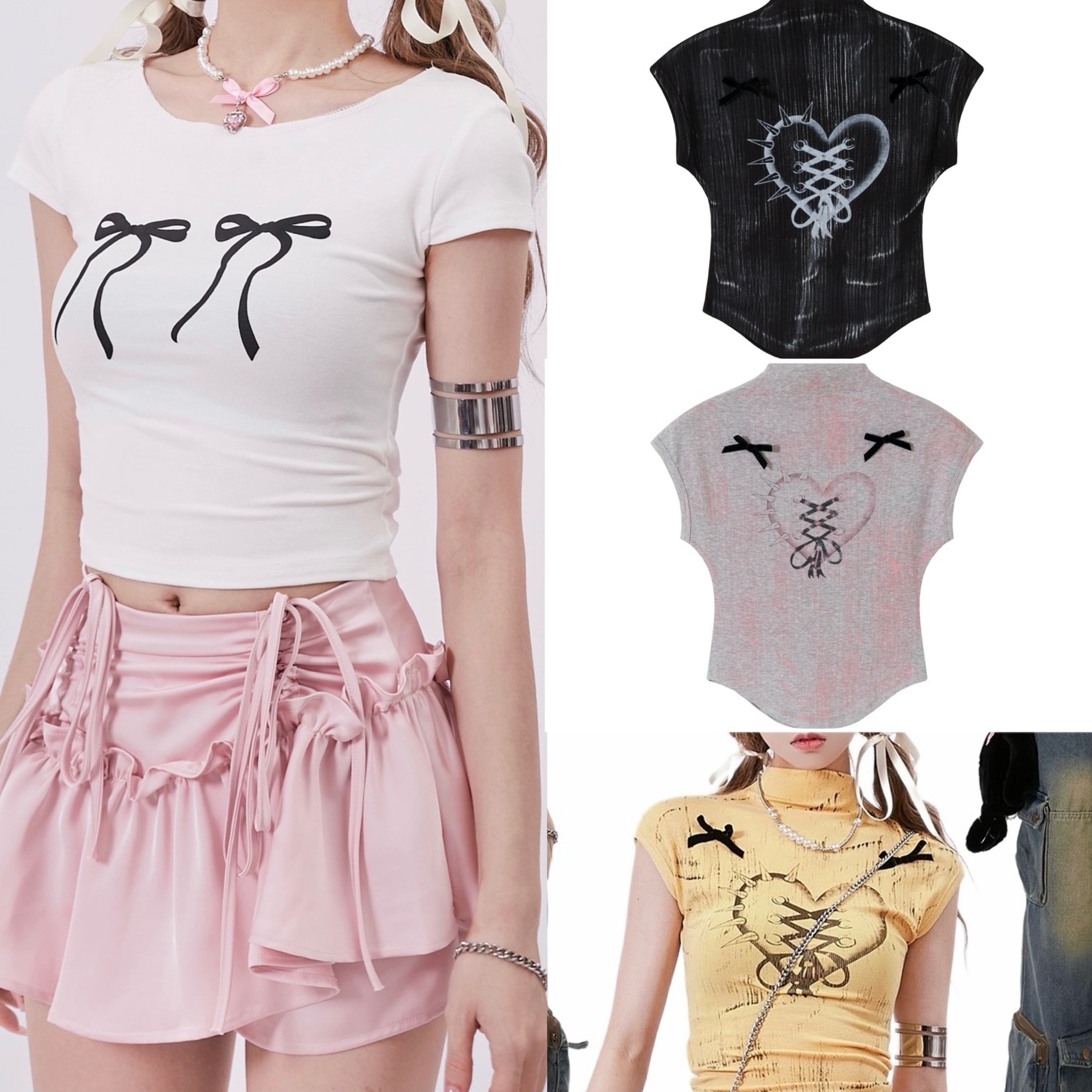 トップス カジュアル リボン 黄色 黒 ブラウス