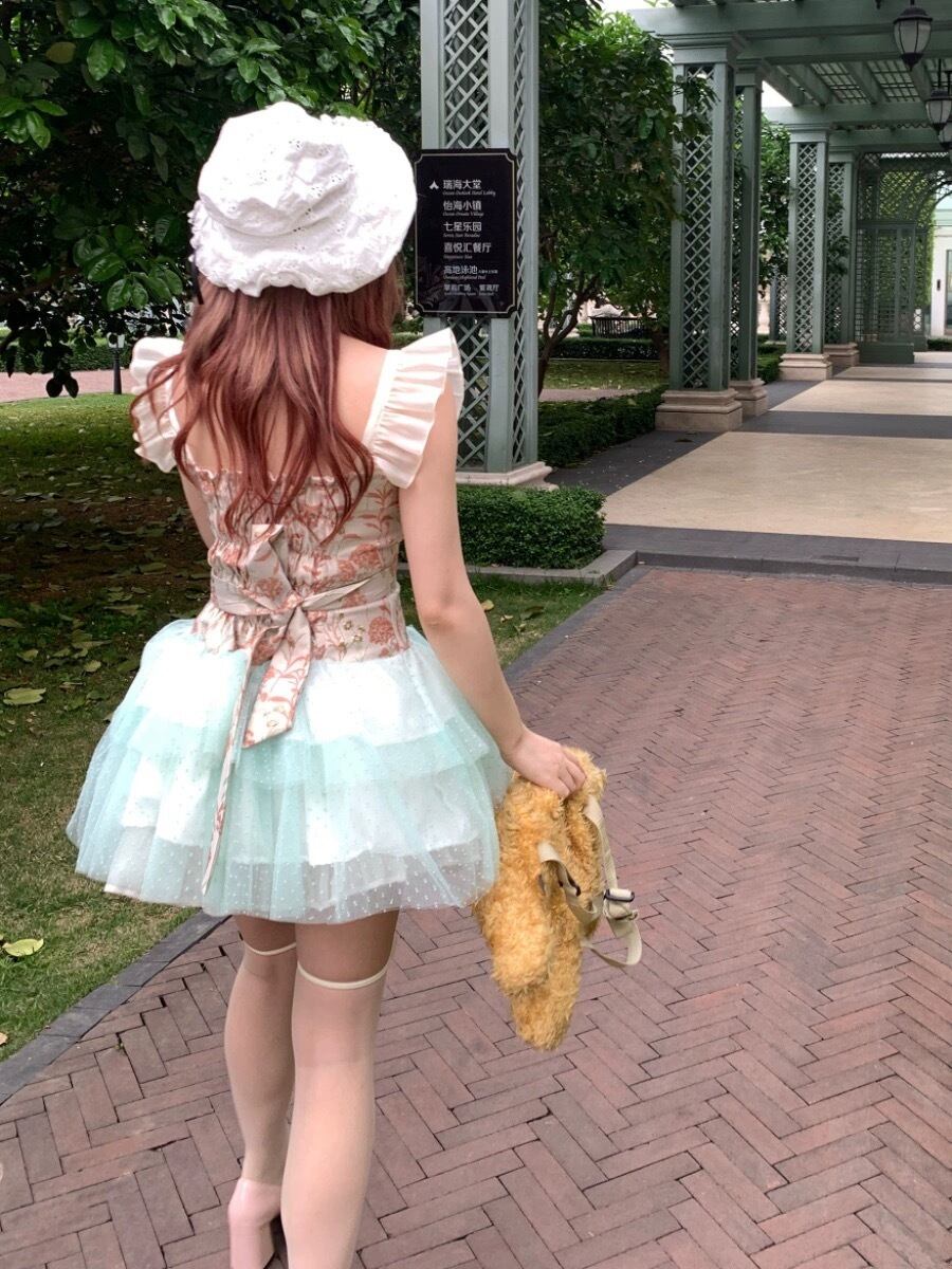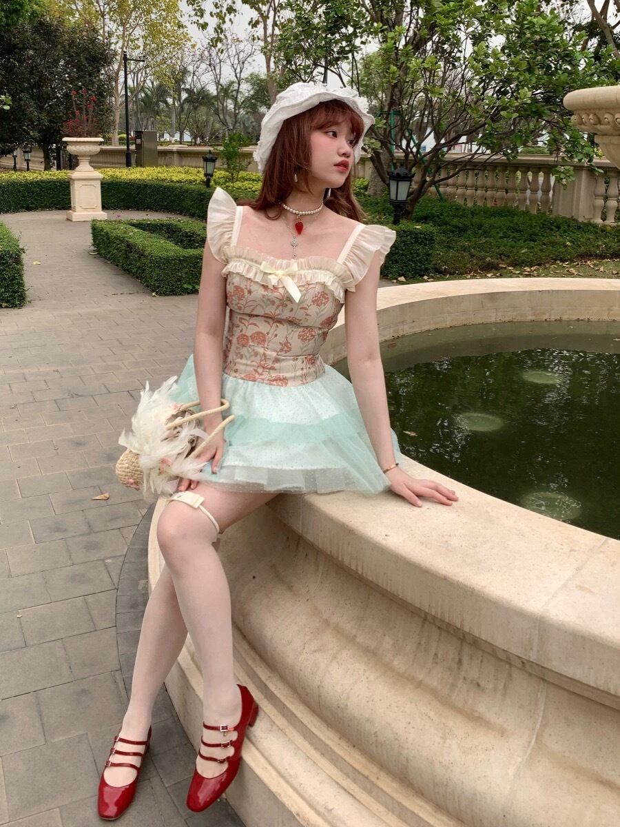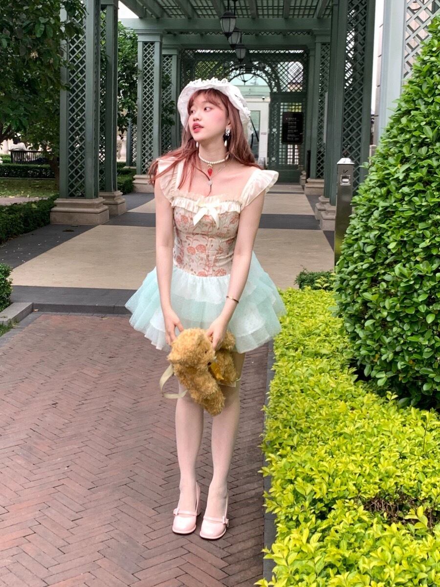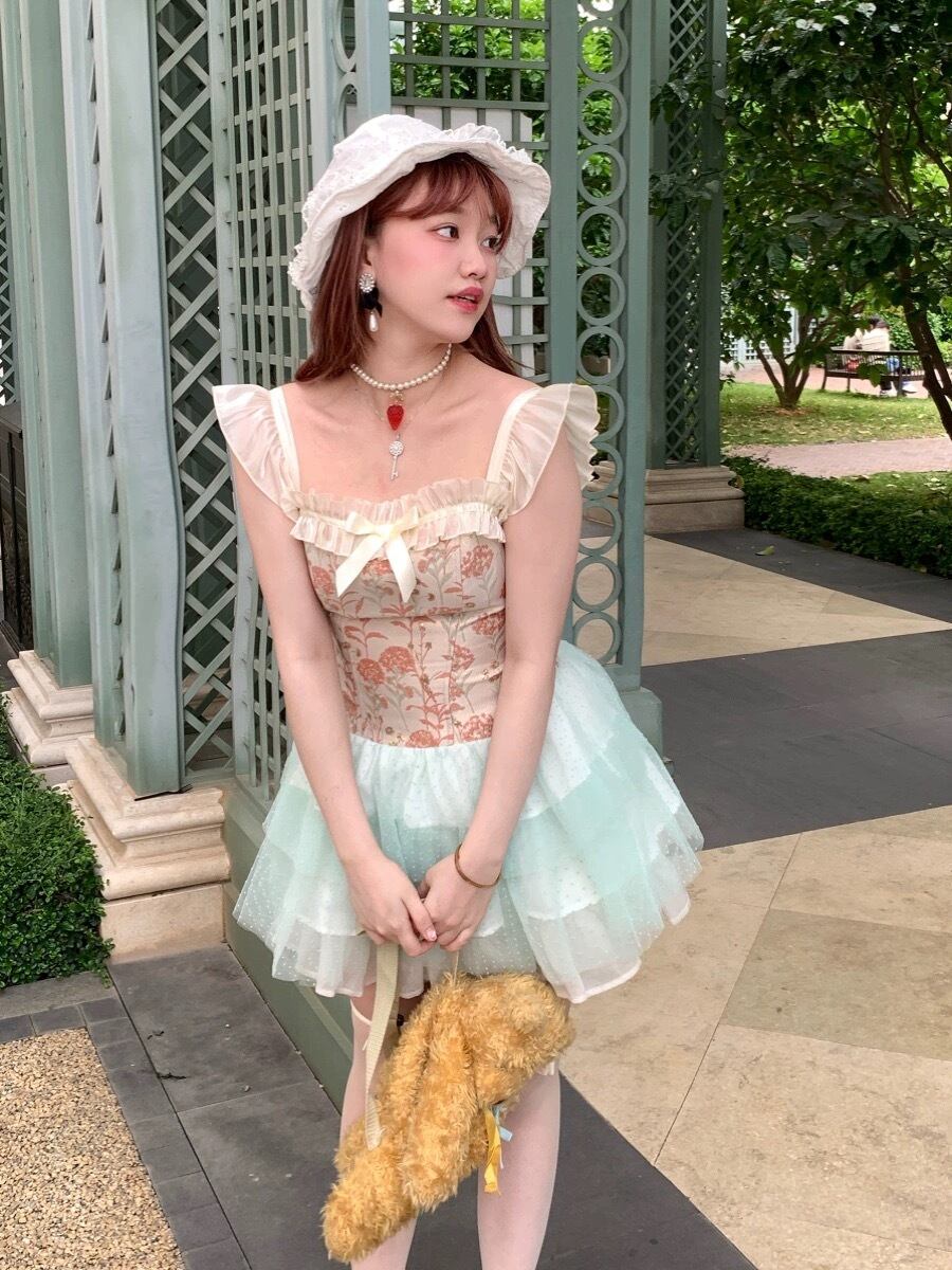 可愛い ガーリー フリル 水色 花柄 ワンピース