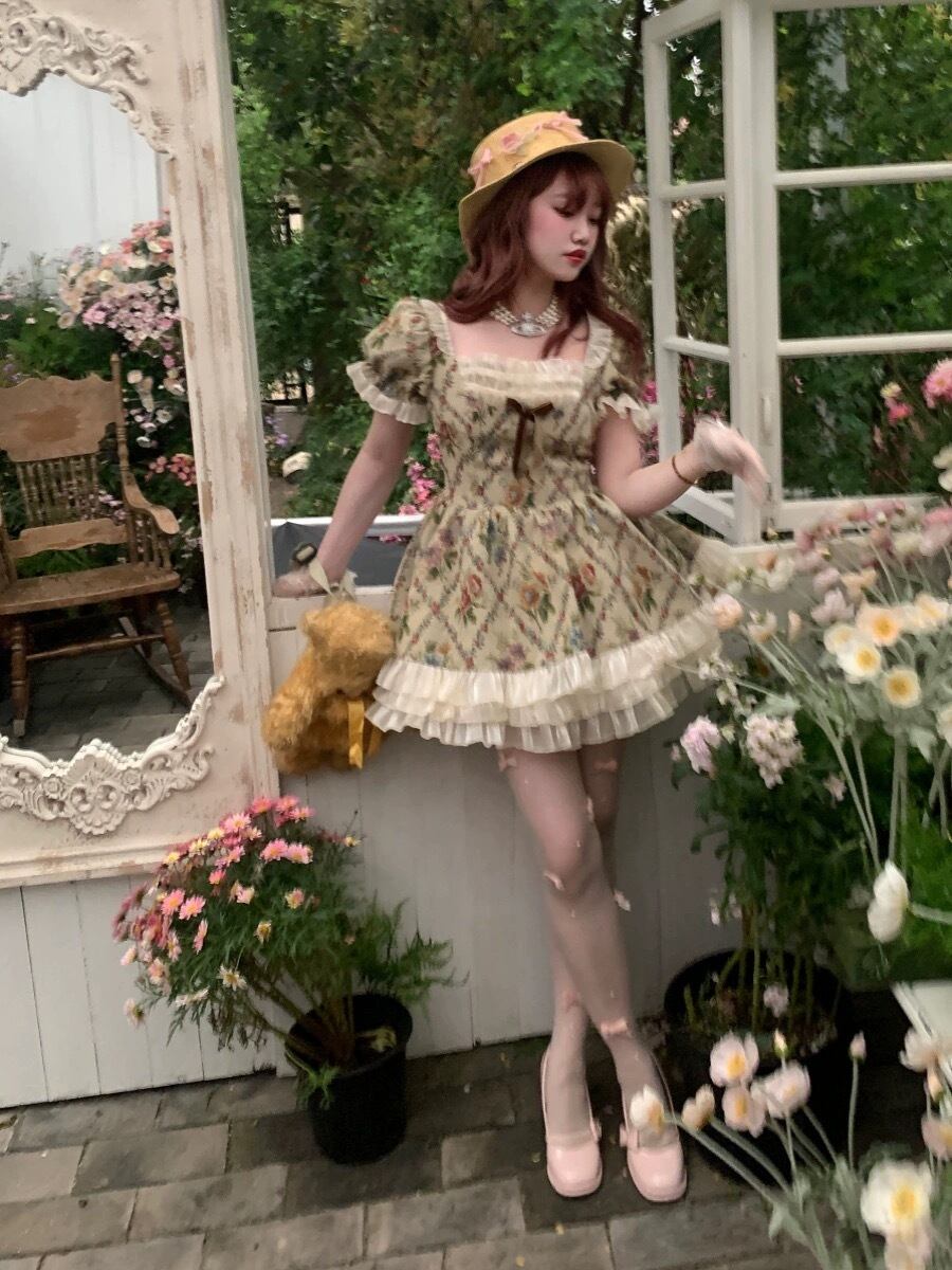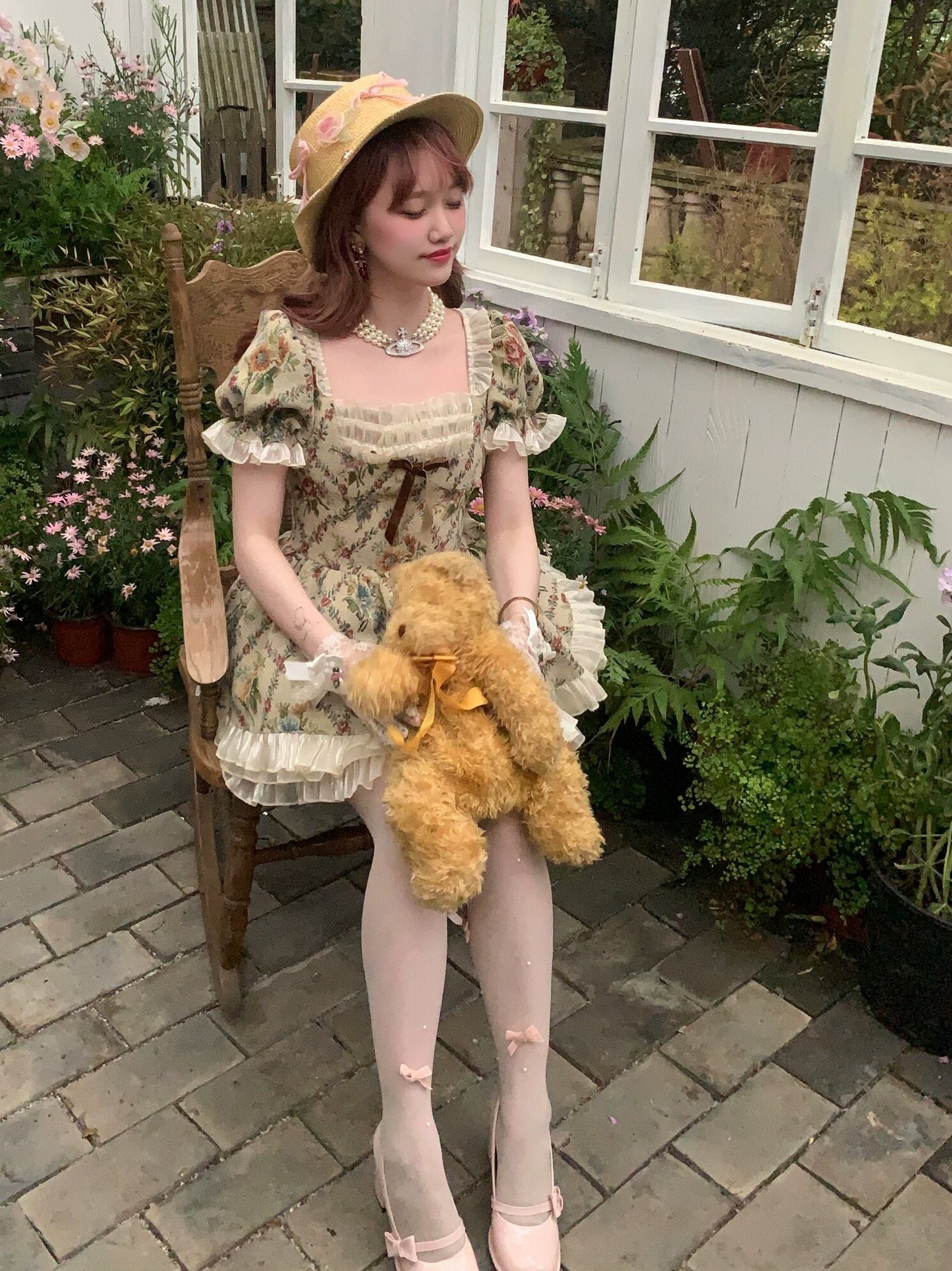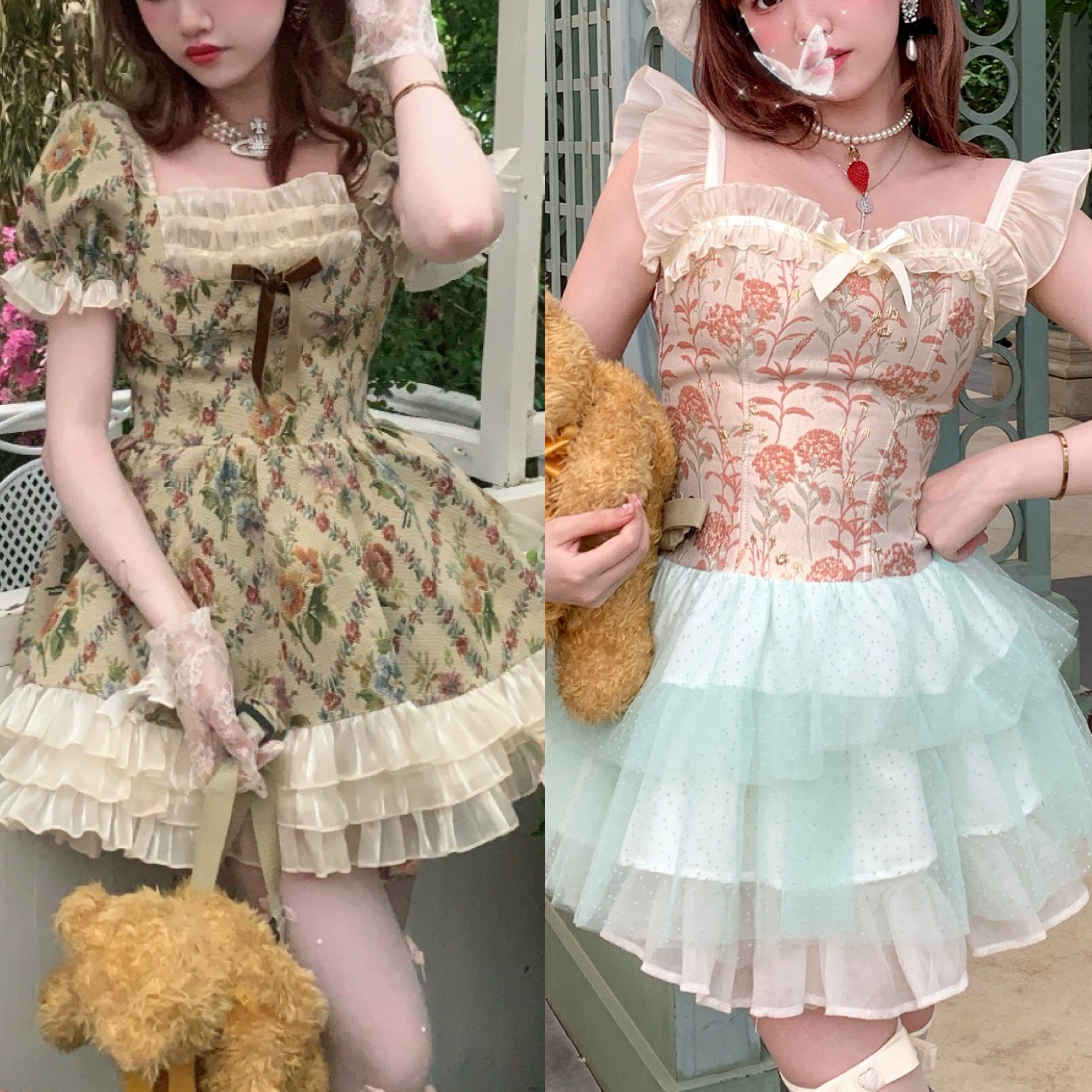 可愛い ガーリー フリル 水色 花柄 ワンピース