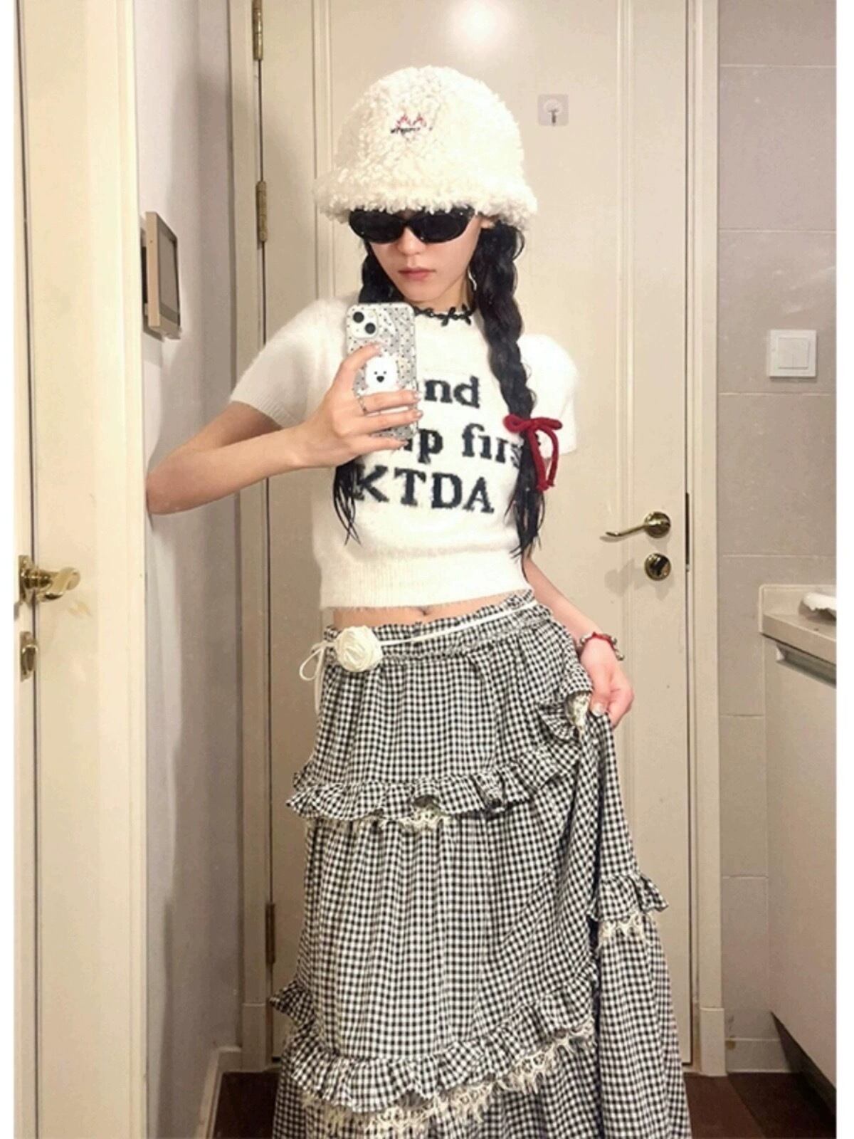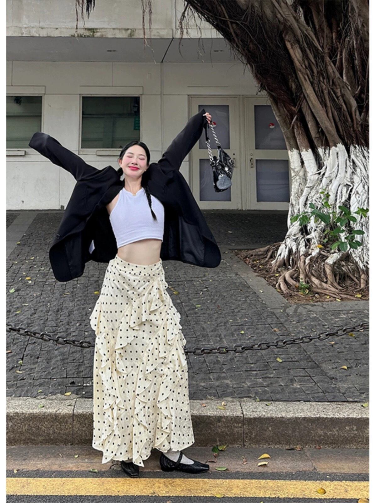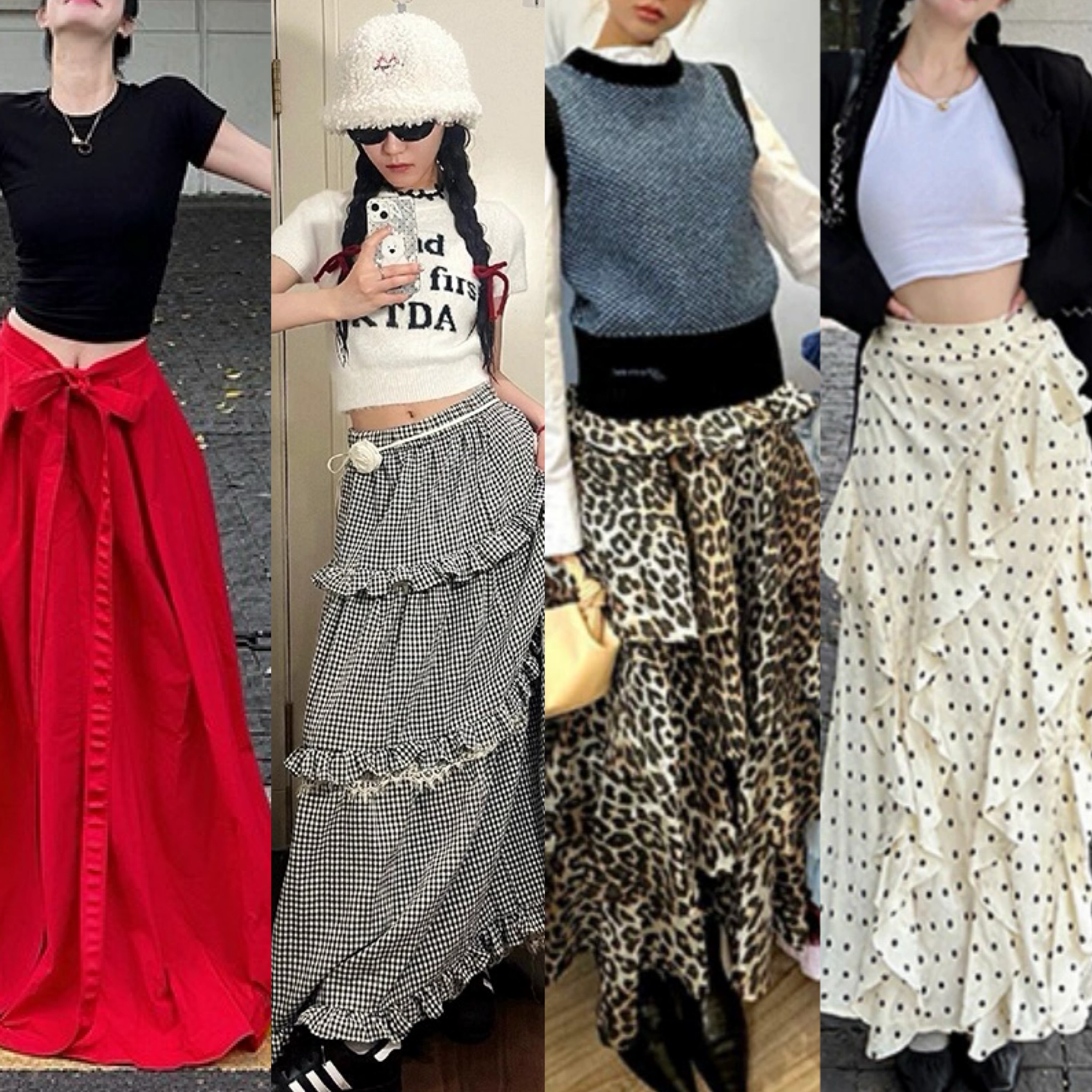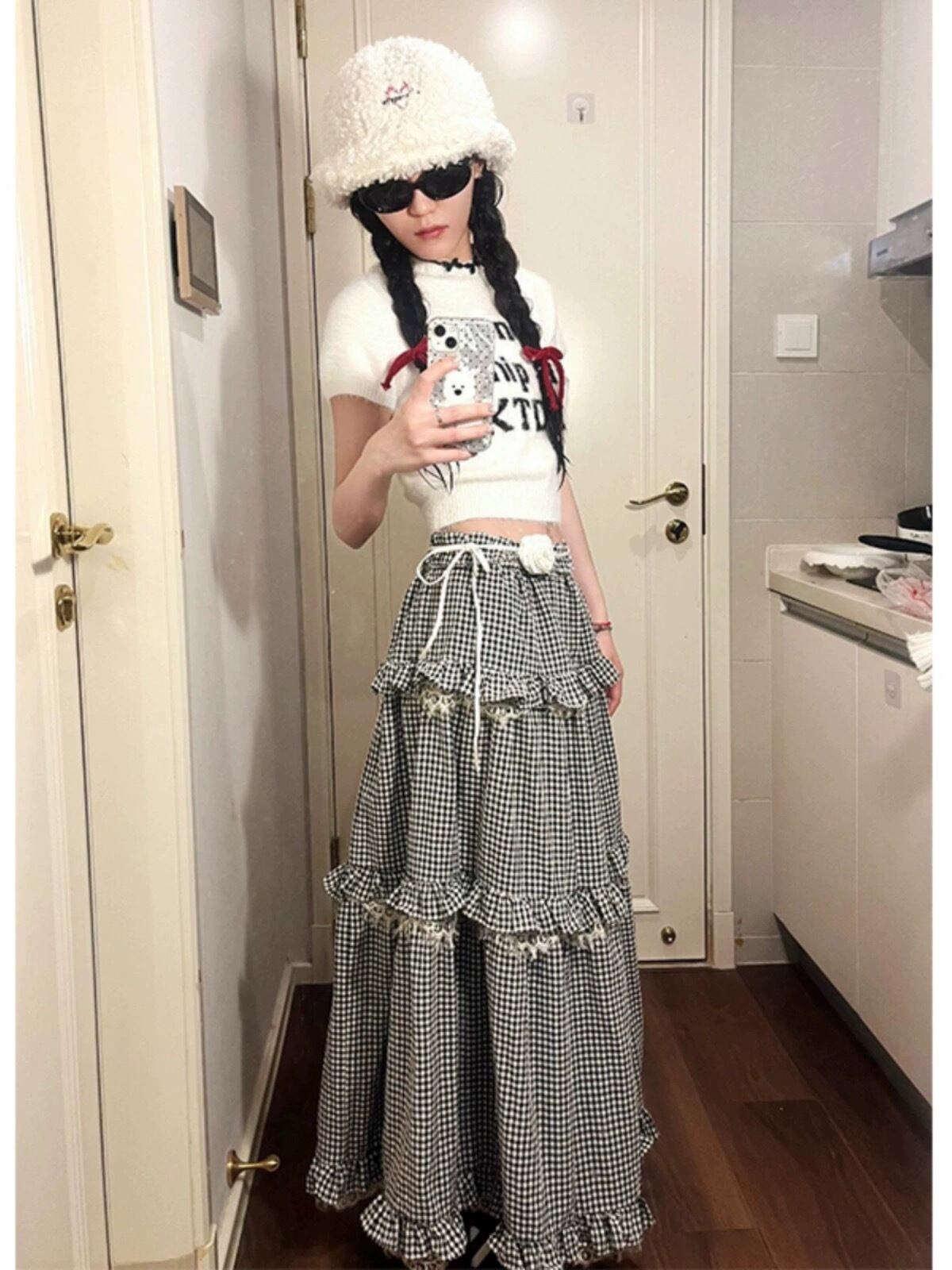 赤 水玉 ドット 白 ボトムス スカート ガーリー チェック