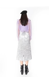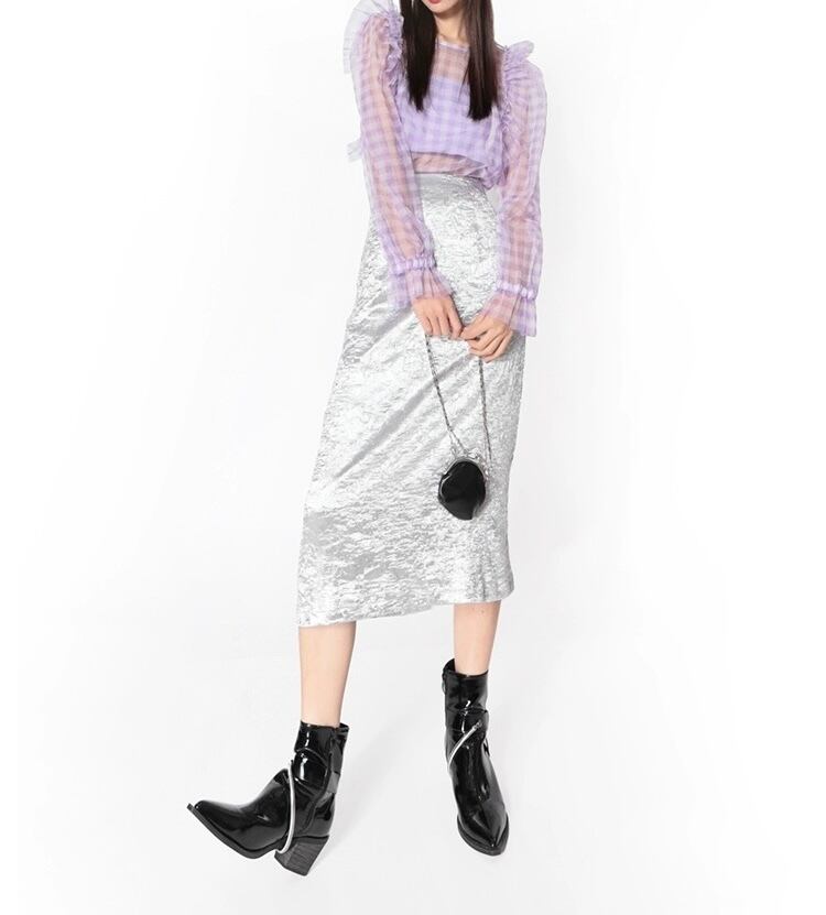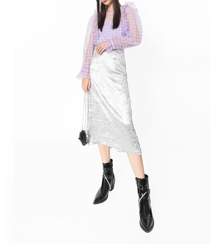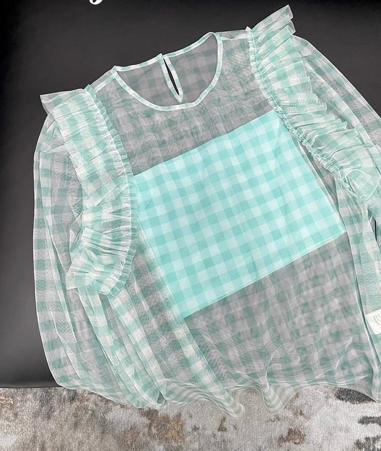 紫 緑 水色 ブラウス チェック カジュアル ガーリー