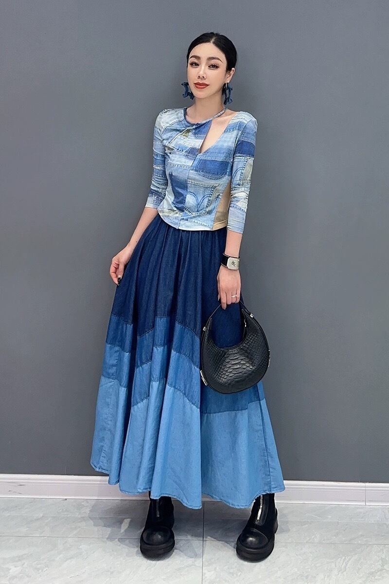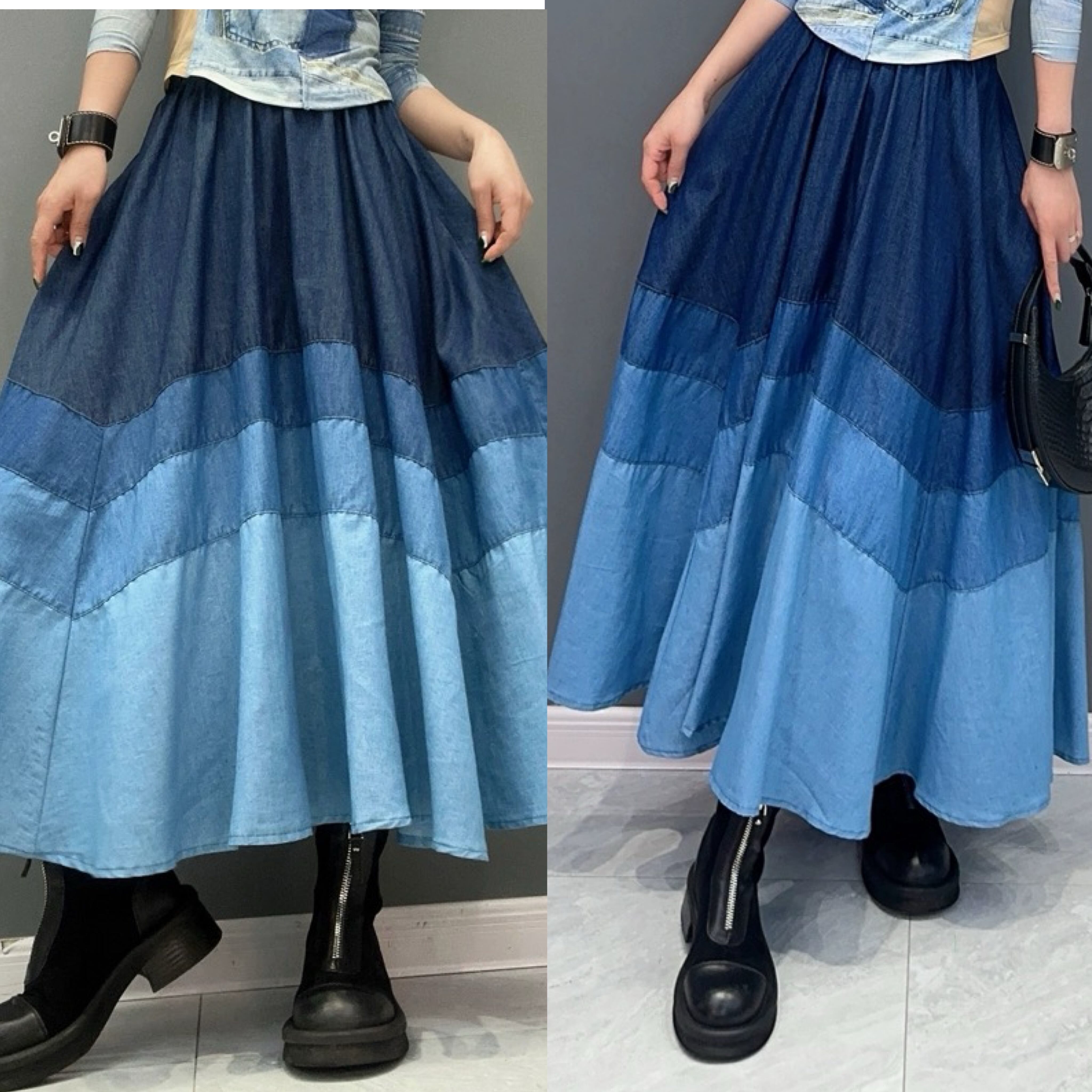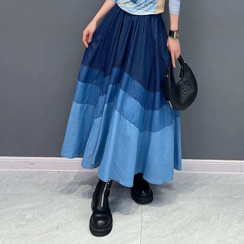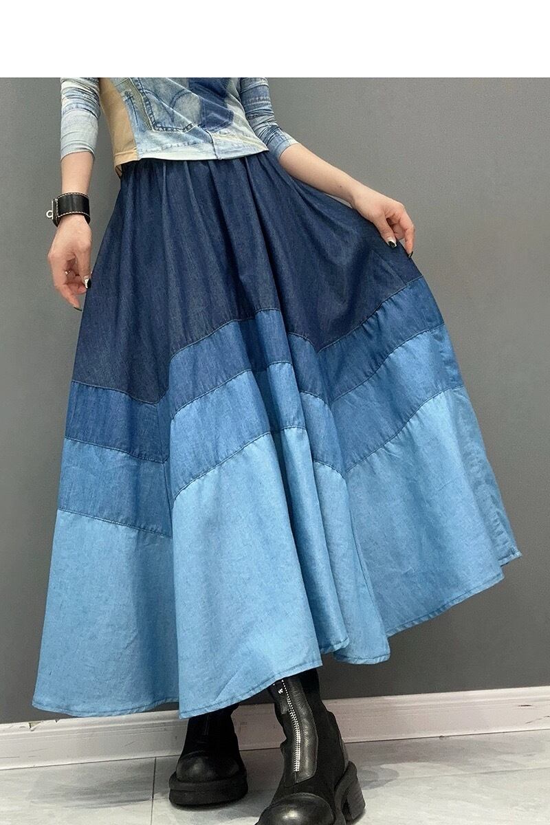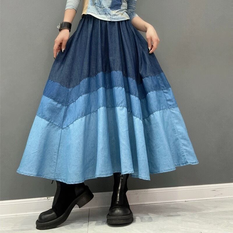 スカート デニム ボーダー 水色 ネイビー ボトムス
