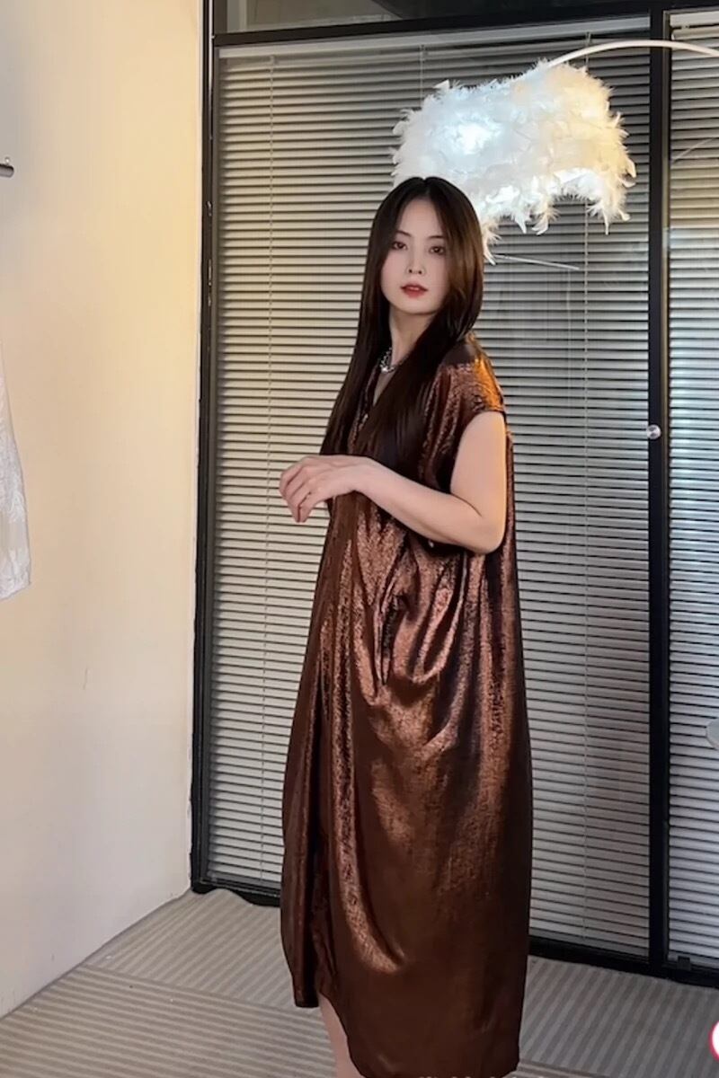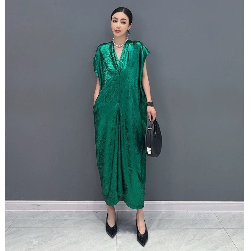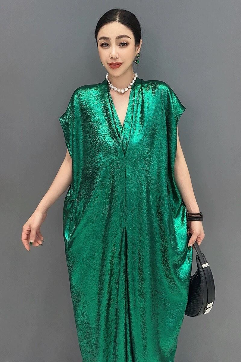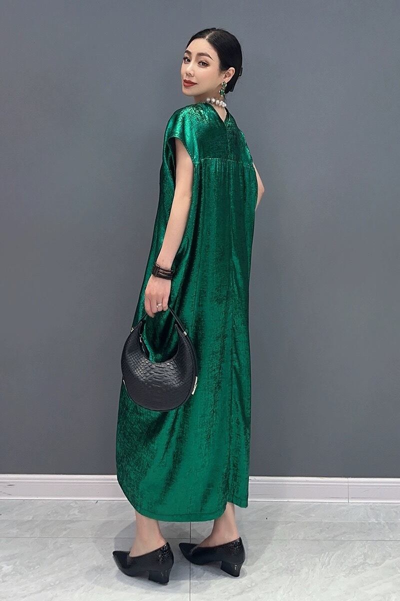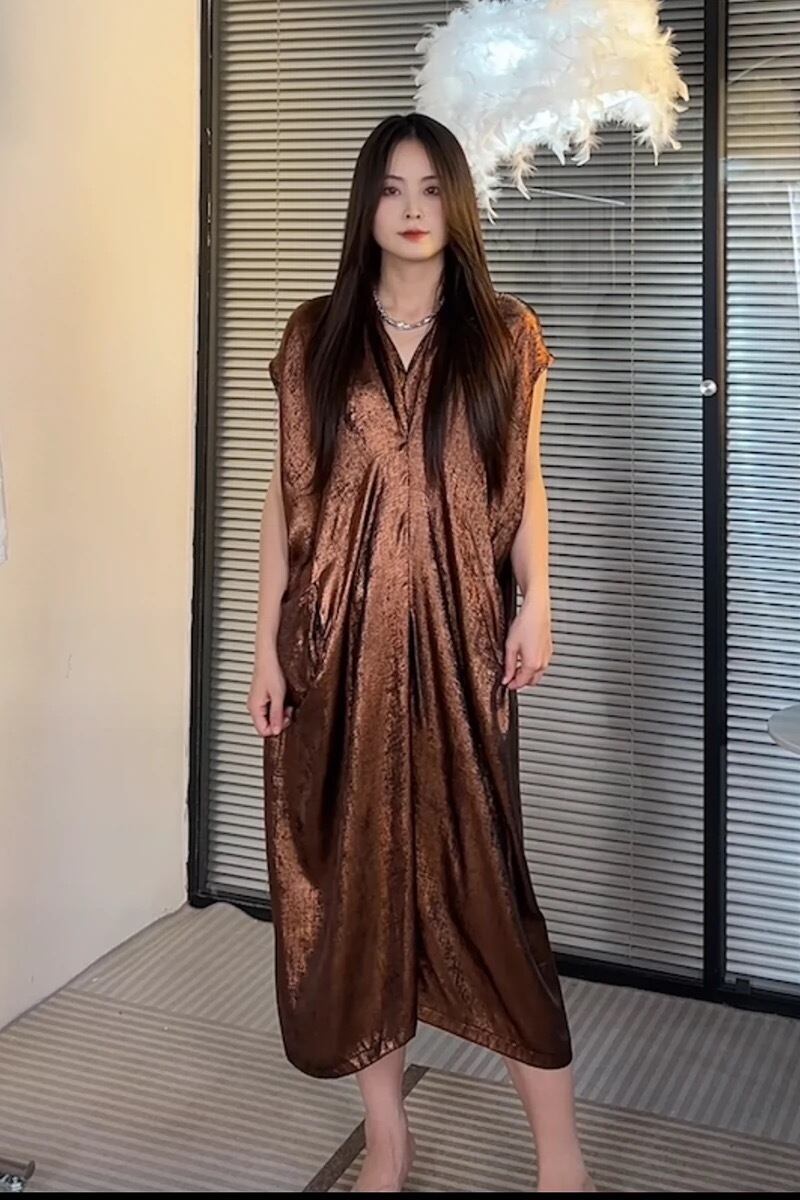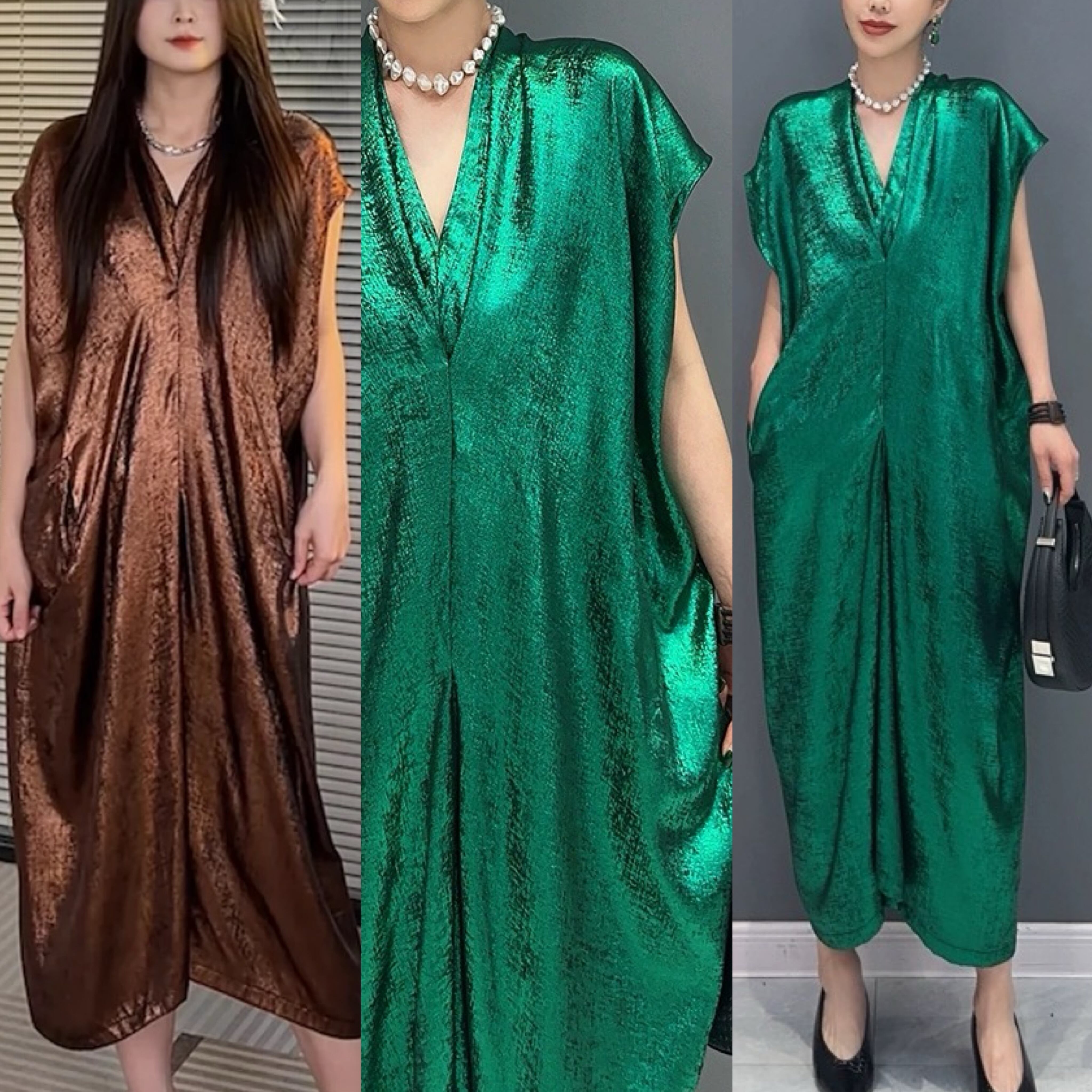 緑 茶色 ワンピース マキシ ミラー