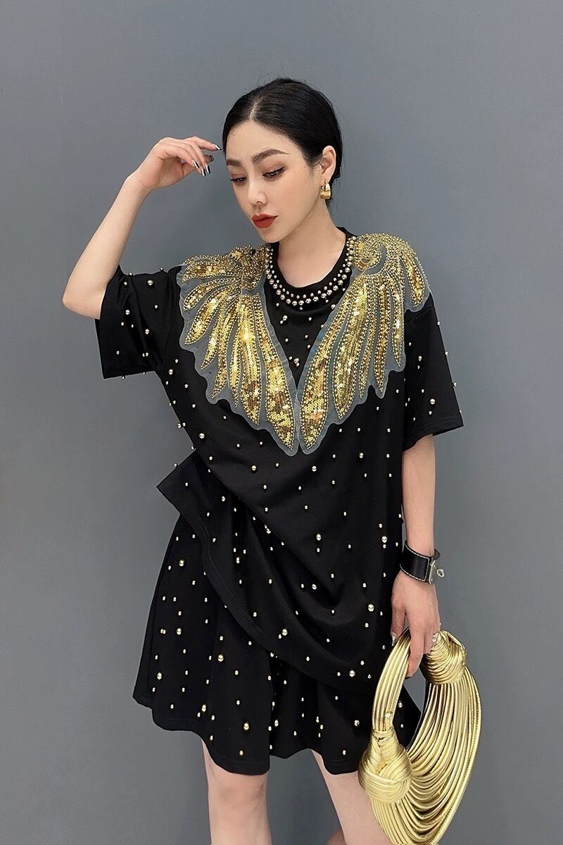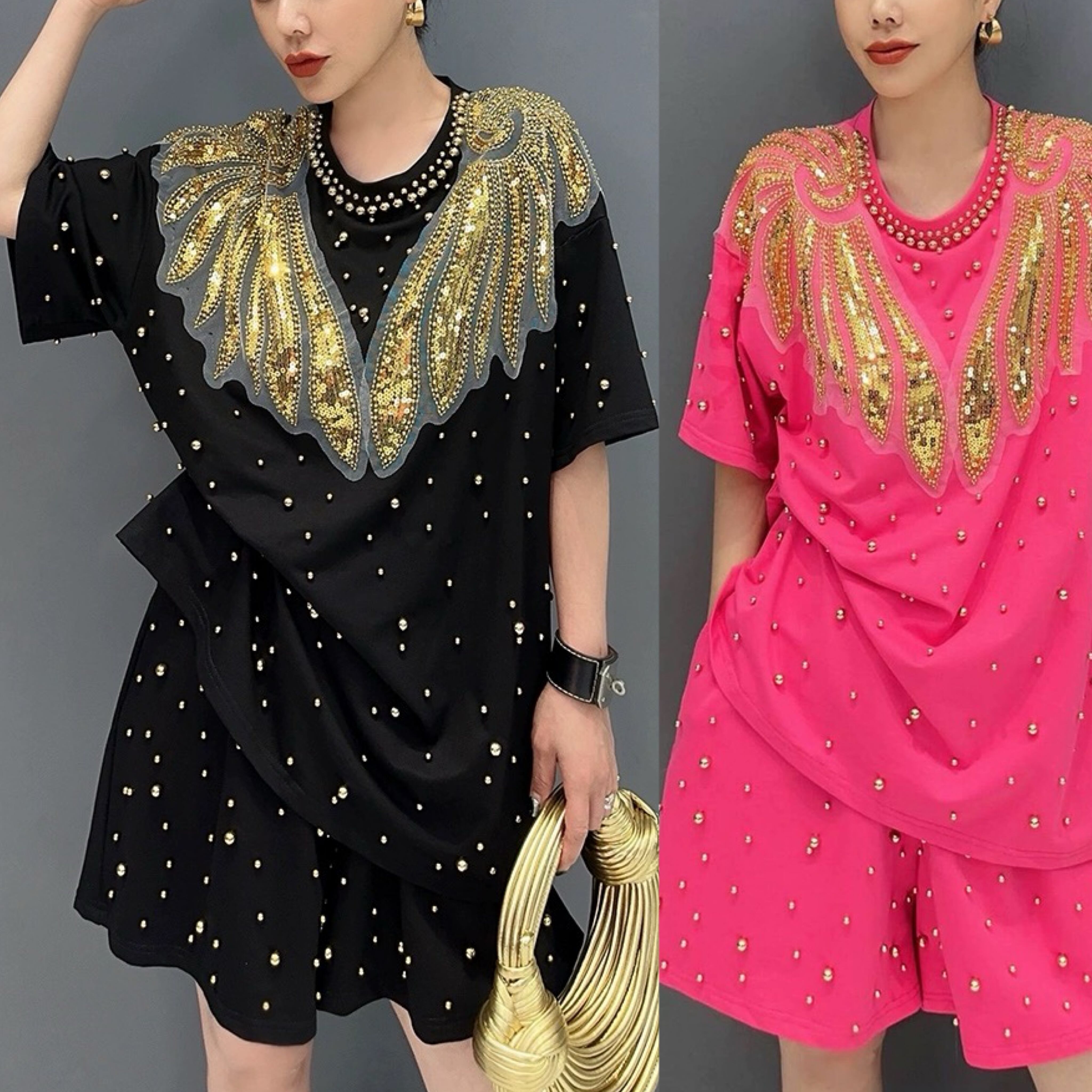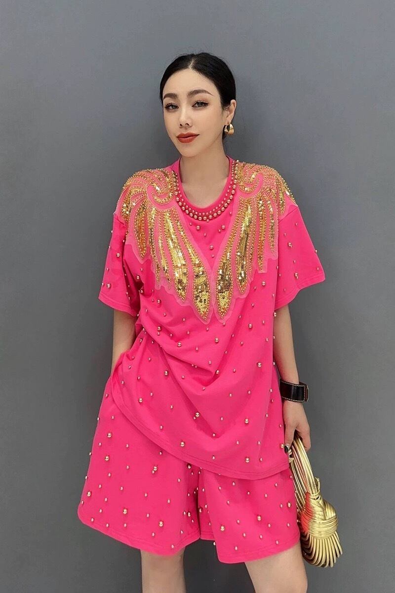 【セットアップ】黒 ピンク スウェット カジュアル ゴールド