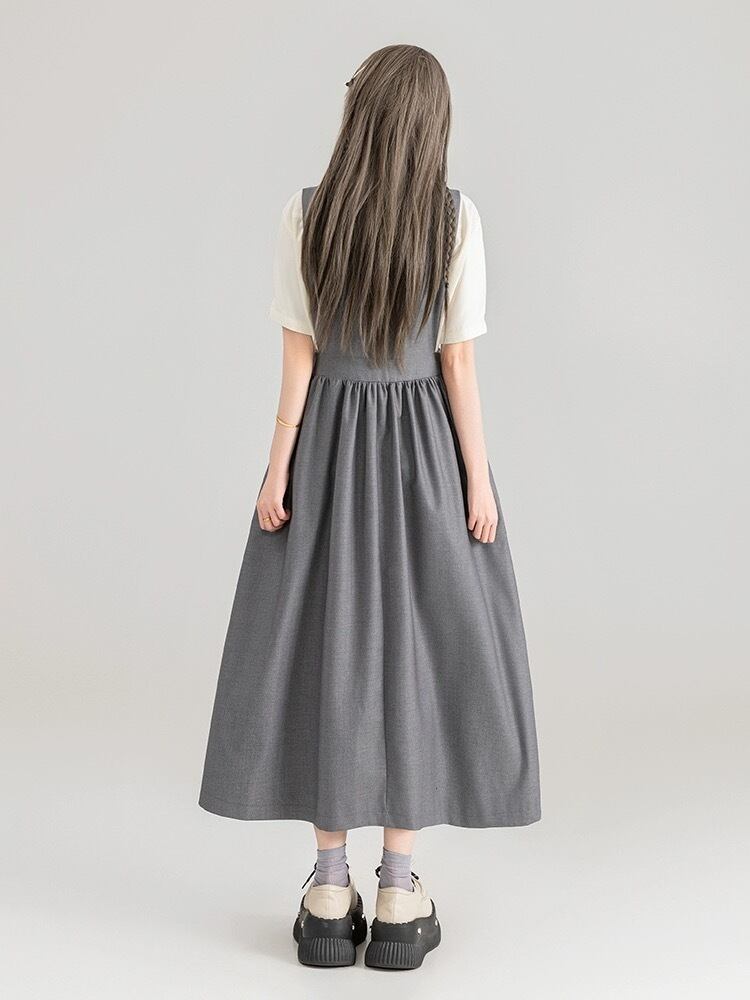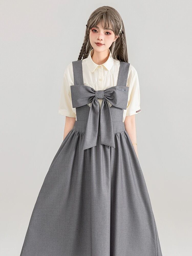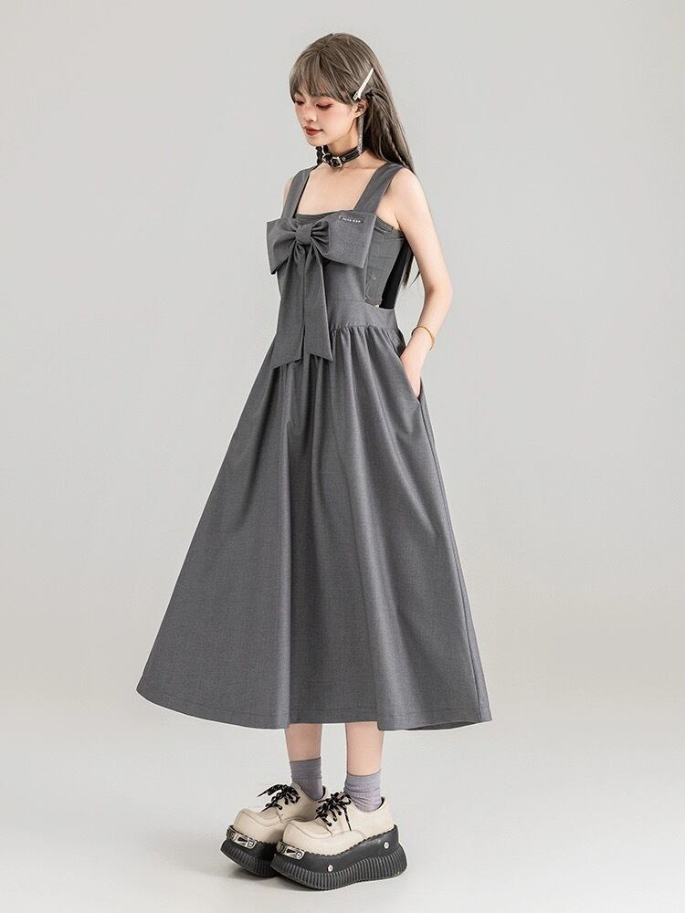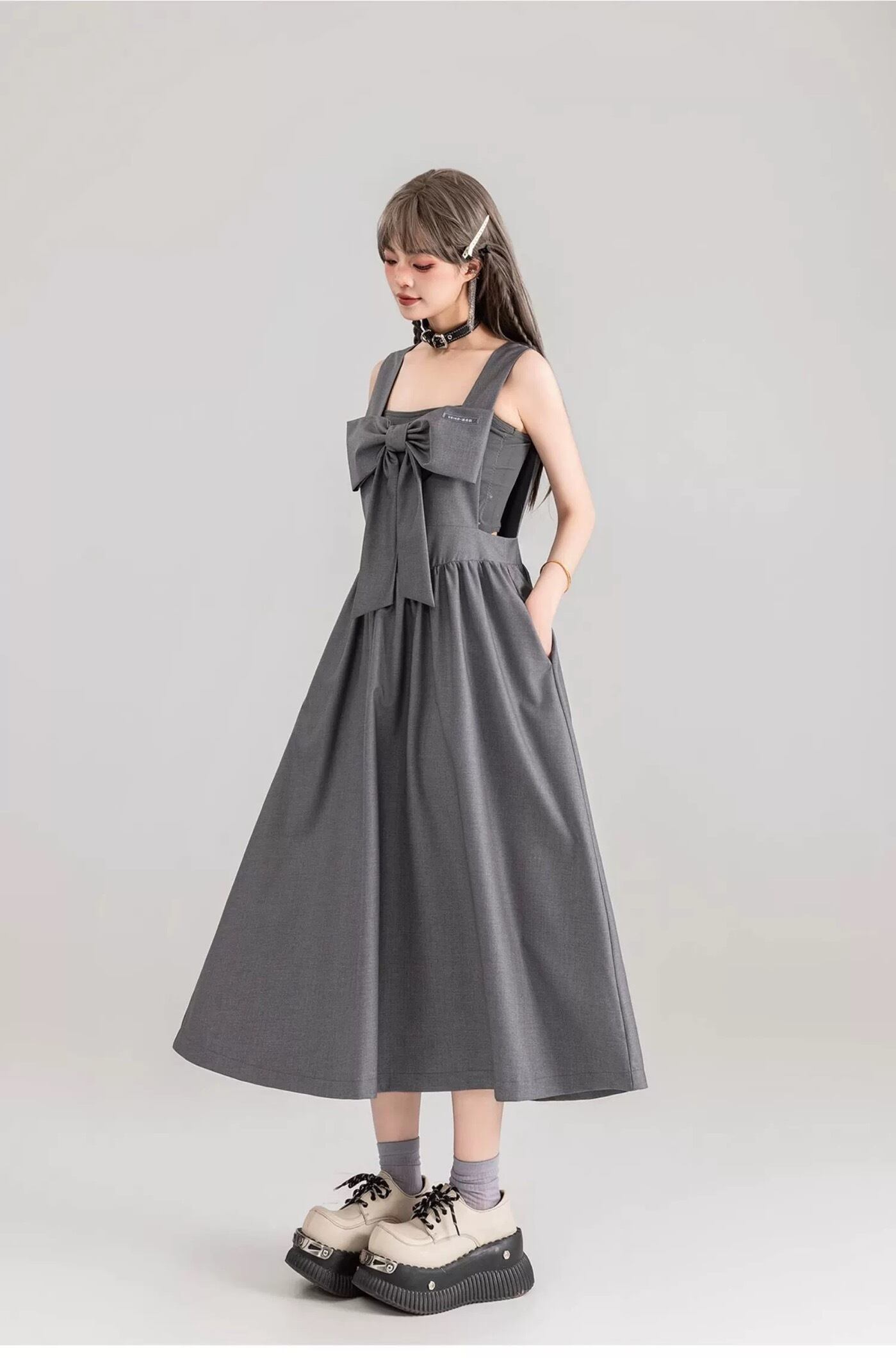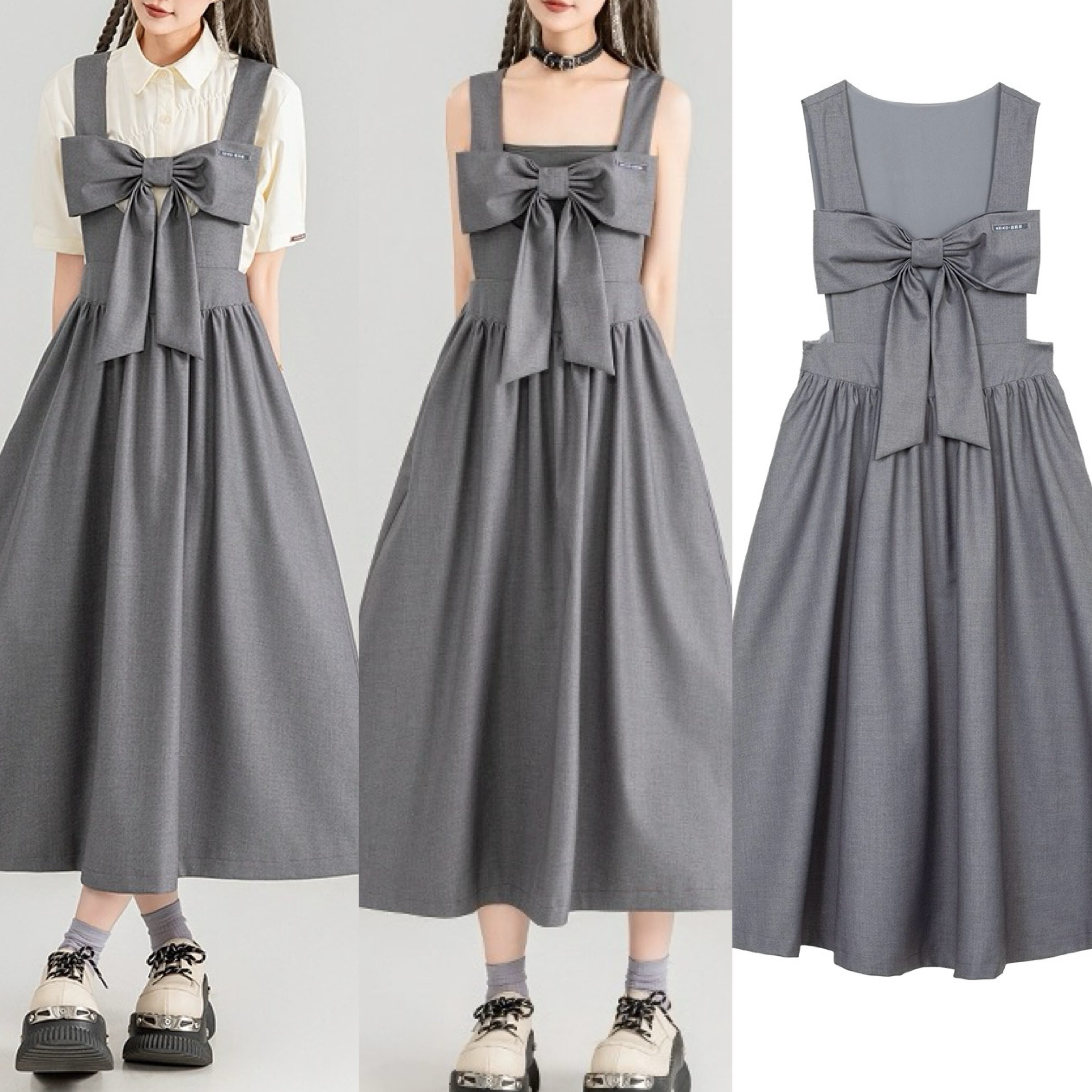 グレー リボン ワンピース ゆったり ガーリー 可愛い