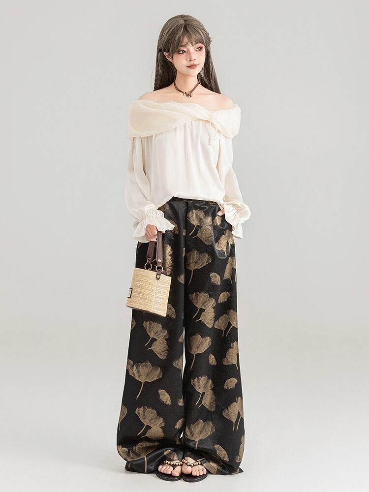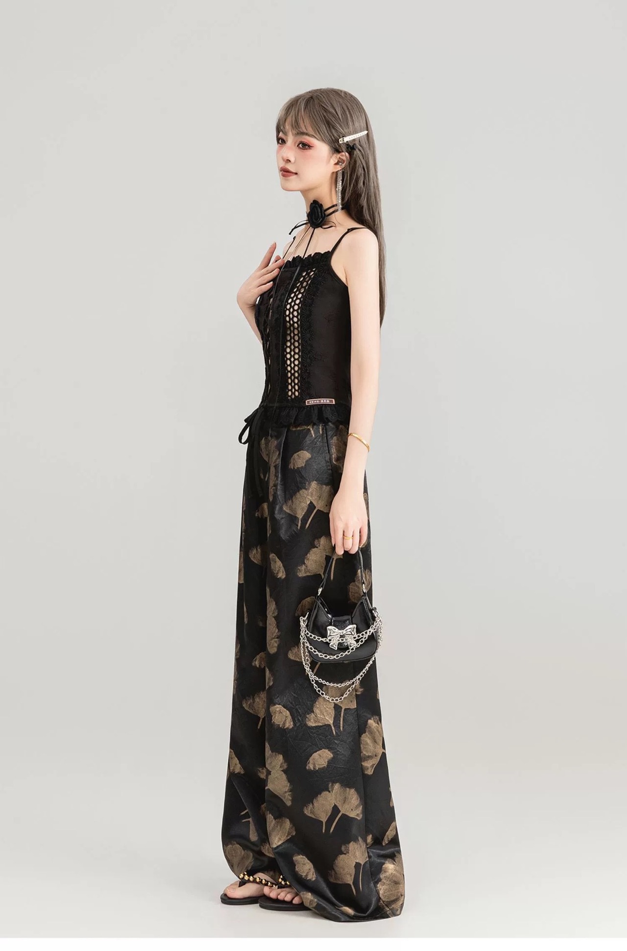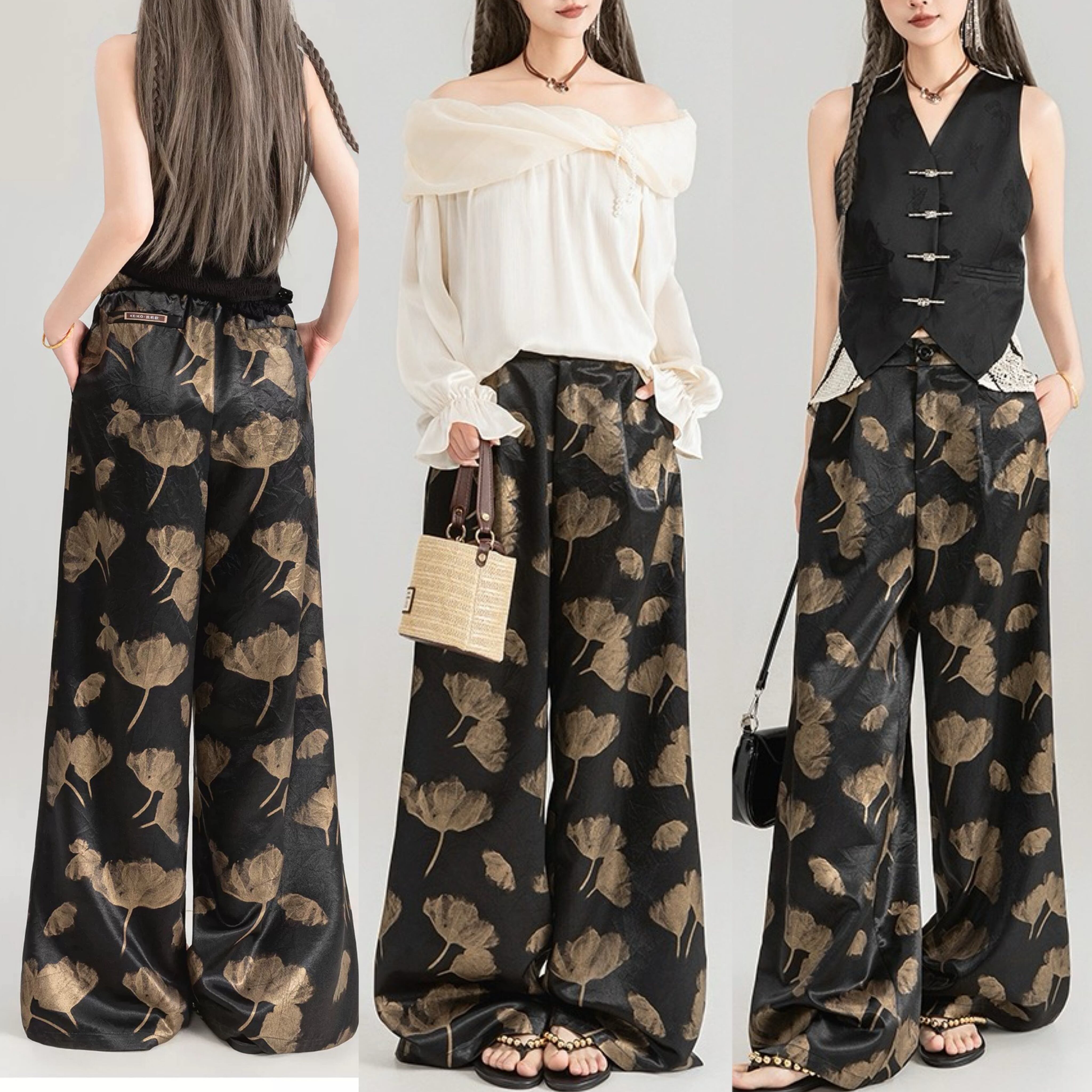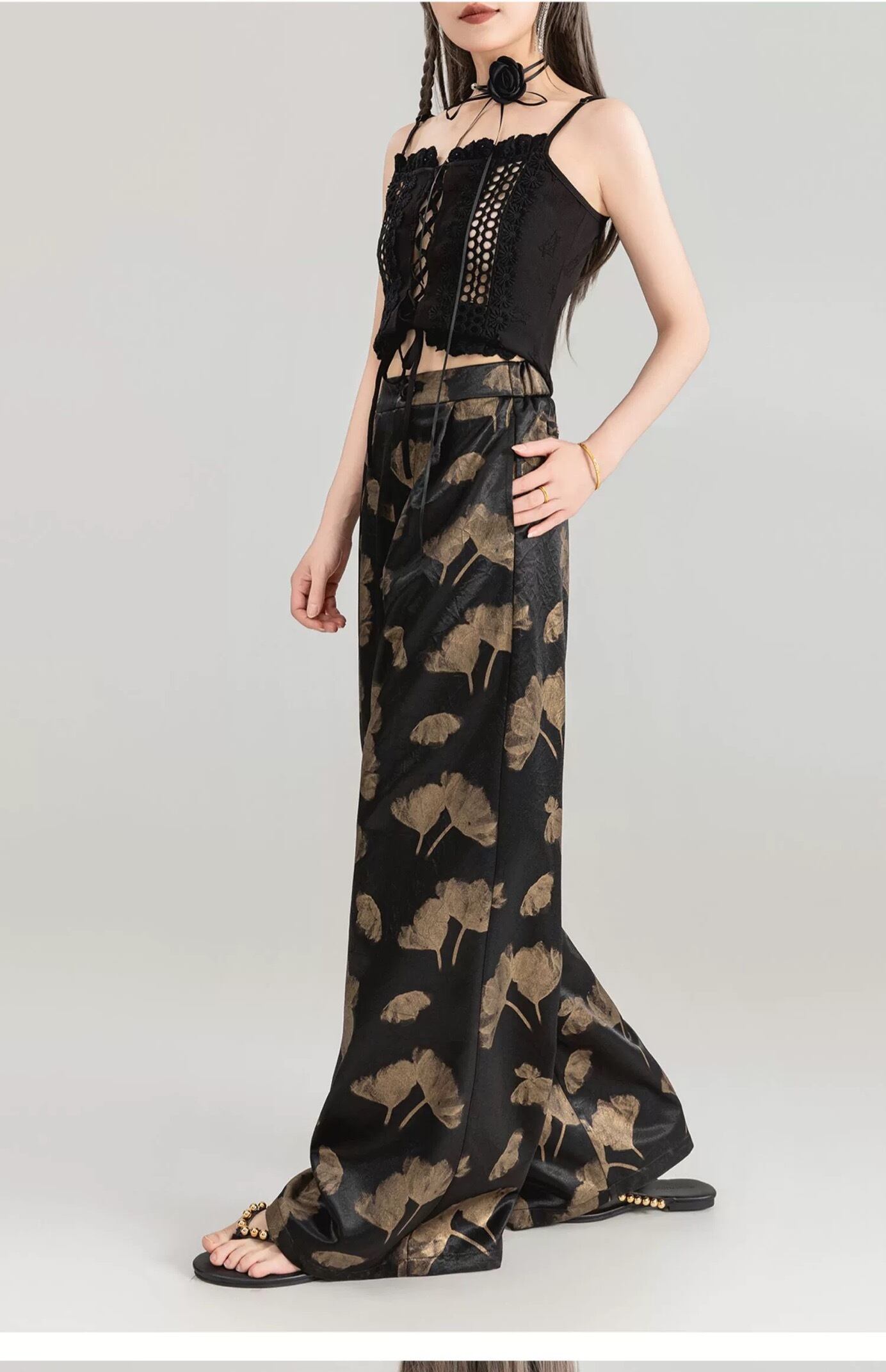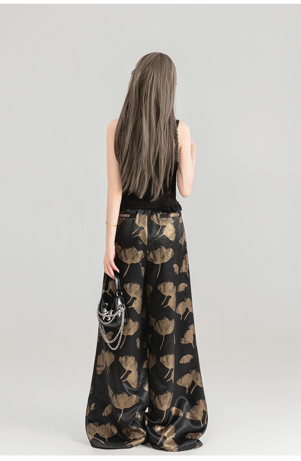 黒 金色 ゴールド アジアン チャイナ パンツ ボトムス