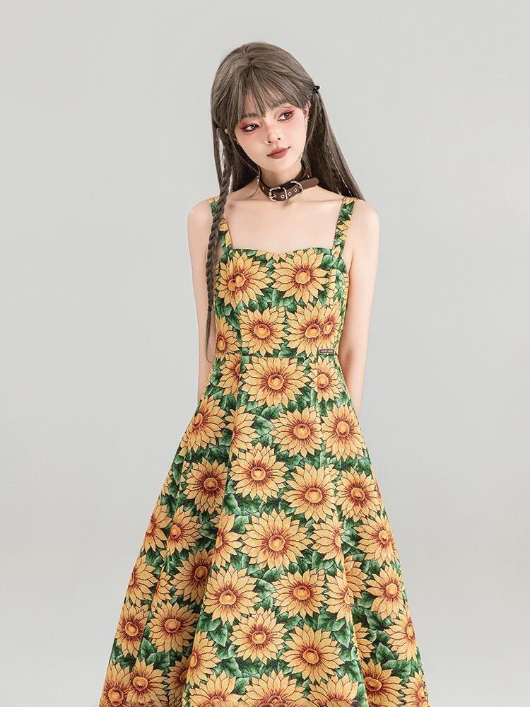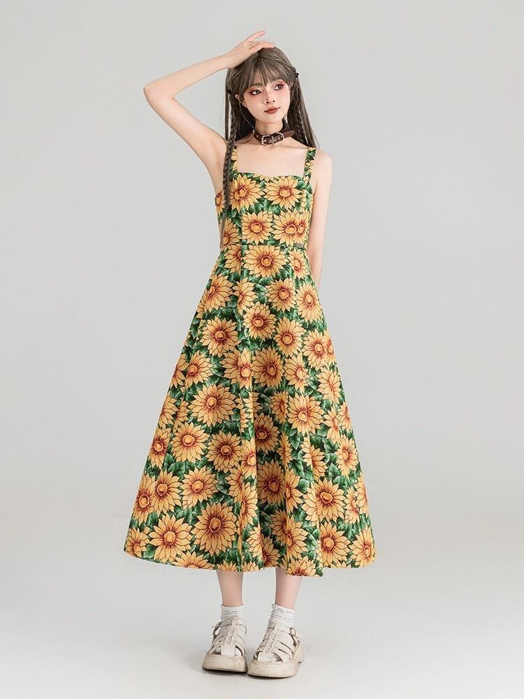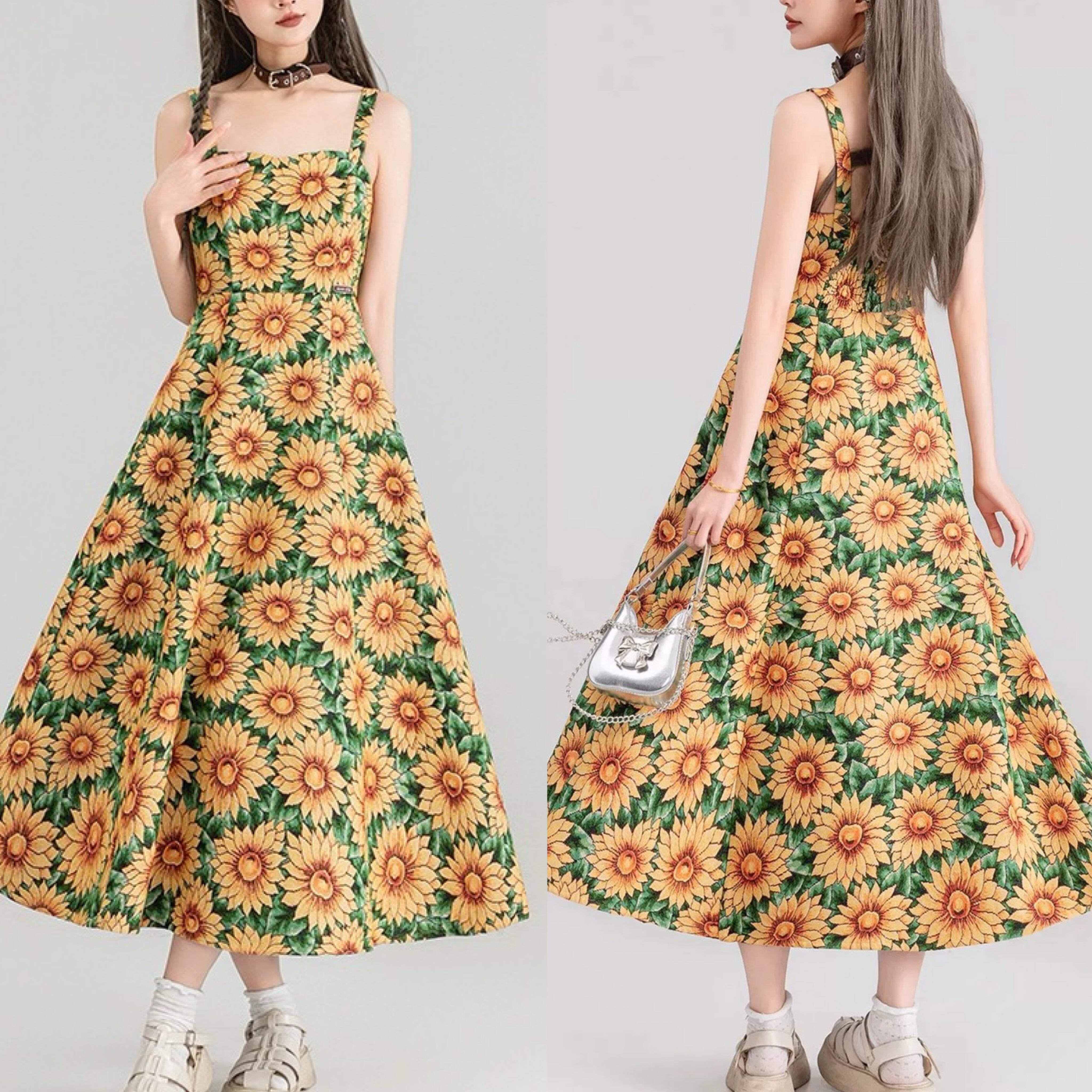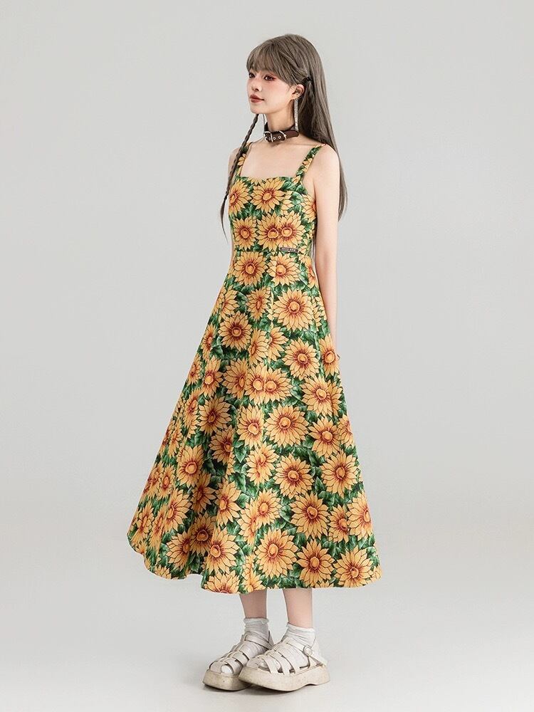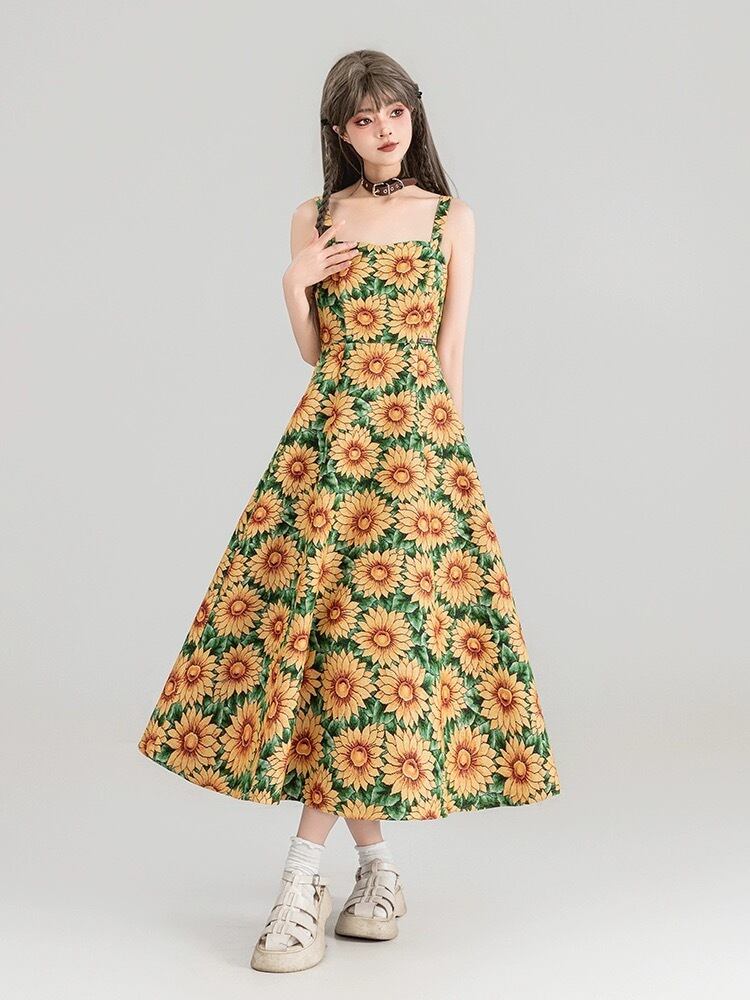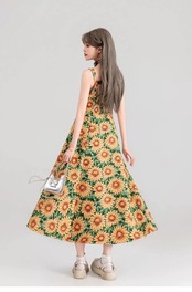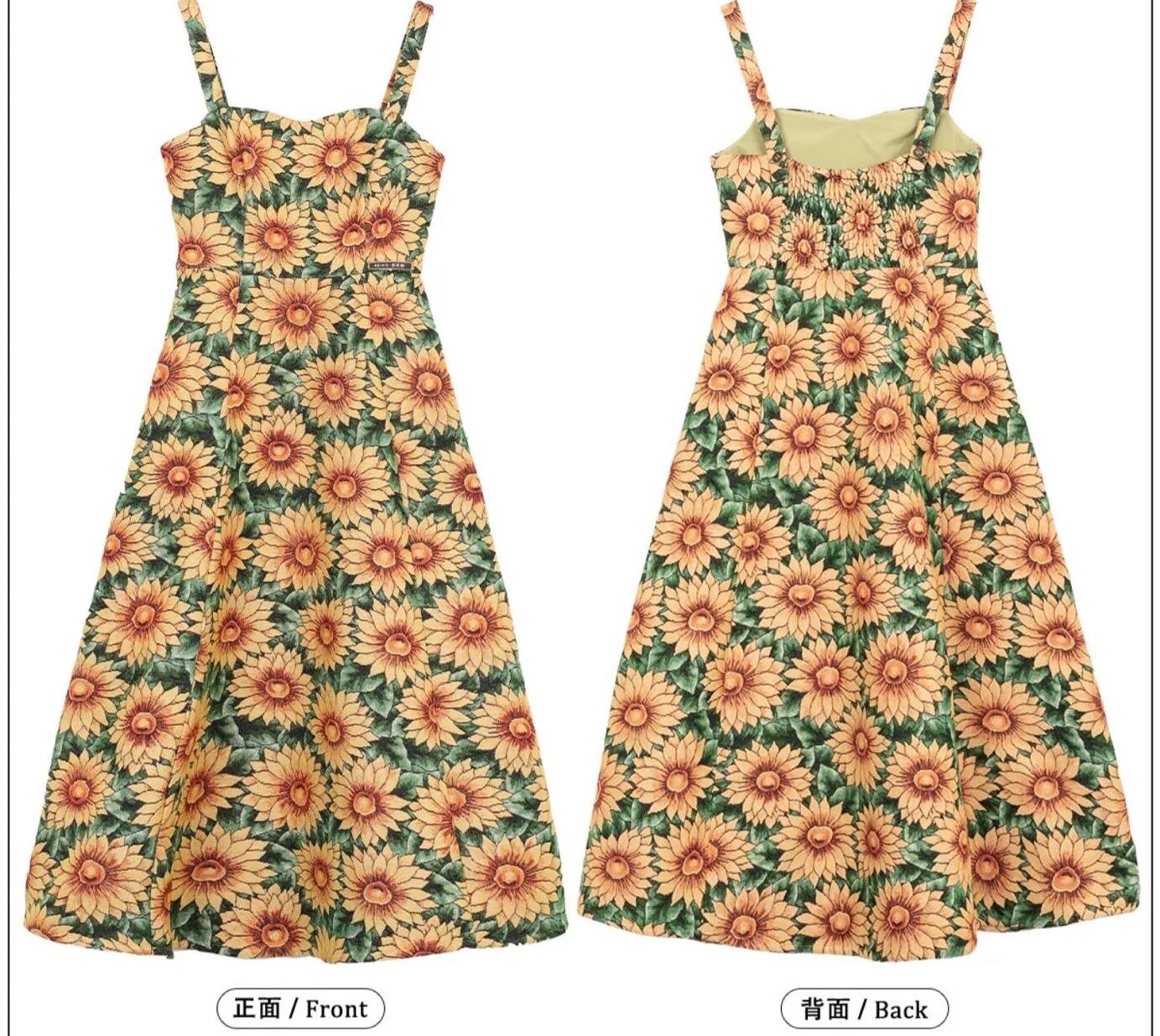 黄色 オレンジ 花柄 フラワー ひまわり ワンピース
