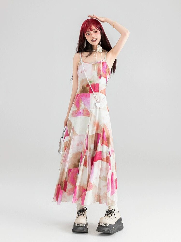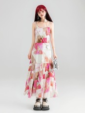 ピンク グラデーション キャミソール 茶色 ワンピース