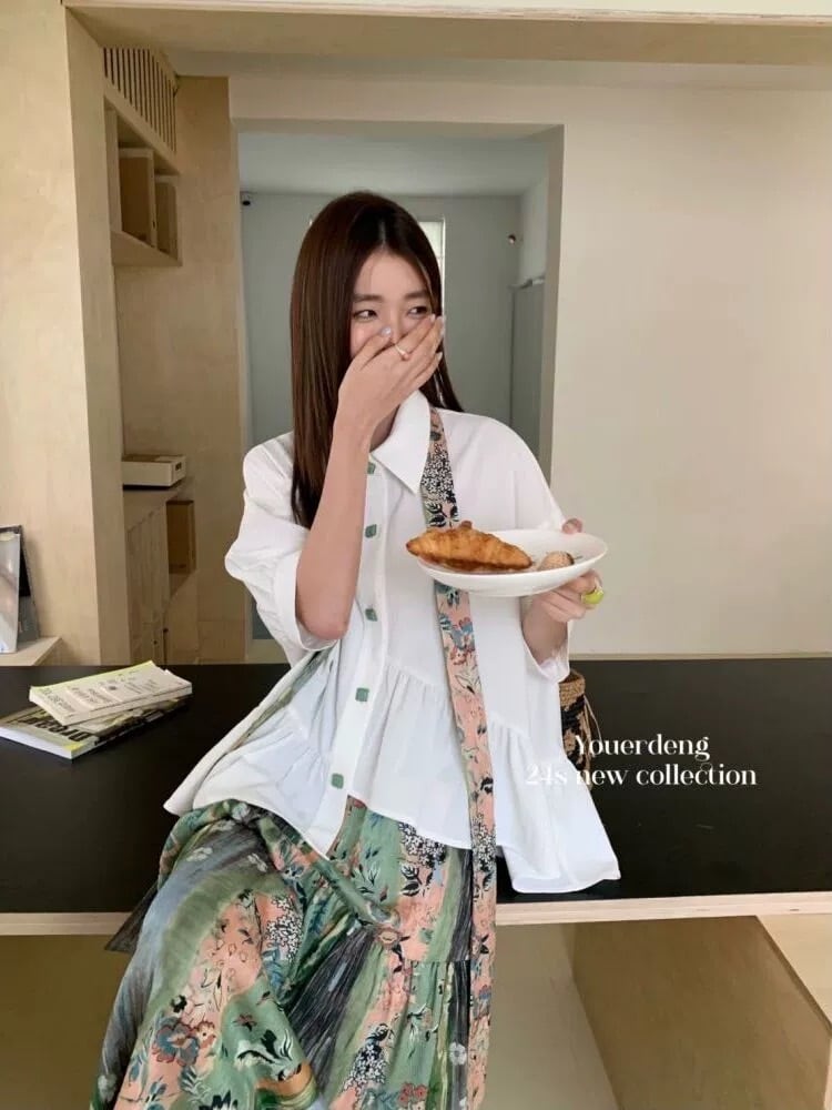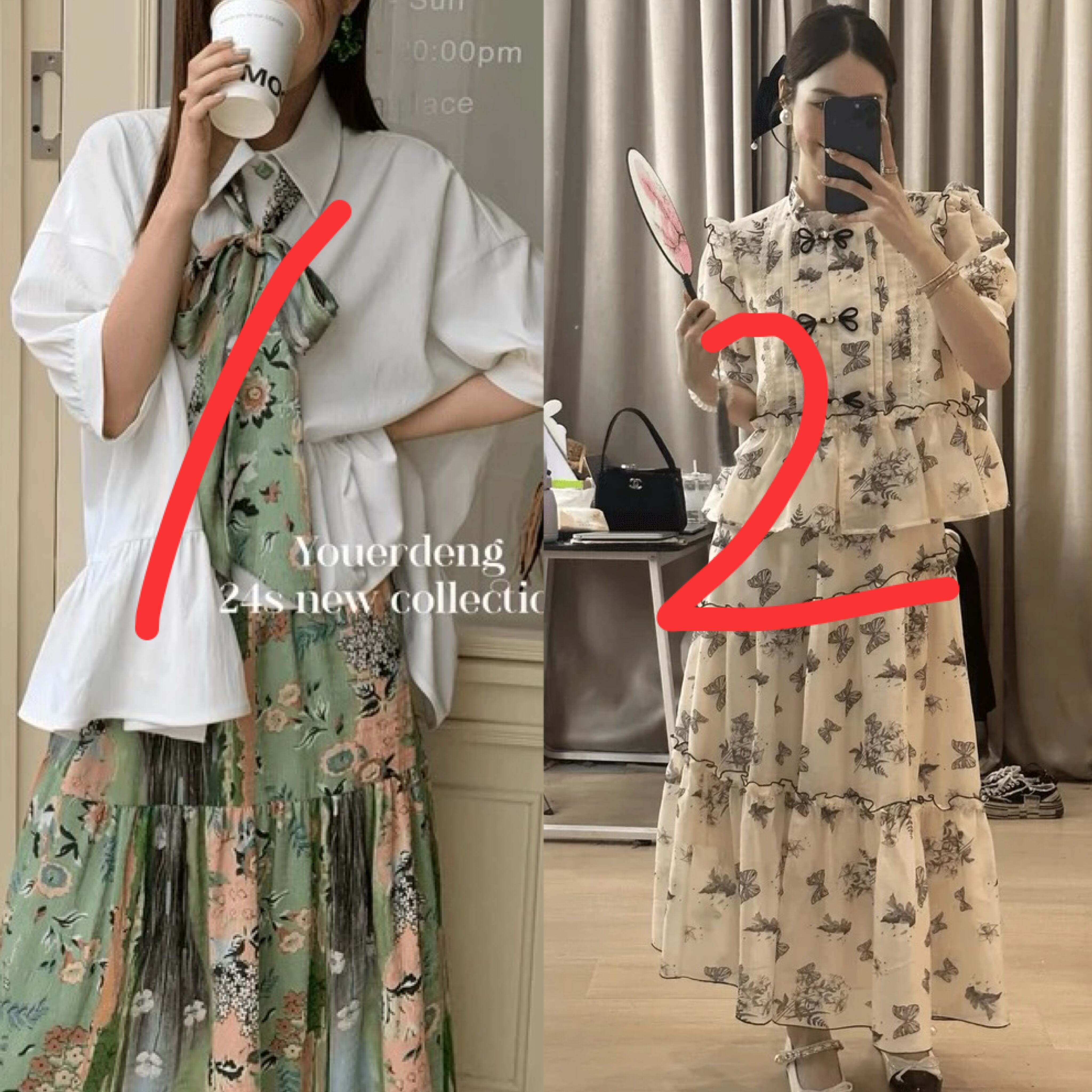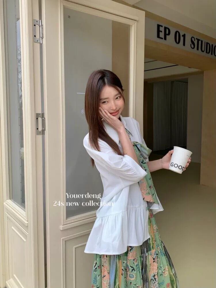 【セットアップ】ブラウス リボン 緑 ガーリー スカート チャイナ