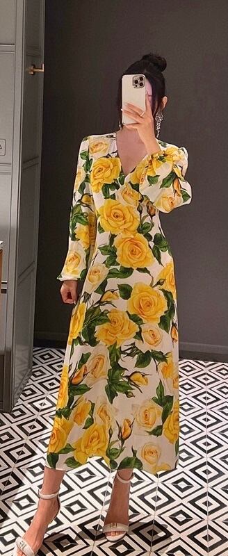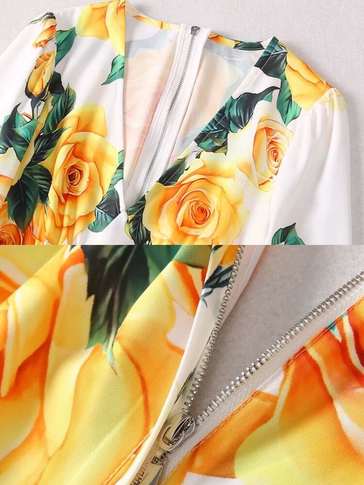 XL 黄色 フラワー 花柄 ワンピース 可愛い