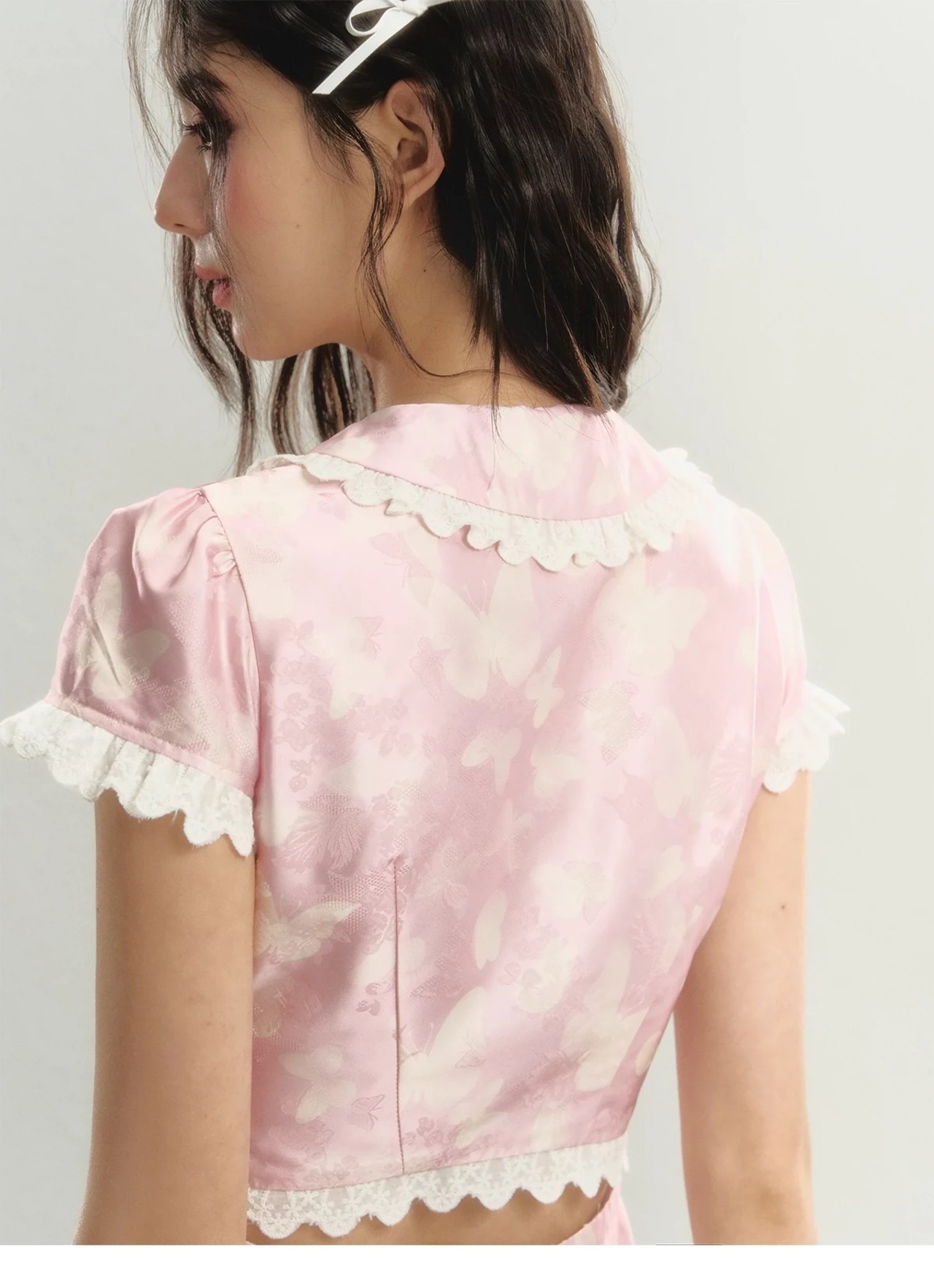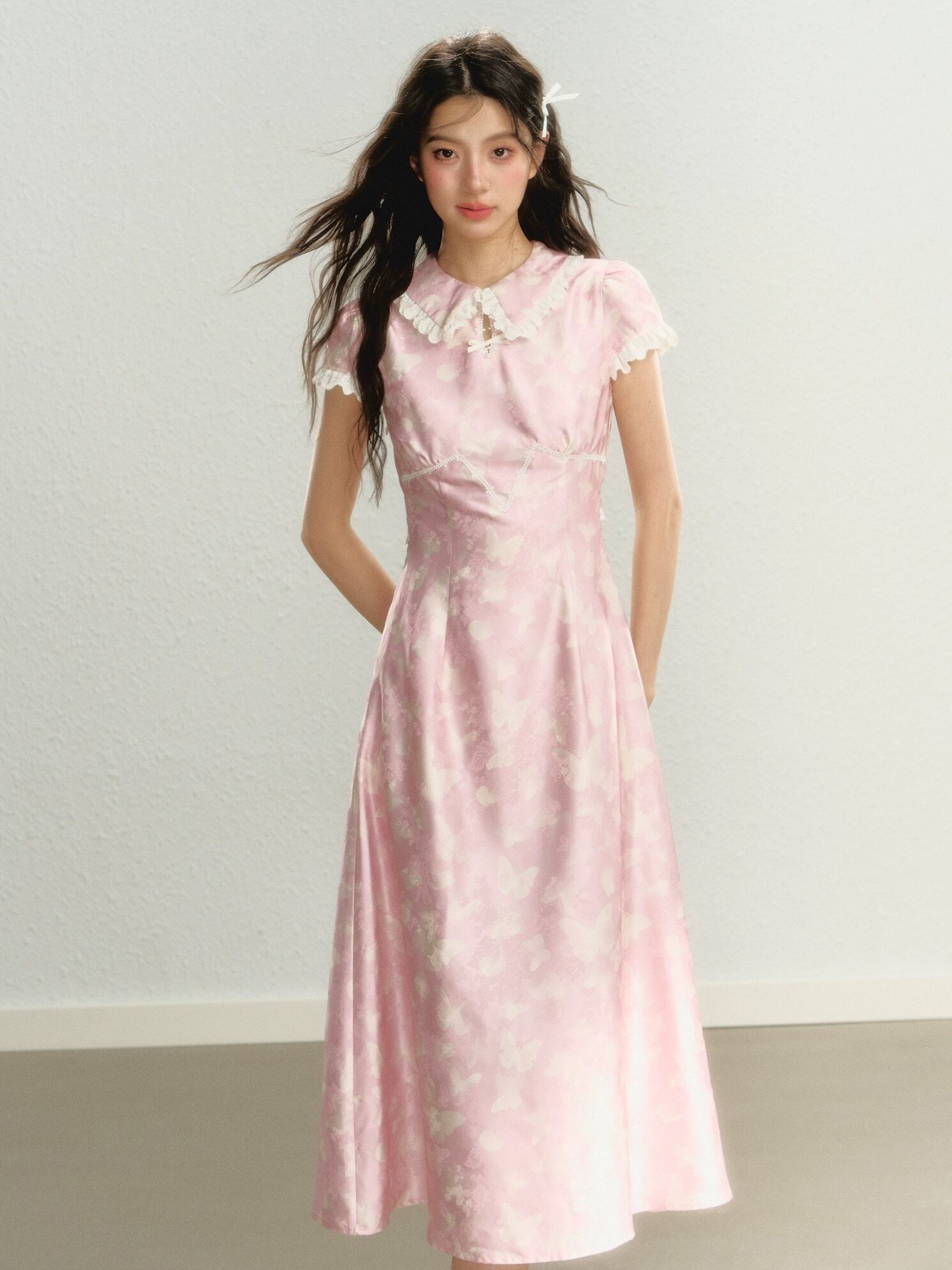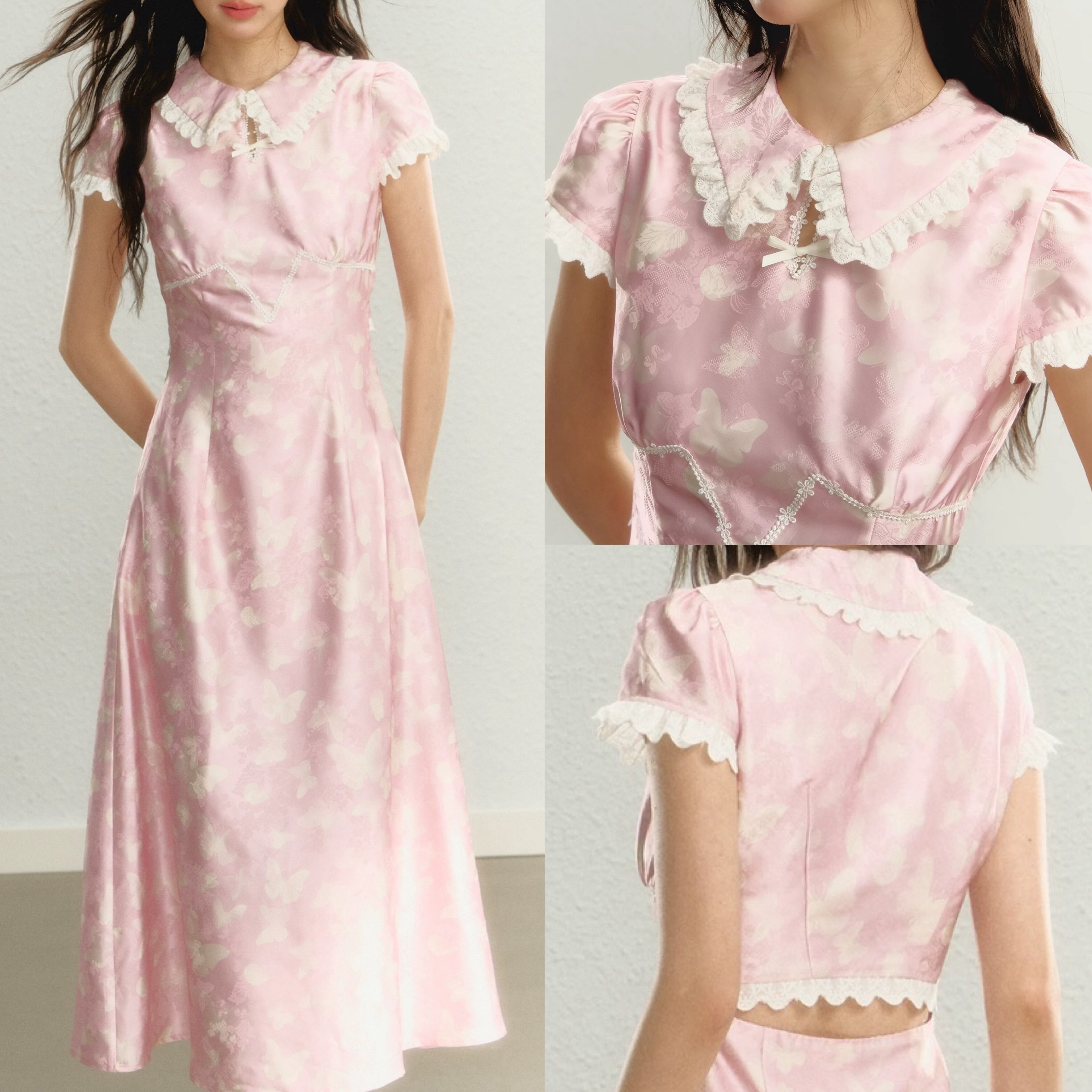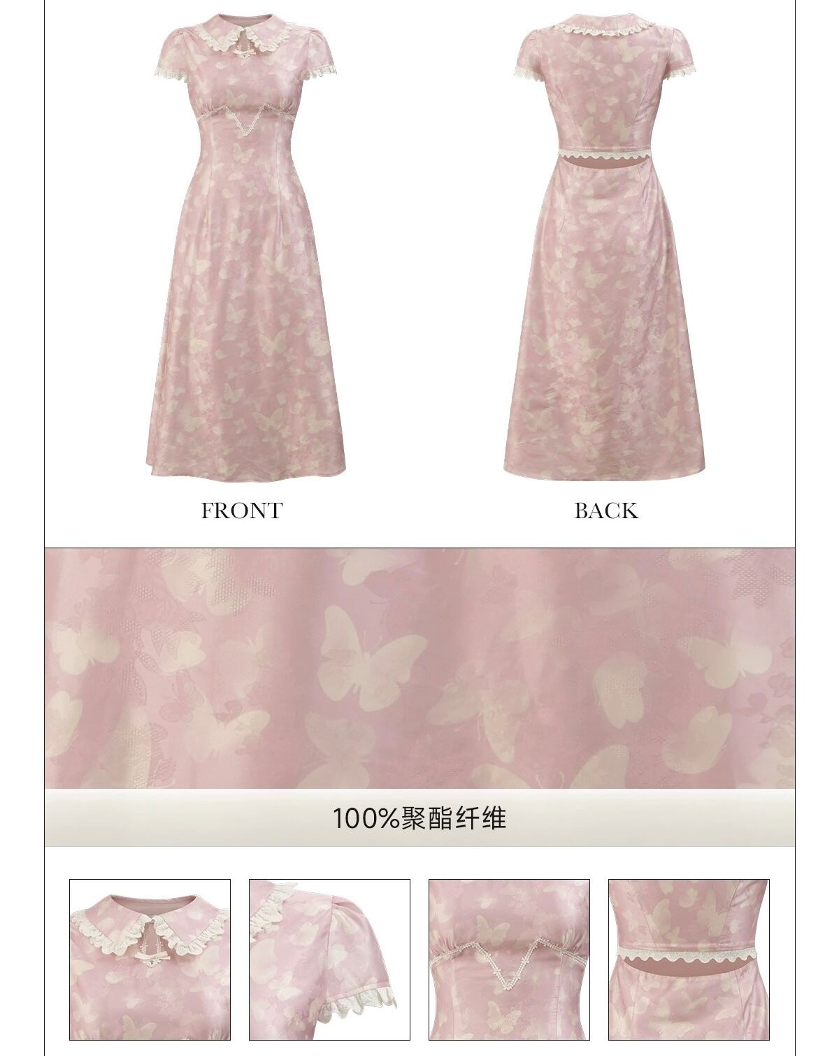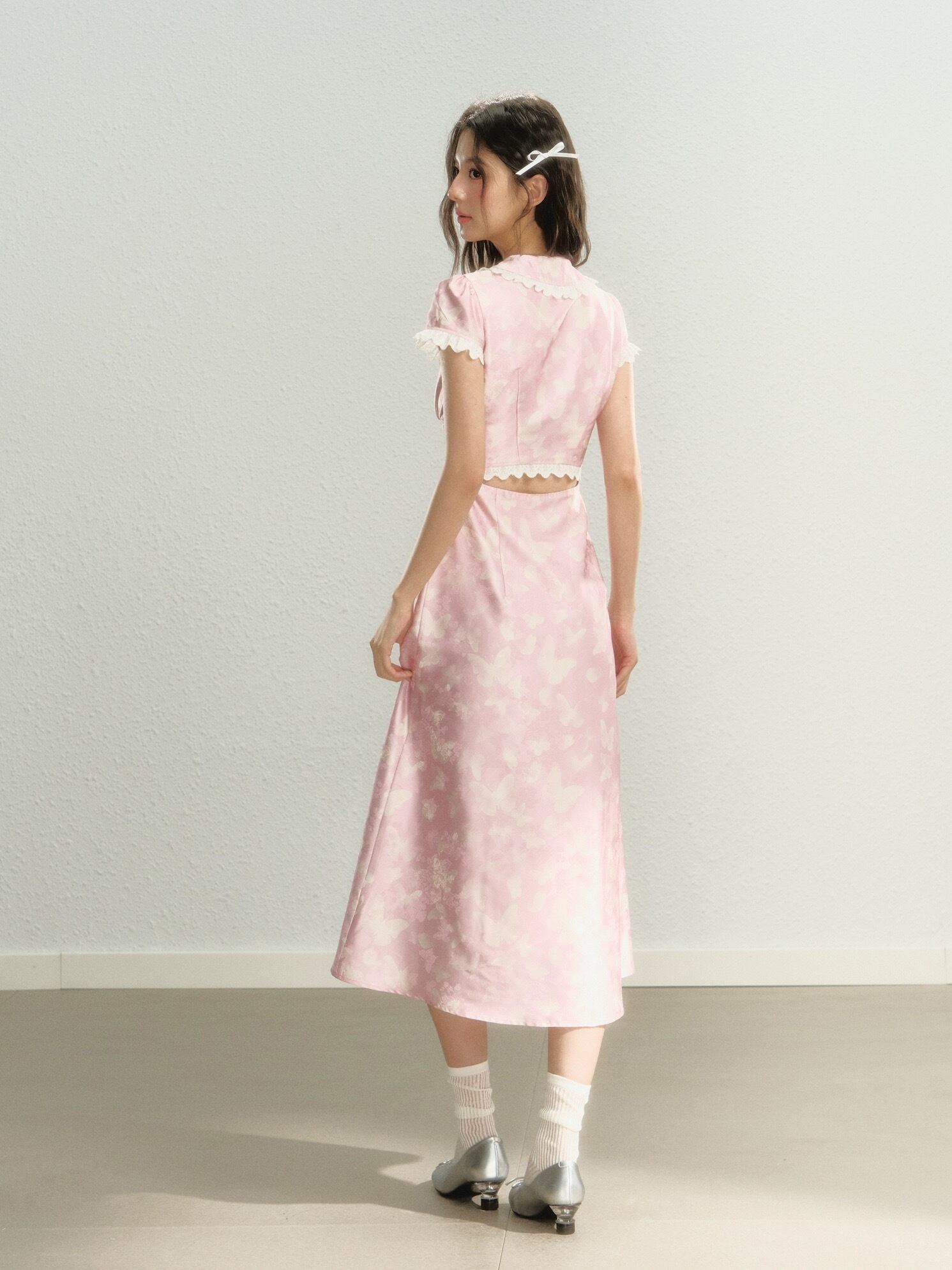 ピンク 花柄 バタフライ ワンピース チャイナ